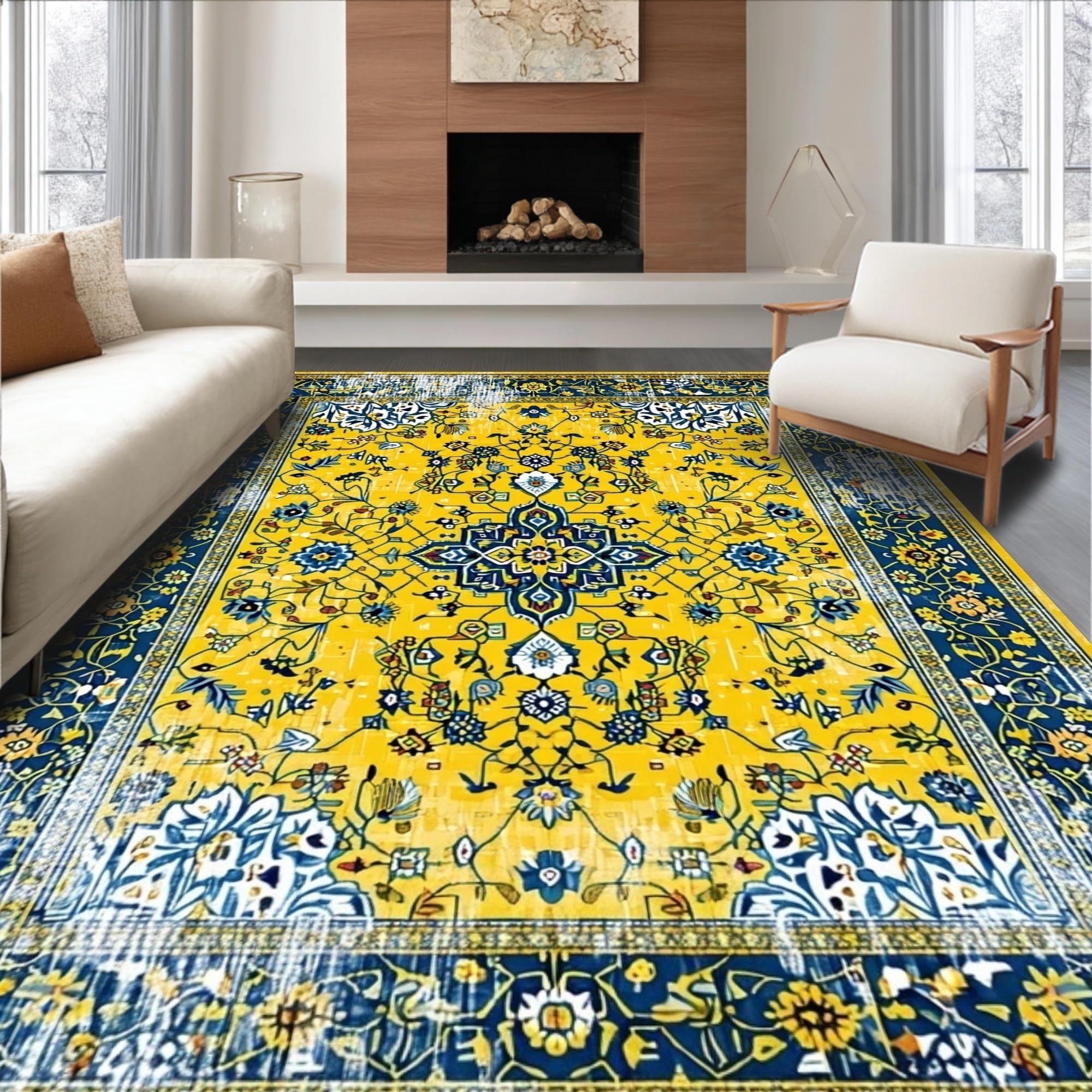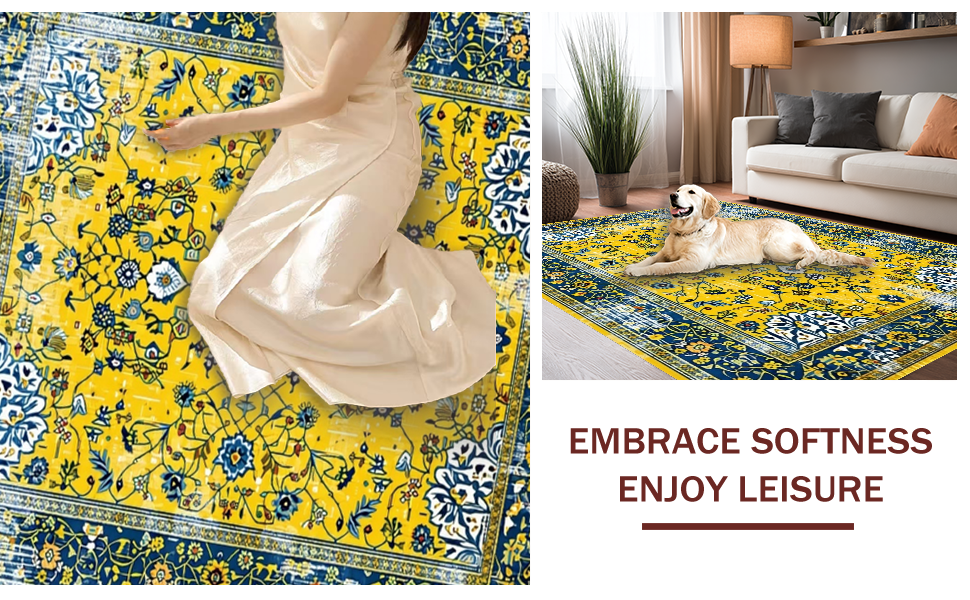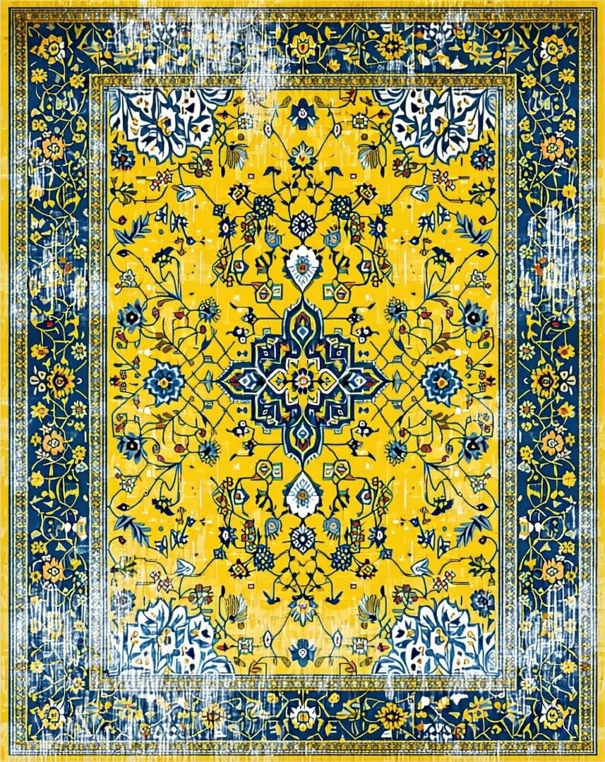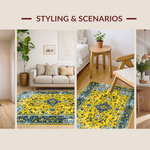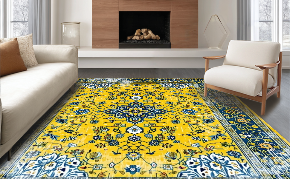 Ultra Soft Area Rug, Non Slip, Stain Resistant, Washable Area Rugs for Living Room, Bedroom, Bright Earthy Geometric Fusion(Yellow) Overview: