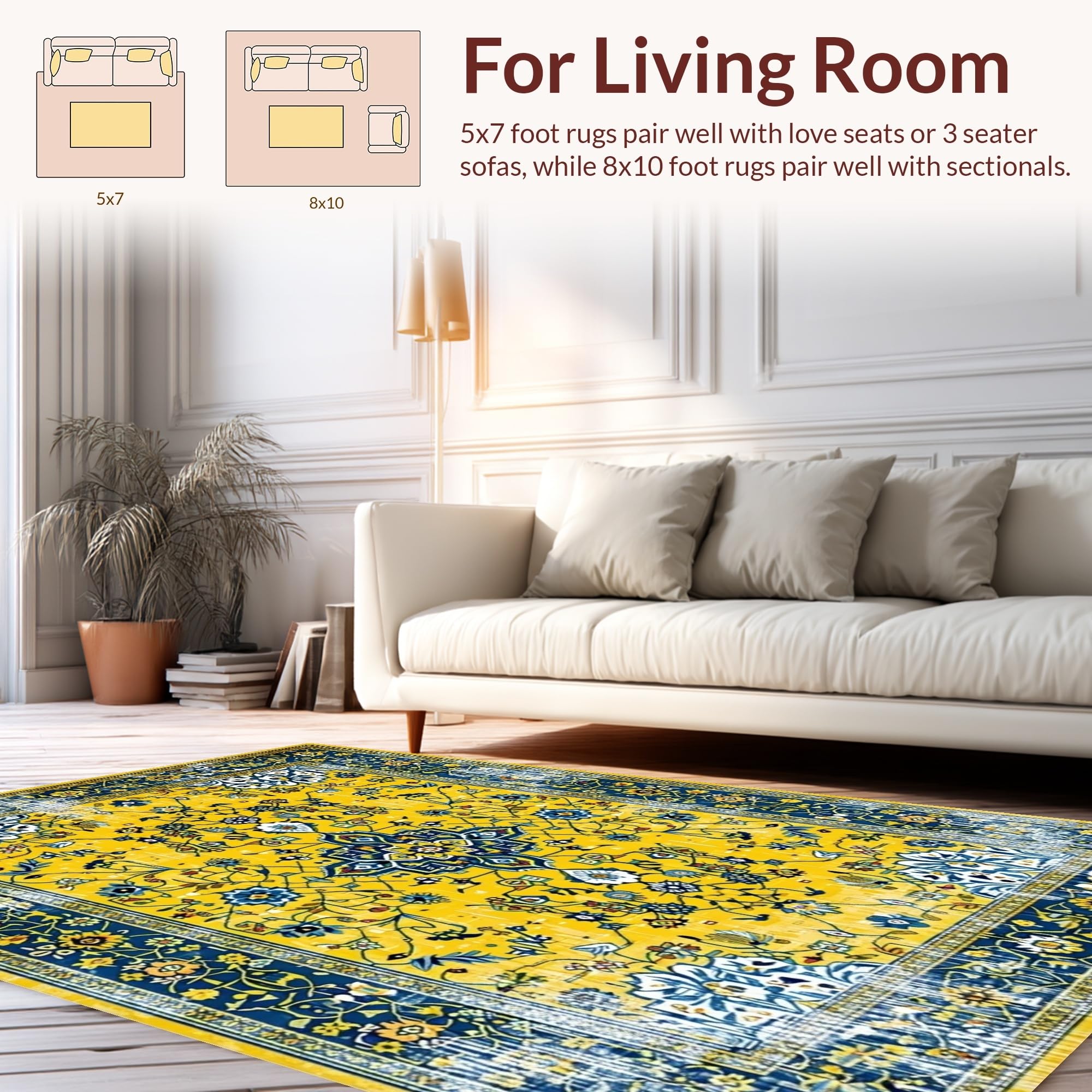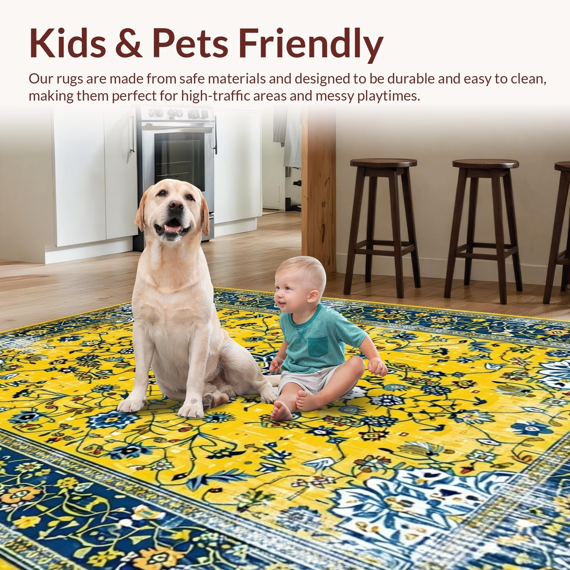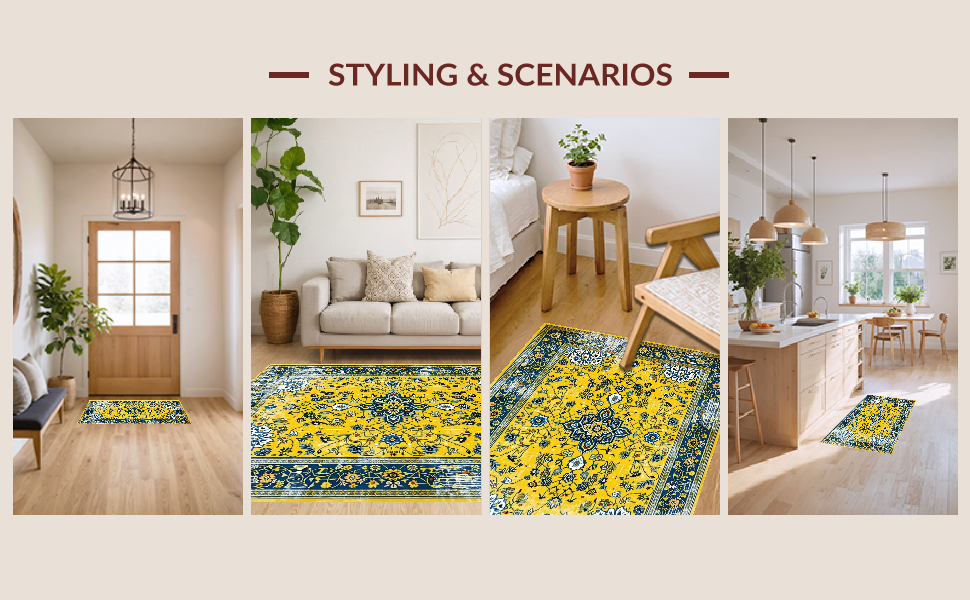 Ultra Soft Area Rug, Non Slip, Stain Resistant, Washable Area Rugs for Living Room, Bedroom, Bright Earthy Geometric Fusion(Yellow) Overview:
