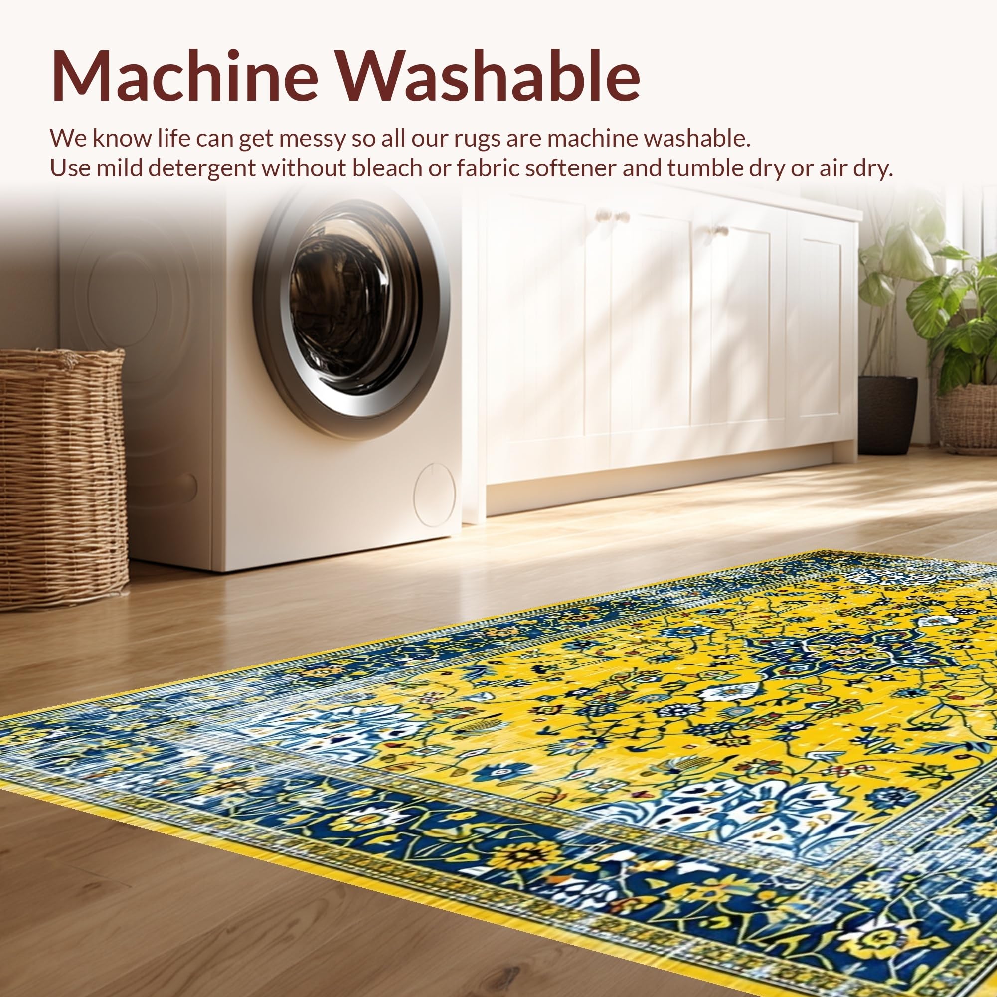 - Machine Washable: Our rugs can be easily thrown in the wash machine.