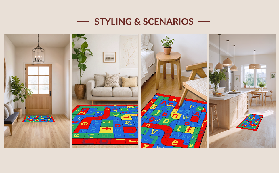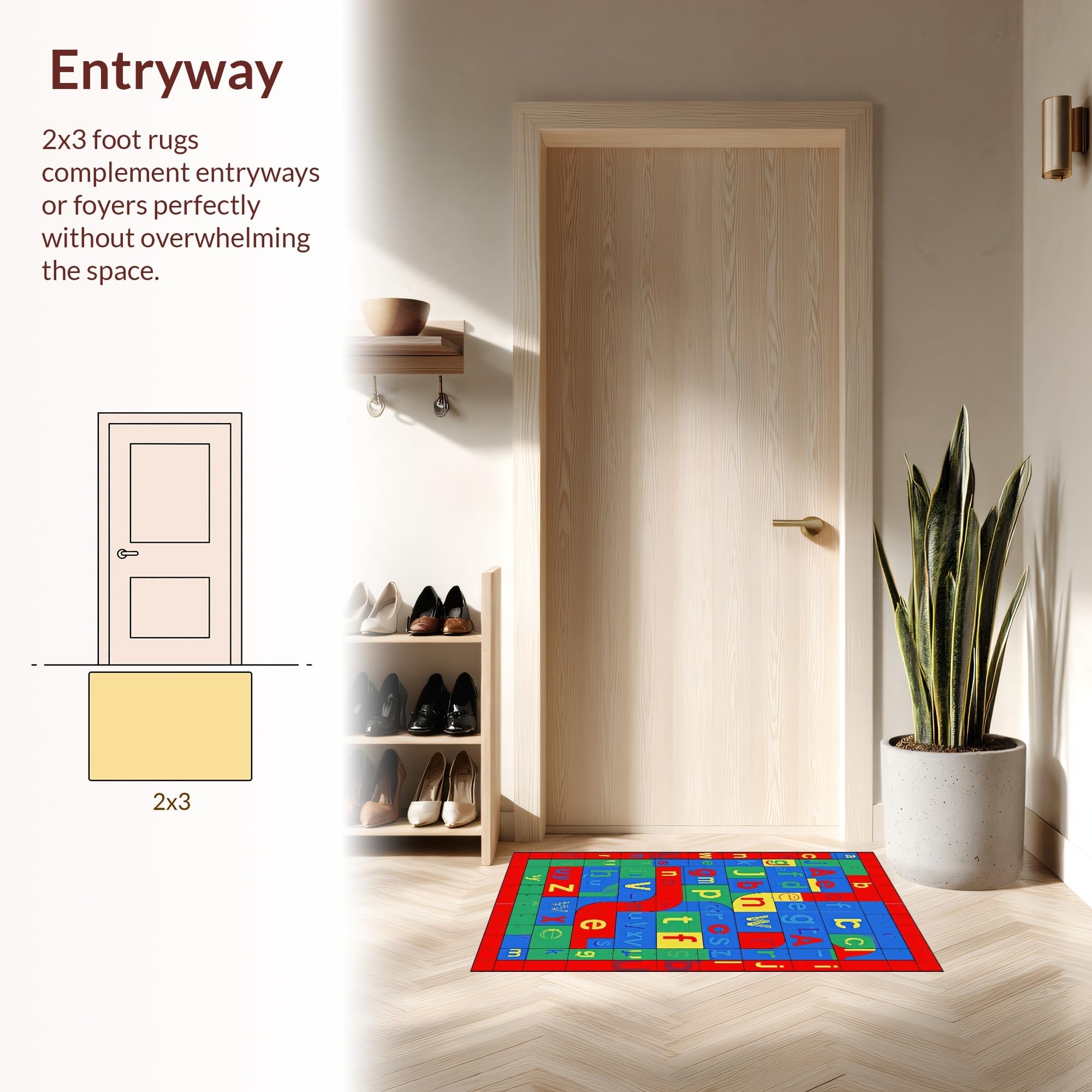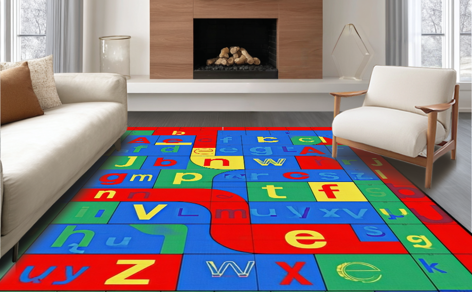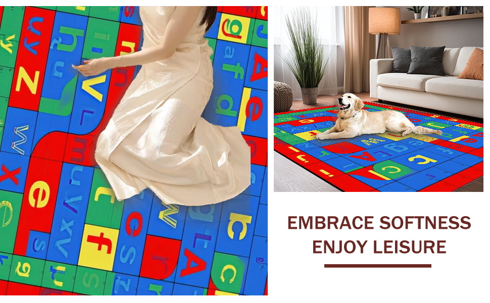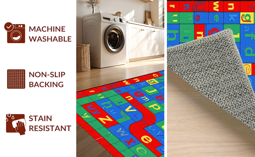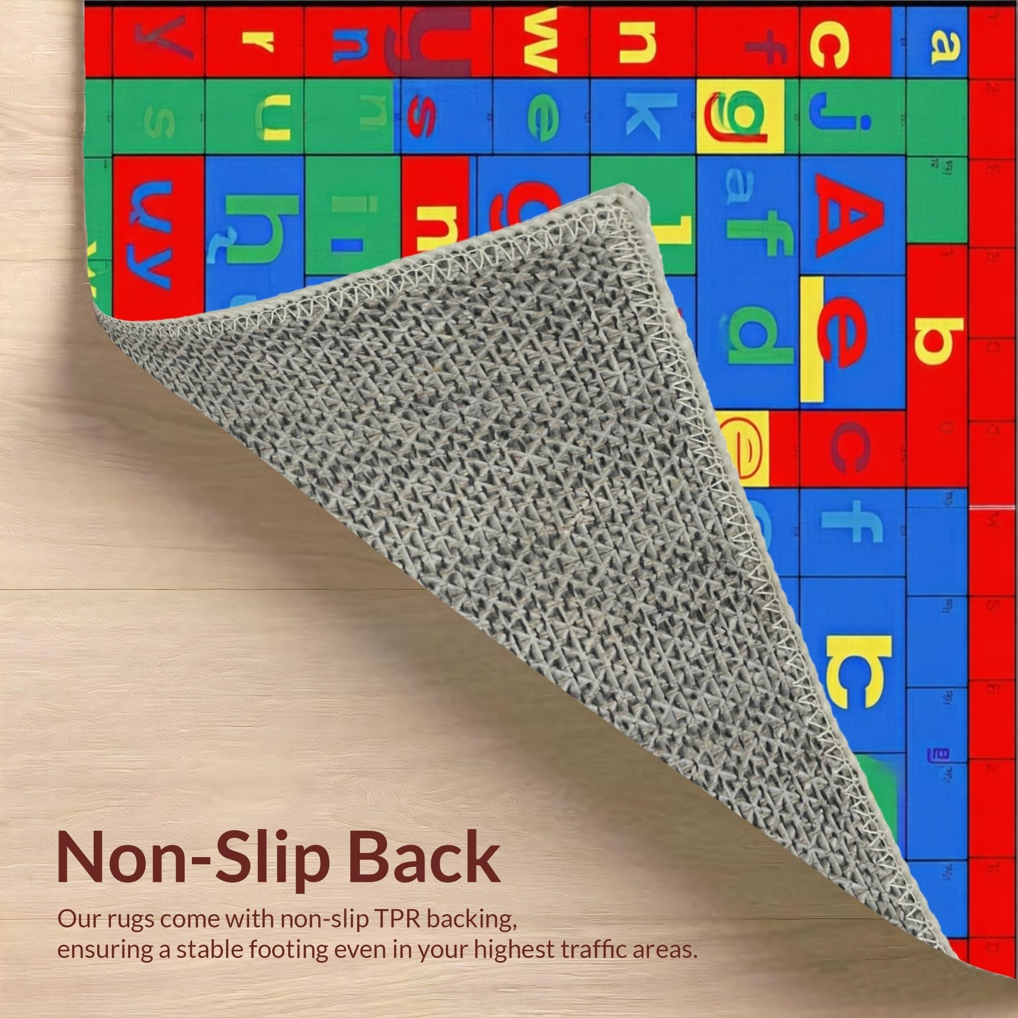 Ultra Soft Area Rug, Non Slip, Stain Resistant, Washable Area Rugs for Living Room, Bedroom, Bright Engaging Nursery Alphabet Theme(Red) Overview: