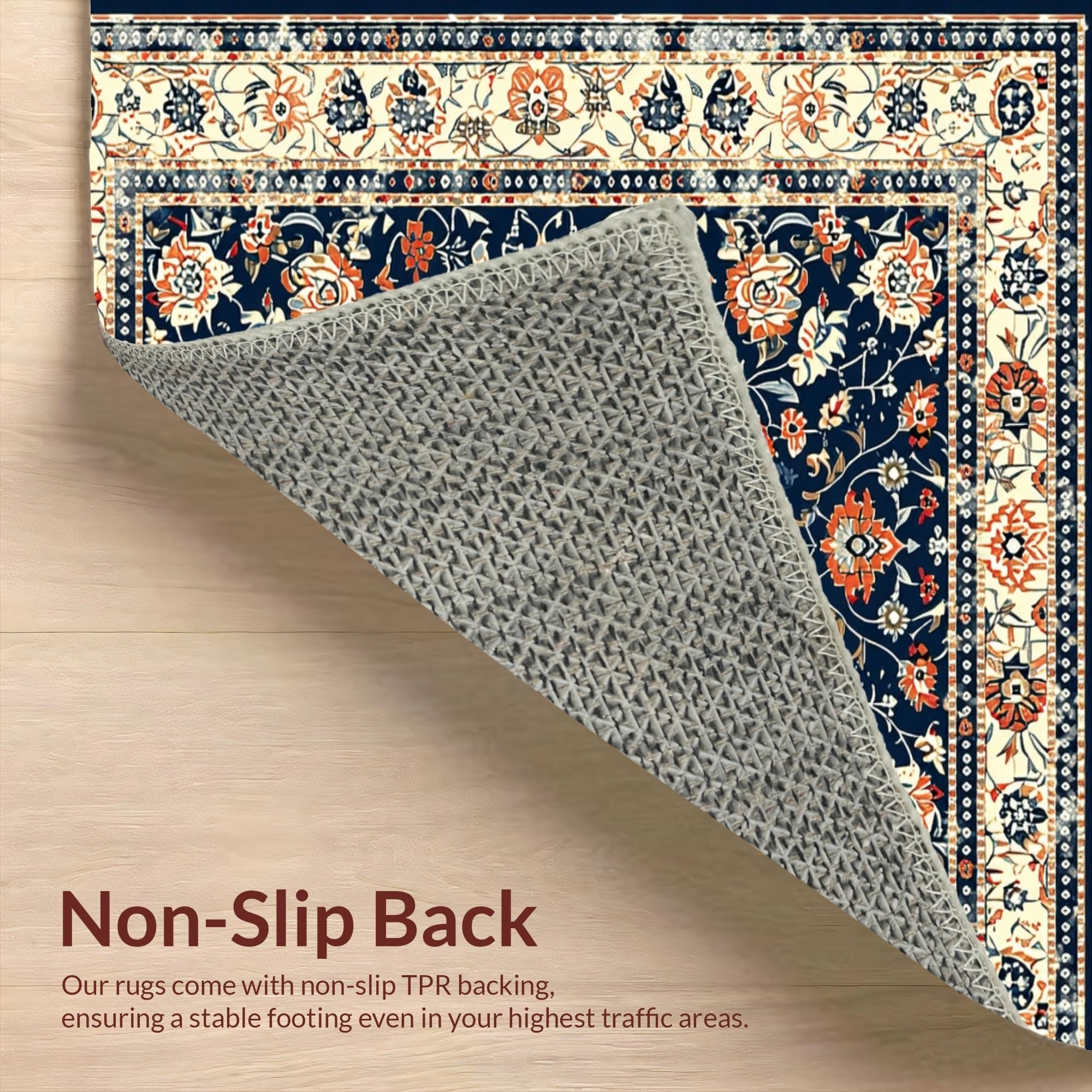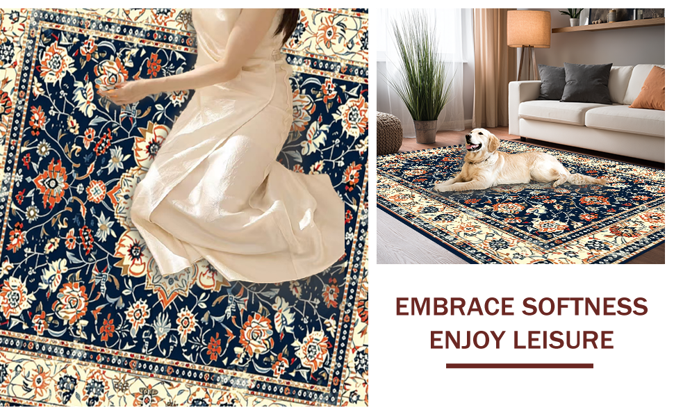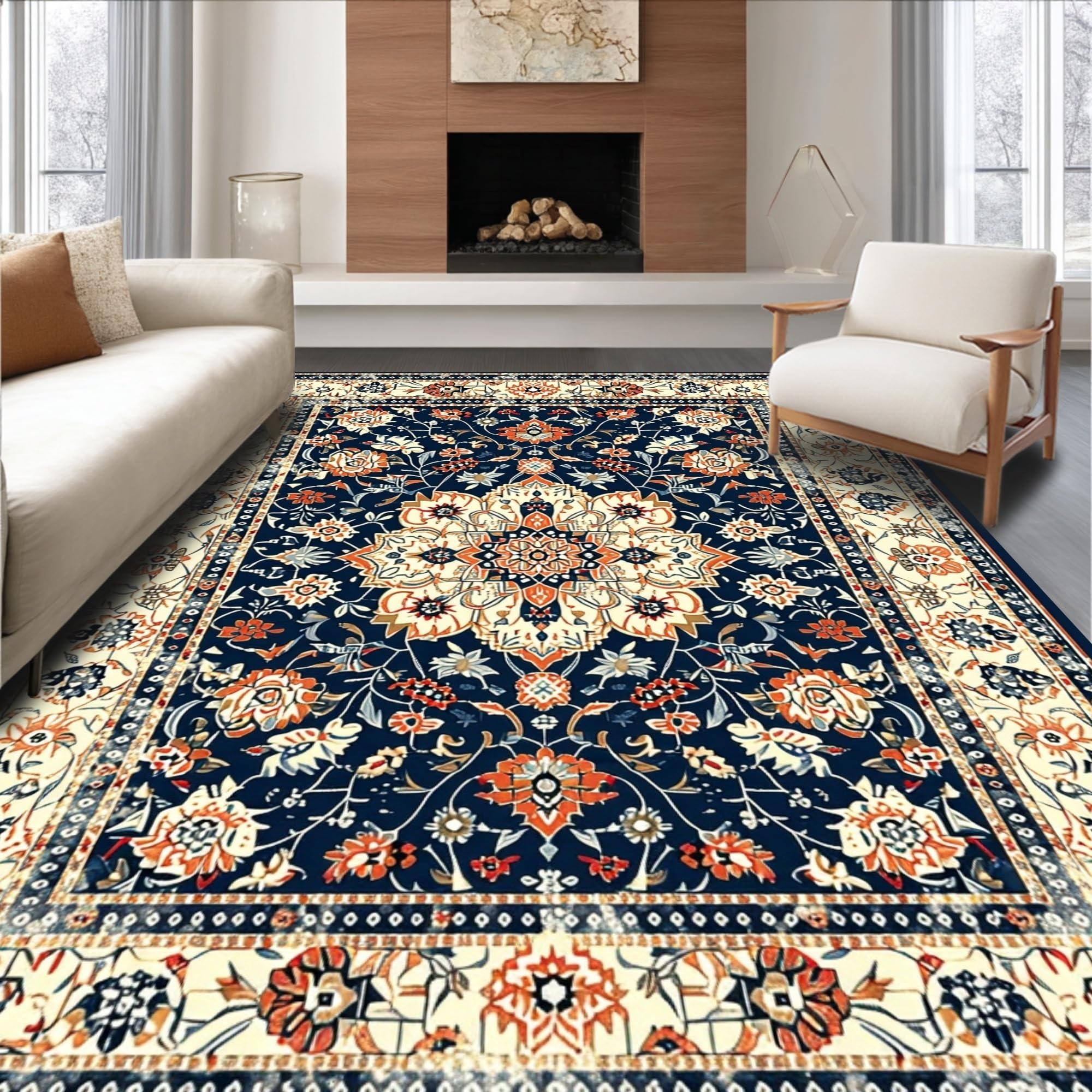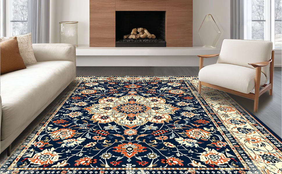 Ultra Soft Area Rug, Non Slip, Stain Resistant, Washable Area Rugs for Living Room, Bedroom, Bright Floral Lattice Visual(Blue) Overview: