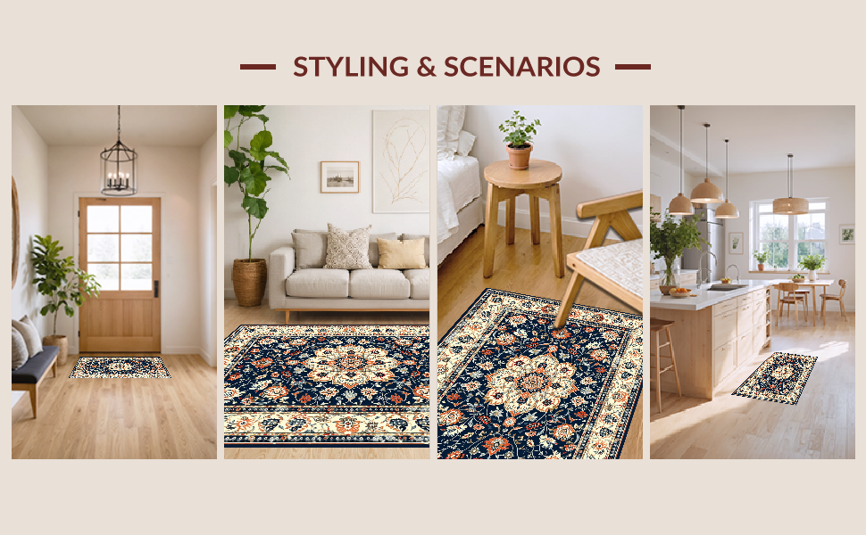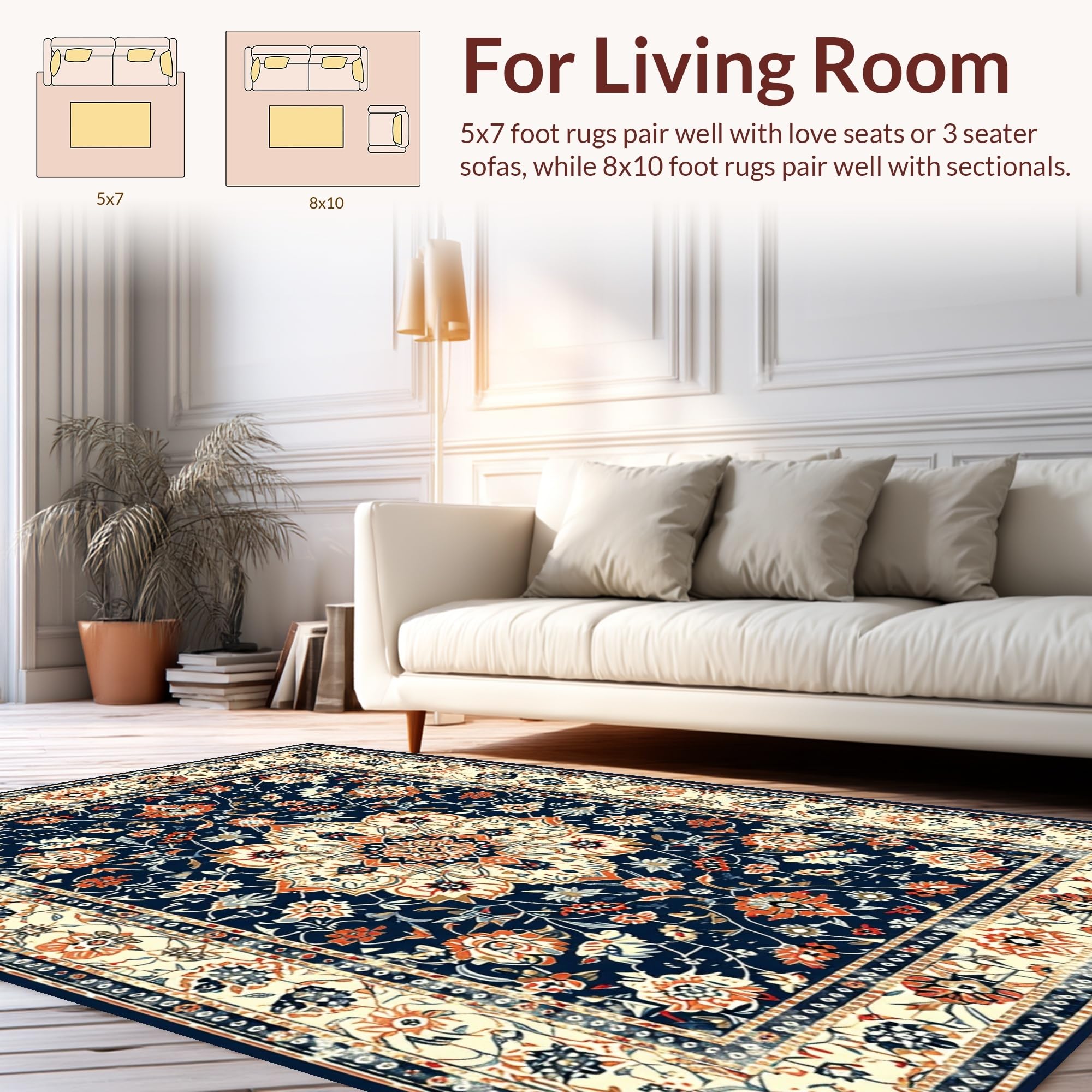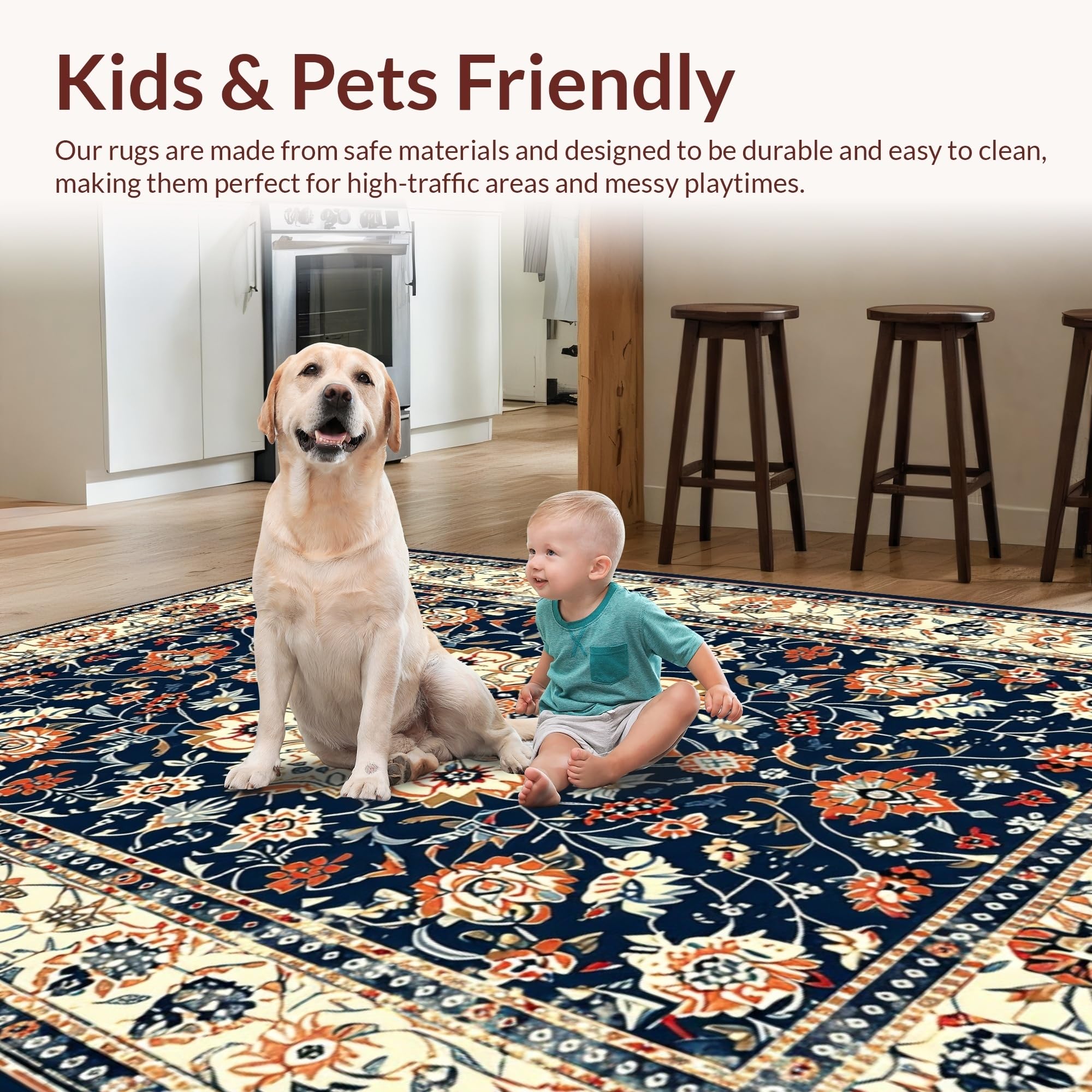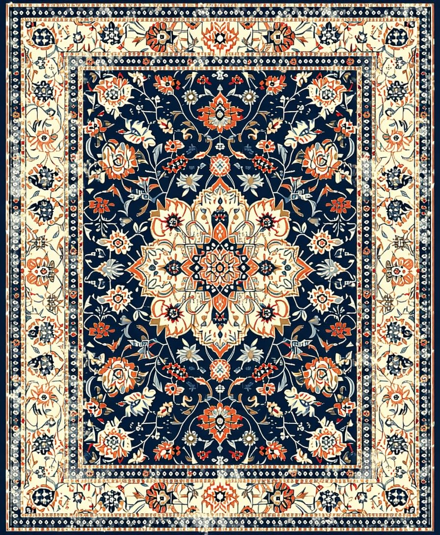 Ultra Soft Area Rug, Non Slip, Stain Resistant, Washable Area Rugs for Living Room, Bedroom, Bright Floral Lattice Visual(Blue) Overview: