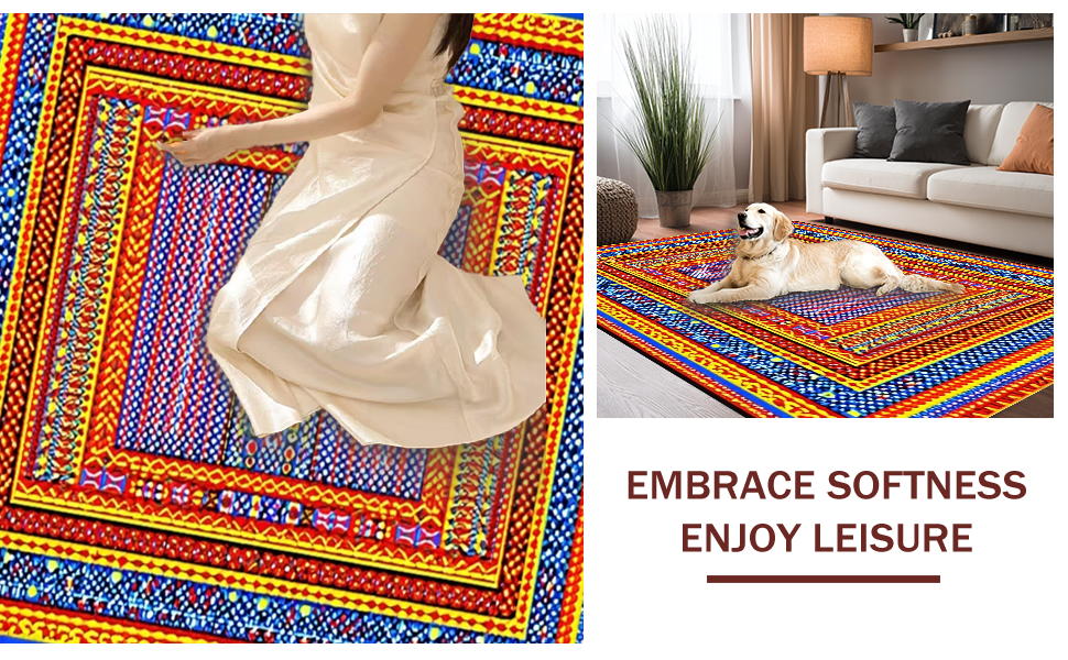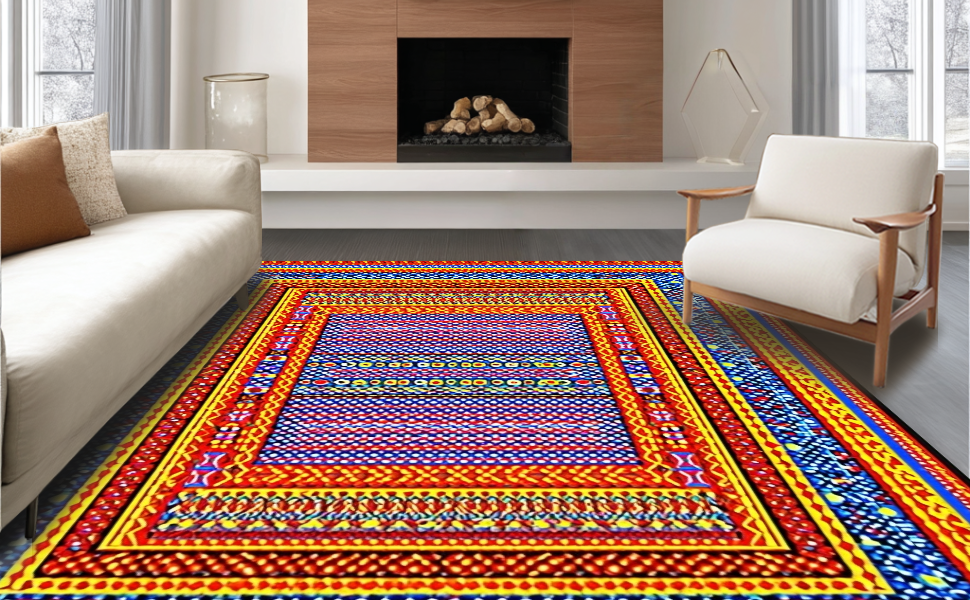 Ultra Soft Area Rug, Non Slip, Stain Resistant, Washable Area Rugs for Living Room, Bedroom, Bright Folk Art Inspired Rug(Blue) Overview: