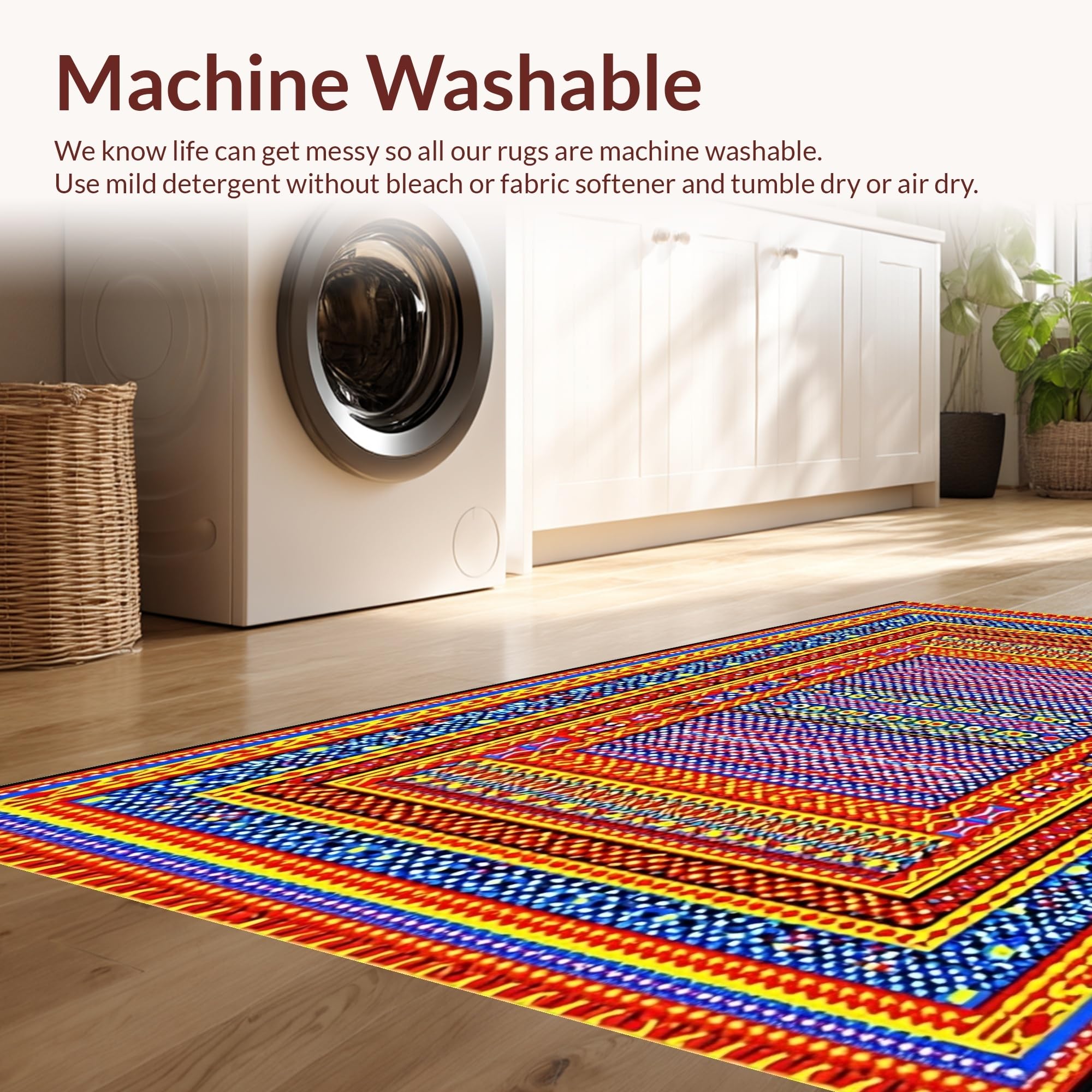- Machine Washable: Our rugs can be easily thrown in the wash machine.