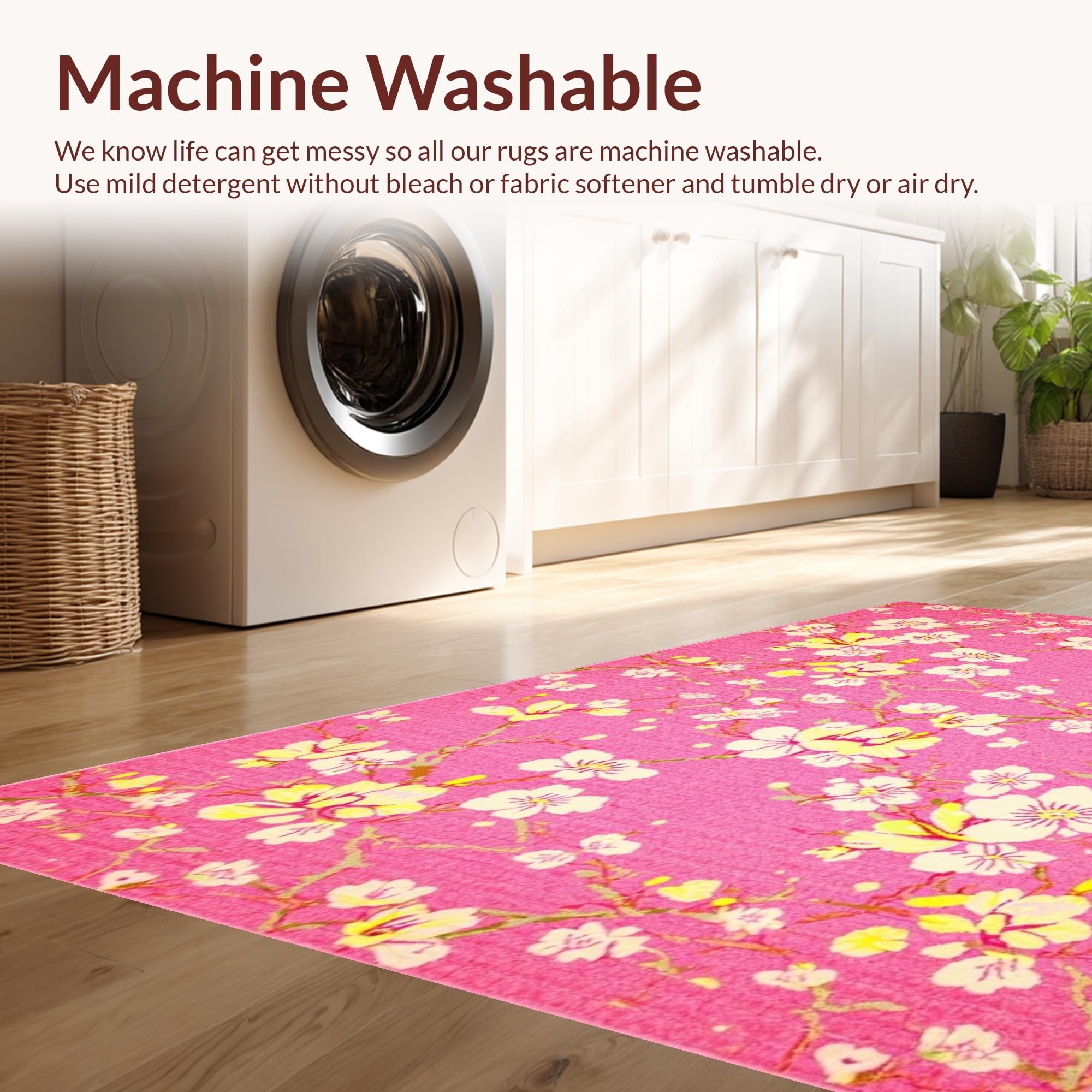 - Machine Washable: Our rugs can be easily thrown in the wash machine.