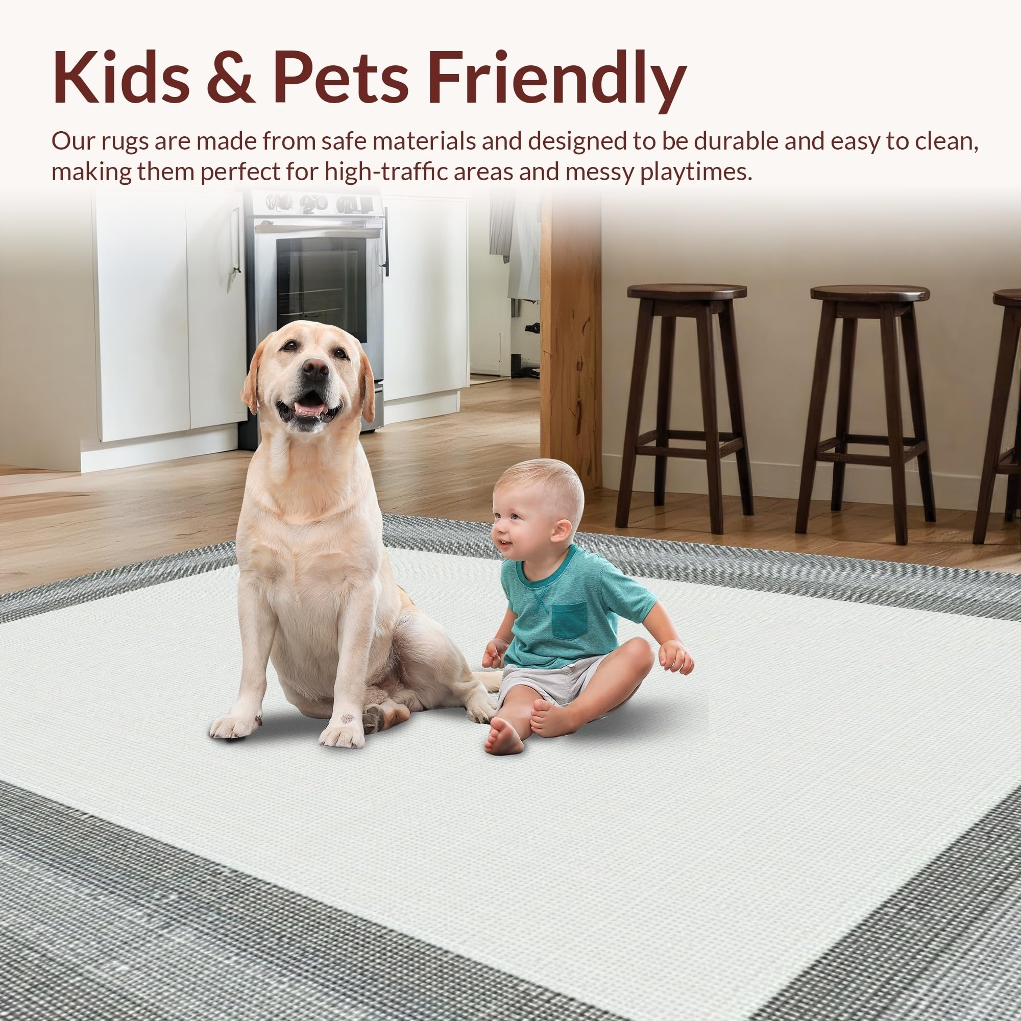 Ultra Soft Area Rug, Non Slip, Stain Resistant, Washable Area Rugs for Living Room, Bedroom, Bright Fun Multi-Colored Dot Theme(Gray) Overview:
