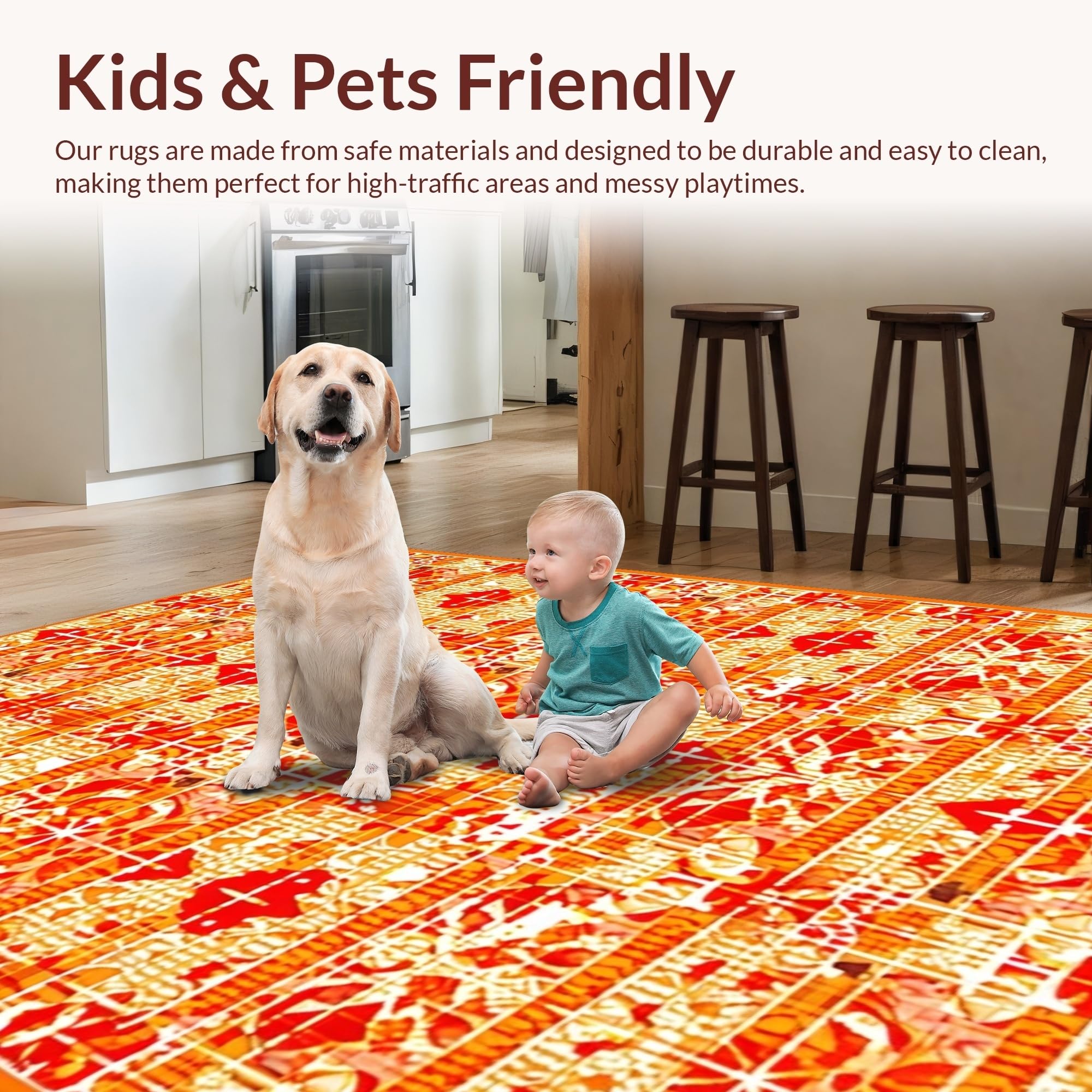Ultra Soft Area Rug, Non Slip, Stain Resistant, Washable Area Rugs for Living Room, Bedroom, Bright Fun Nature-Inspired Look(Red) Overview: