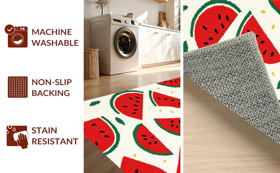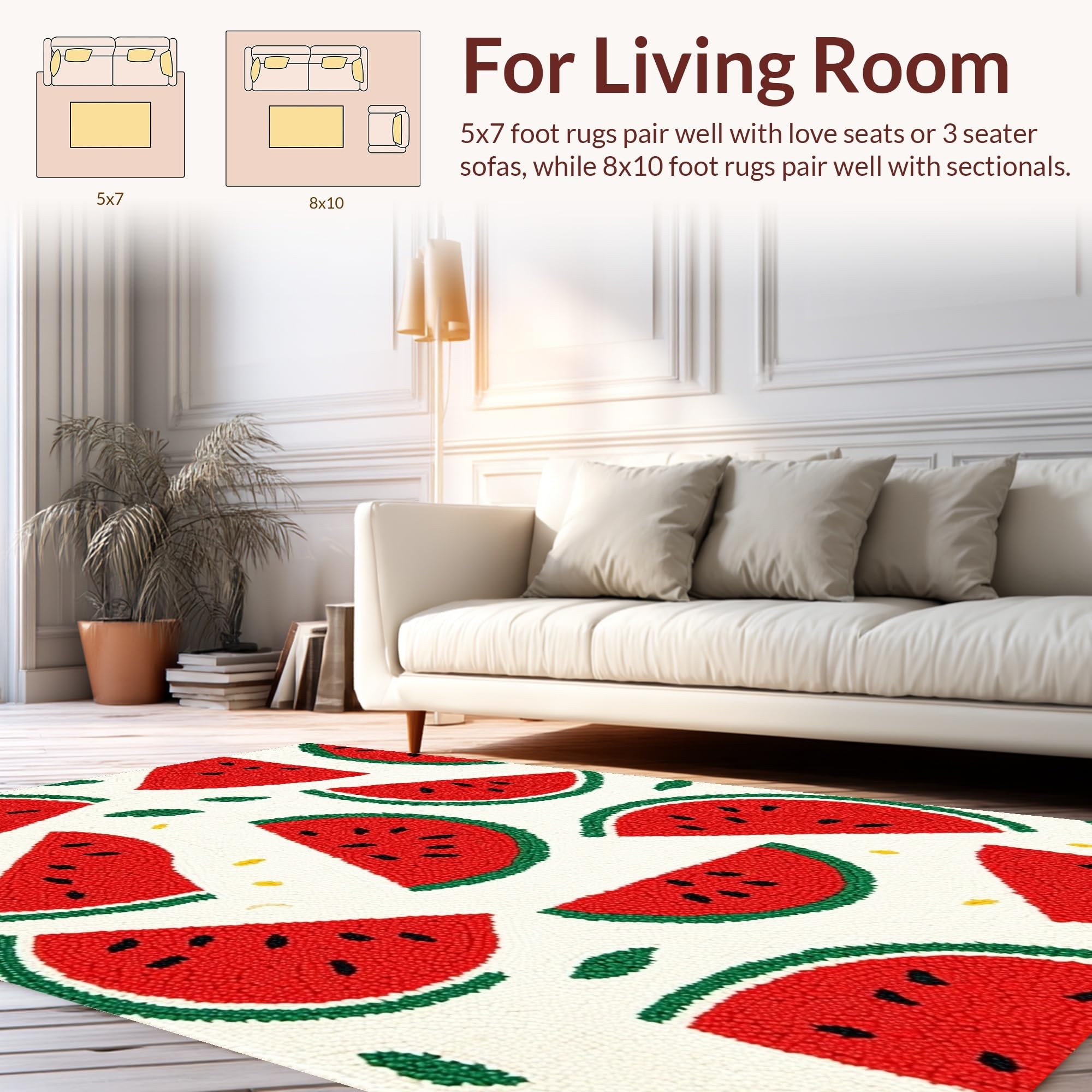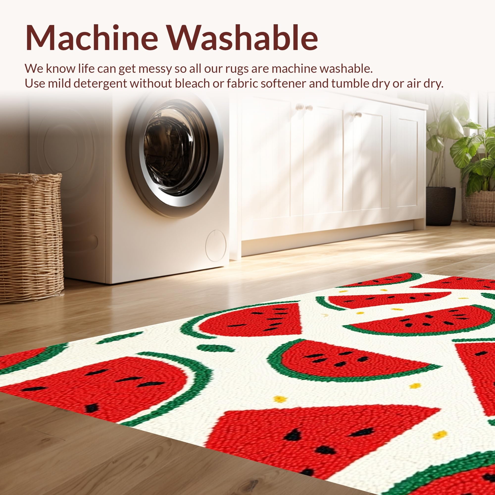 Ultra Soft Area Rug, Non Slip, Stain Resistant, Washable Area Rugs for Living Room, Bedroom, Bright Fun Watermelon Artistry(Red) Overview: