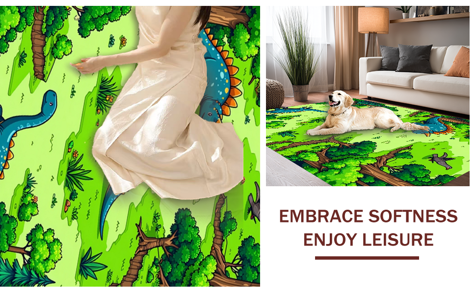 Ultra Soft Area Rug, Non Slip, Stain Resistant, Washable Area Rugs for Living Room, Bedroom, Bright Green and Brown Nature Design(Green) Overview: