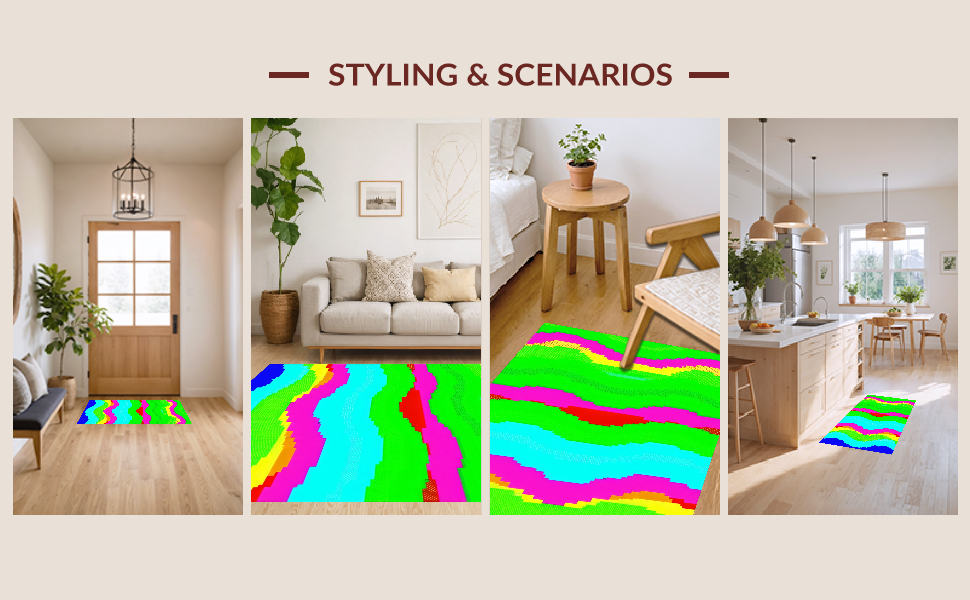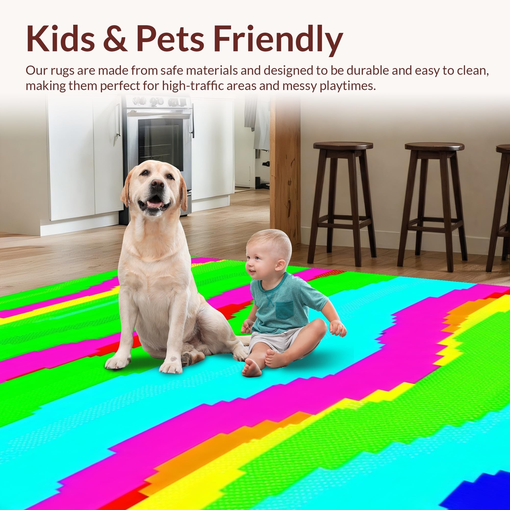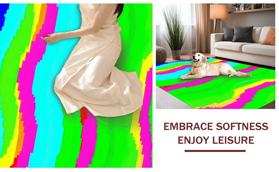Ultra Soft Area Rug, Non Slip, Stain Resistant, Washable Area Rugs for Living Room, Bedroom, Bright Joyful Multicolor Theme(Green) Overview: