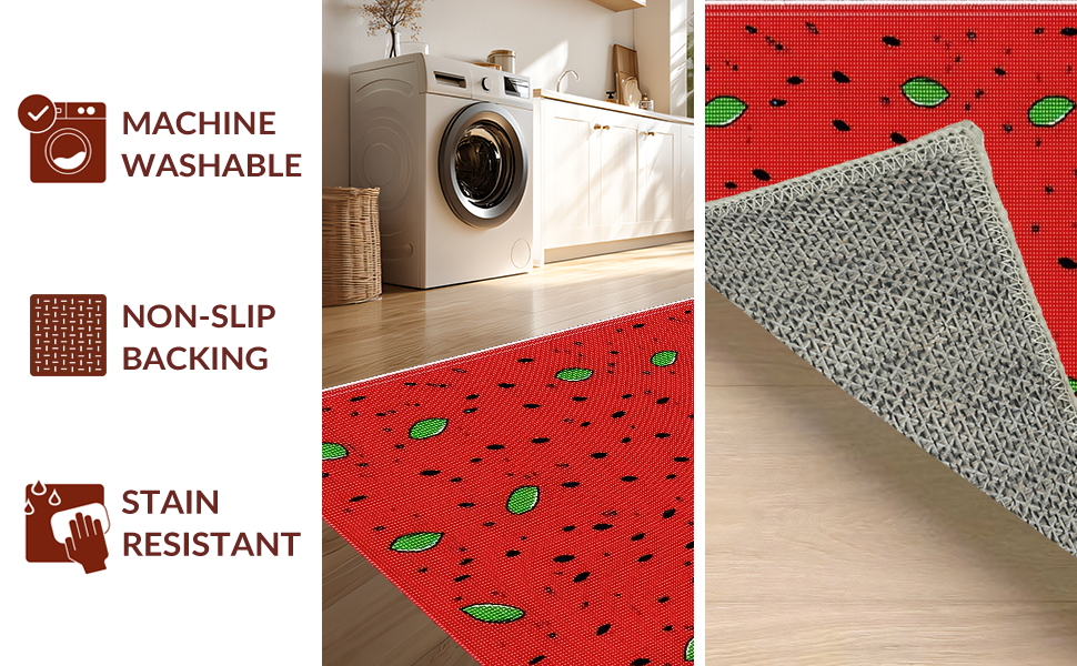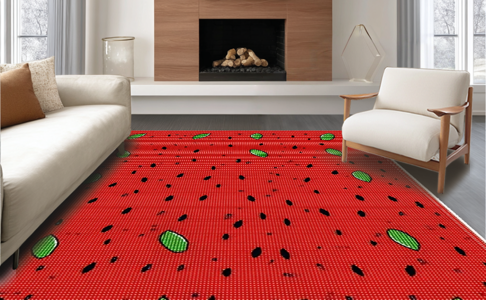 Ultra Soft Area Rug, Non Slip, Stain Resistant, Washable Area Rugs for Living Room, Bedroom, Bright Juicy Slice Illustration(Red) Overview: