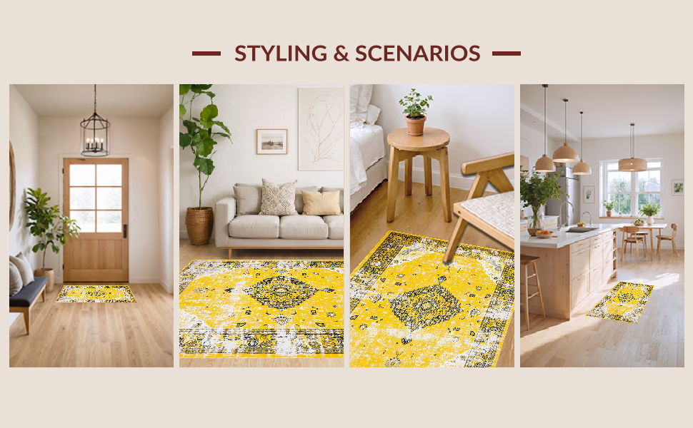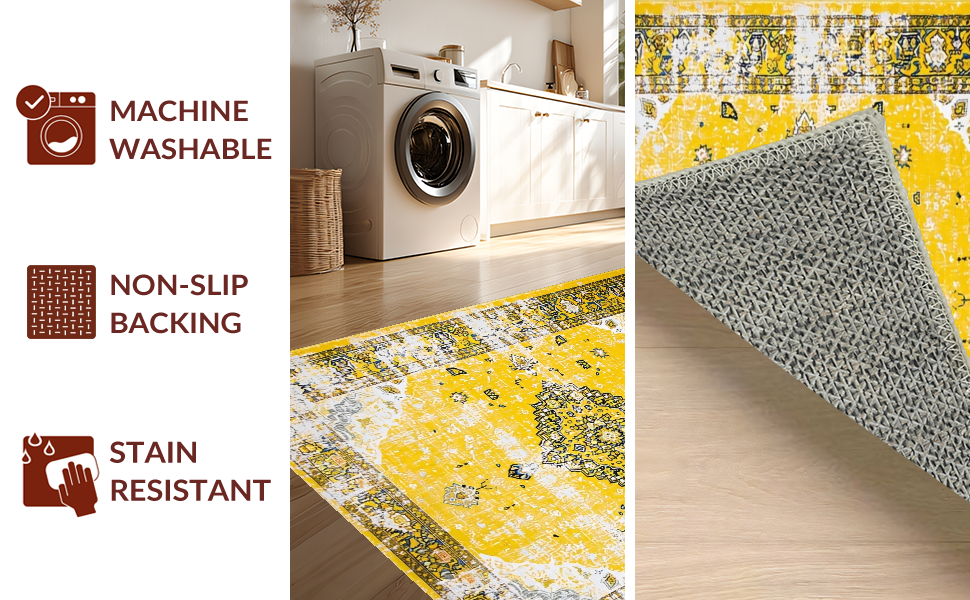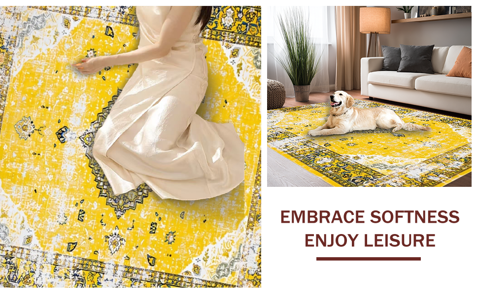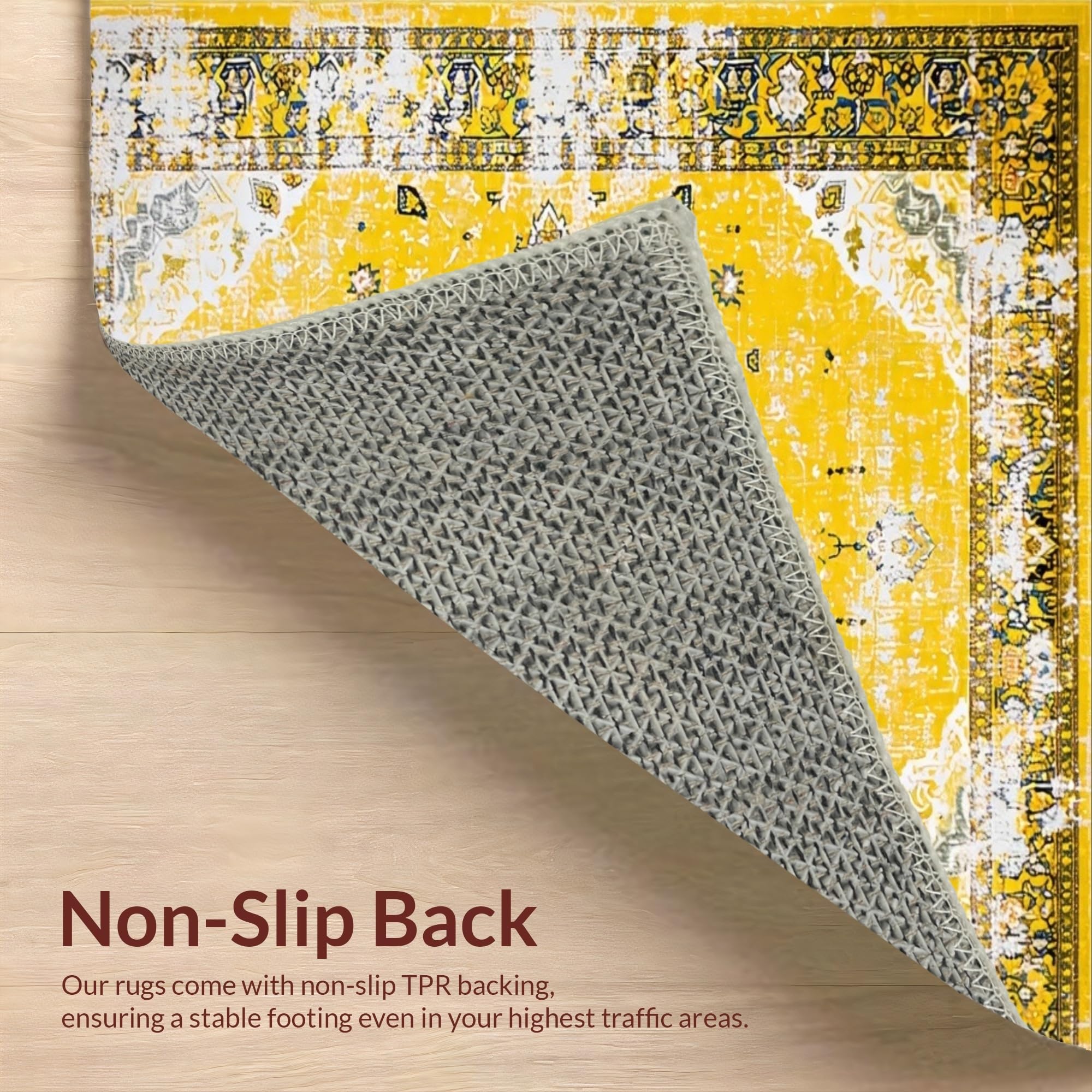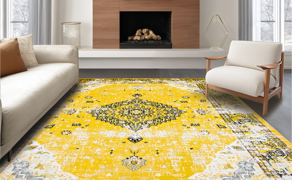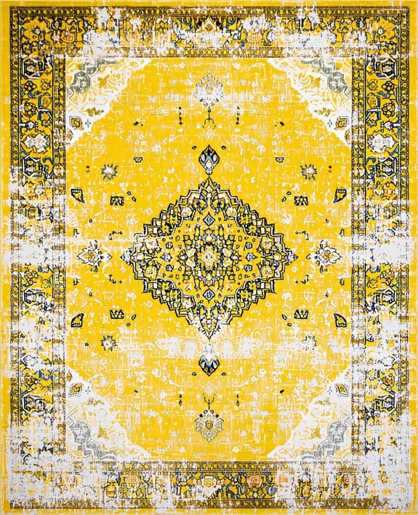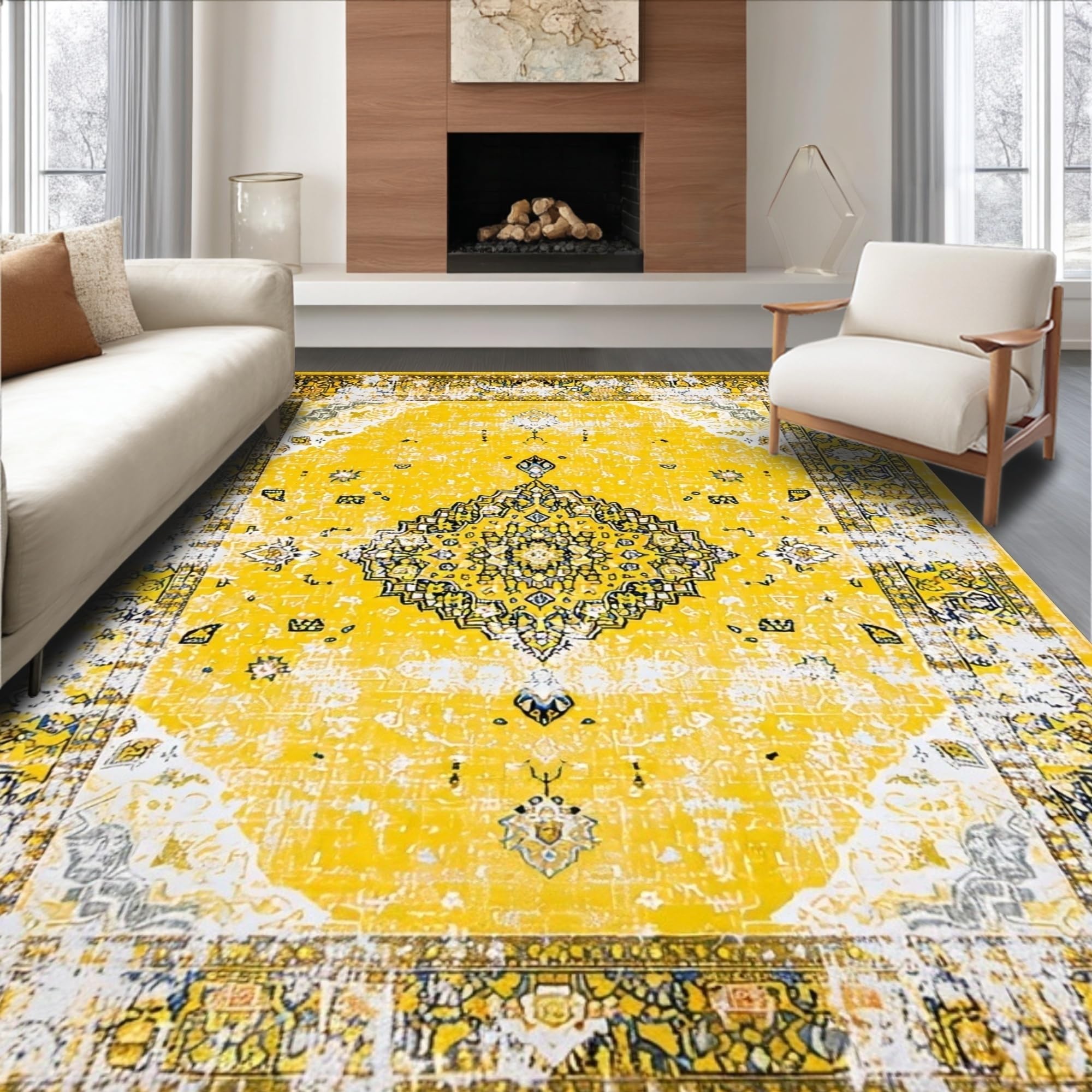 Ultra Soft Area Rug, Non Slip, Stain Resistant, Washable Area Rugs for Living Room, Bedroom, Bright Medallion Tiled Aesthetic(Yellow) Overview: