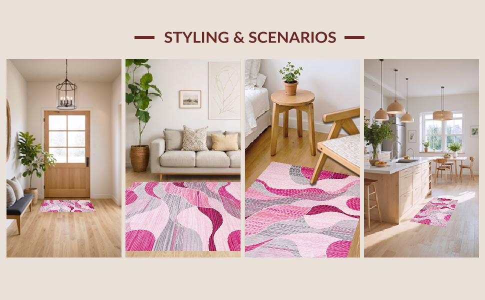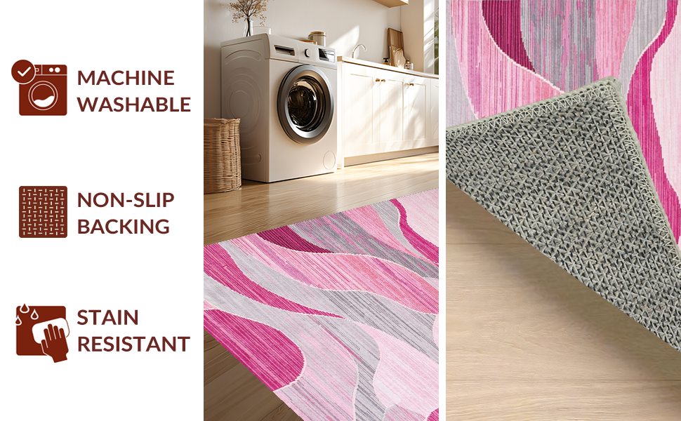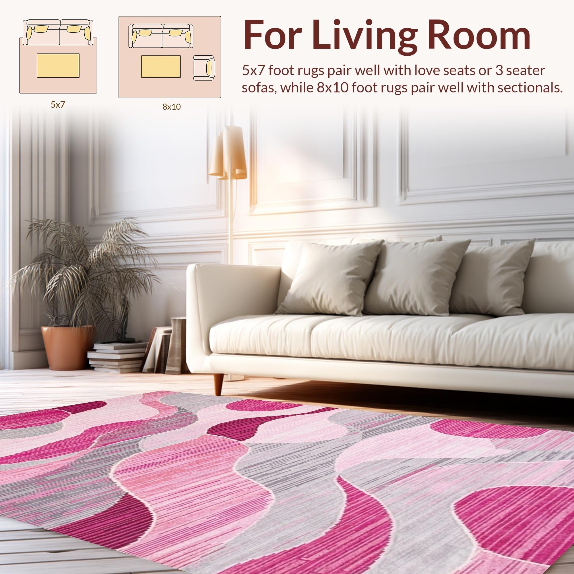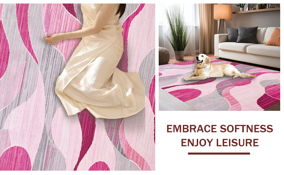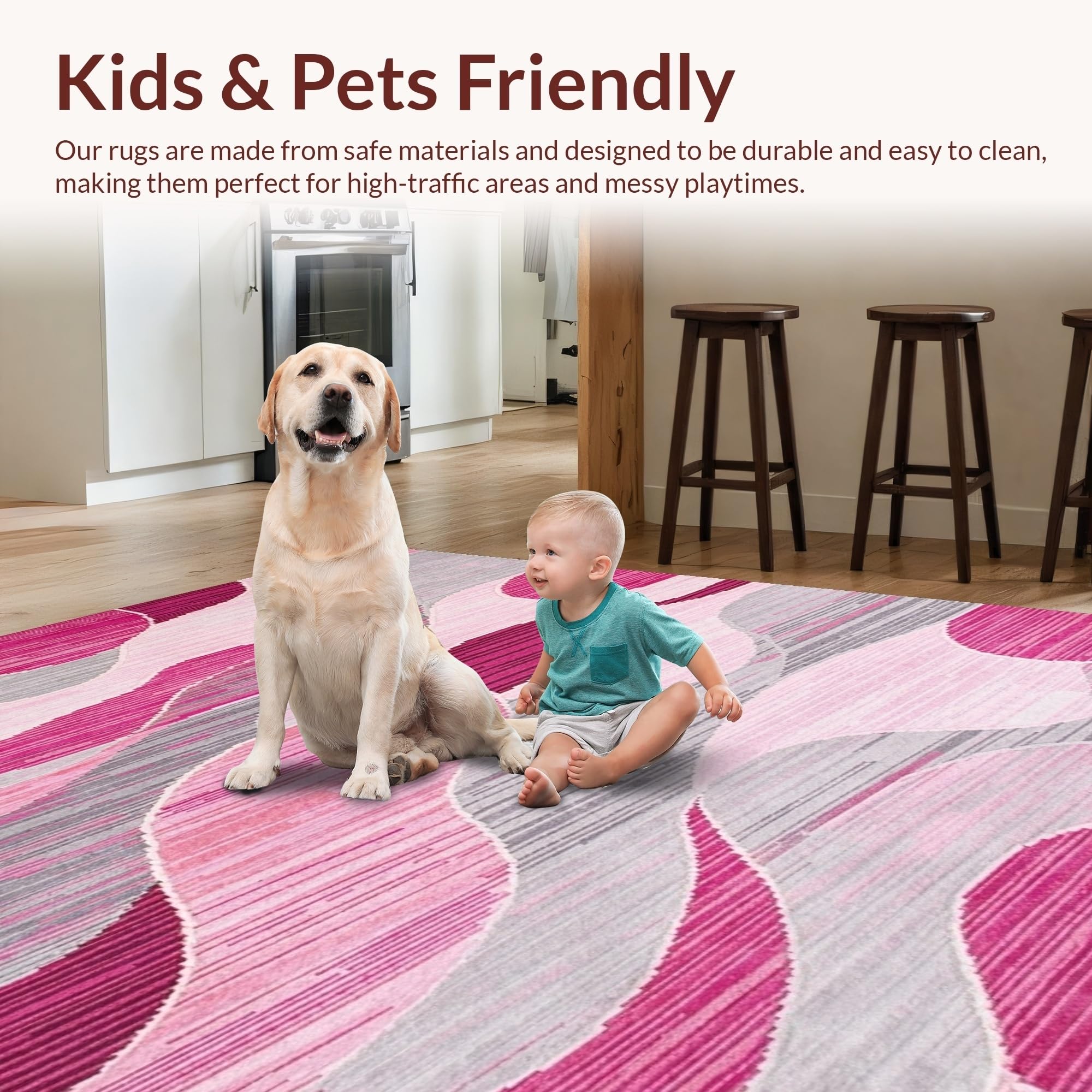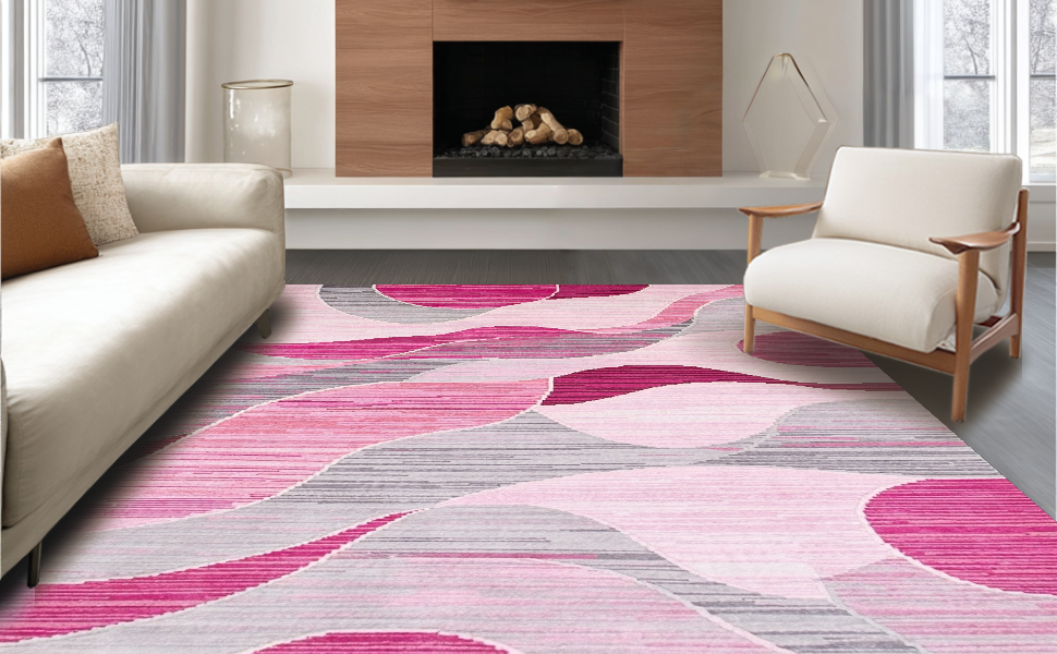 Ultra Soft Area Rug, Non Slip, Stain Resistant, Washable Area Rugs for Living Room, Bedroom, Bright Minimalist Abstract Vision(Pink) Overview: