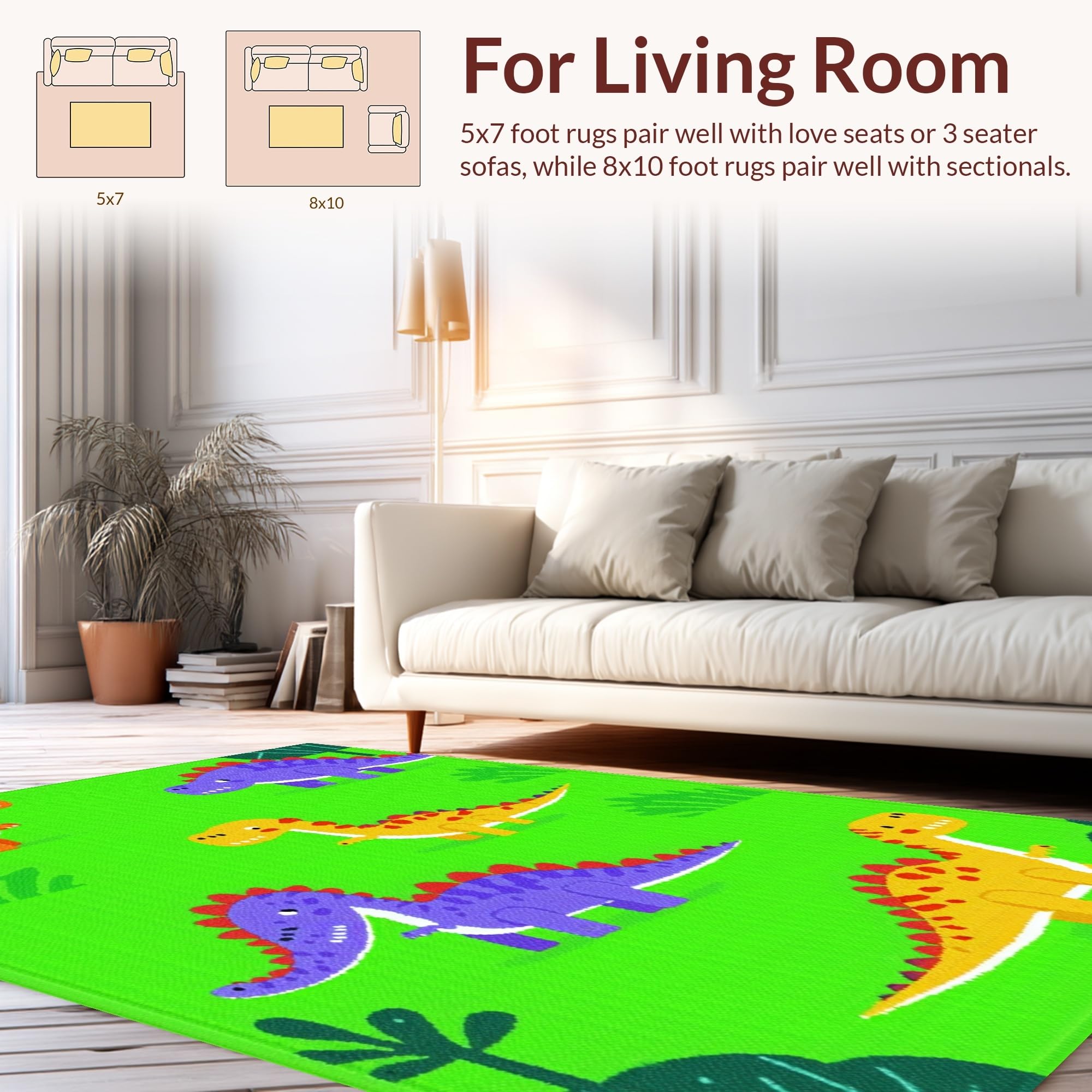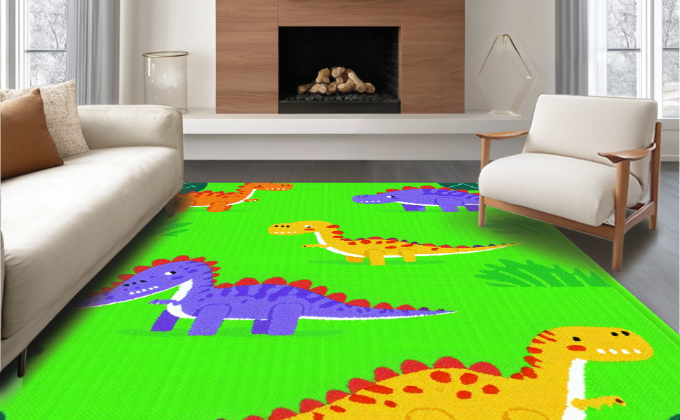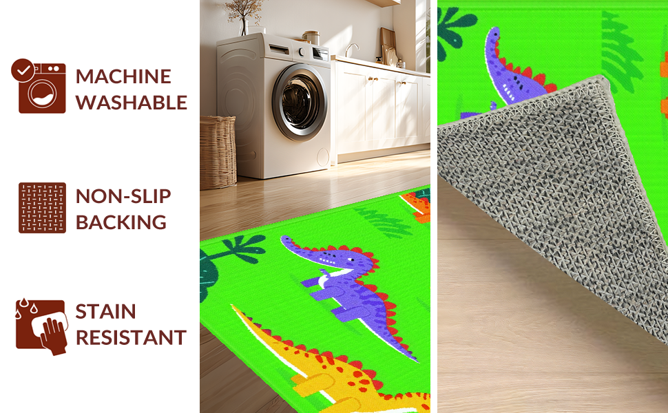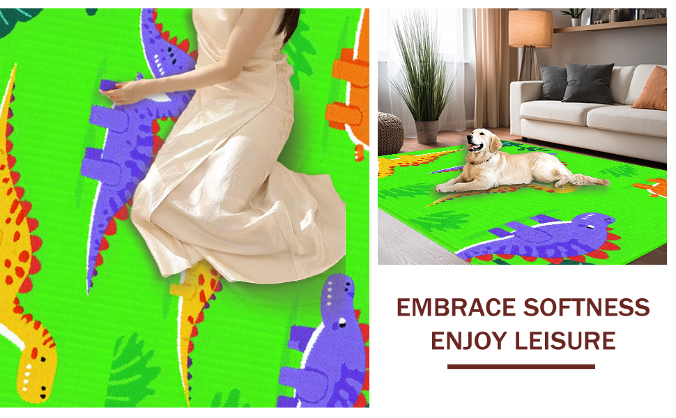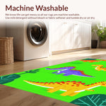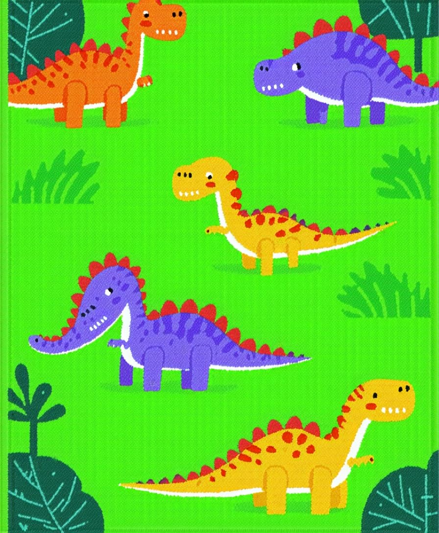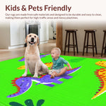 Ultra Soft Area Rug, Non Slip, Stain Resistant, Washable Area Rugs for Living Room, Bedroom, Bright Multi-Color Dino Adventure Style(Green) Overview: