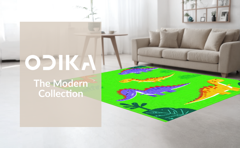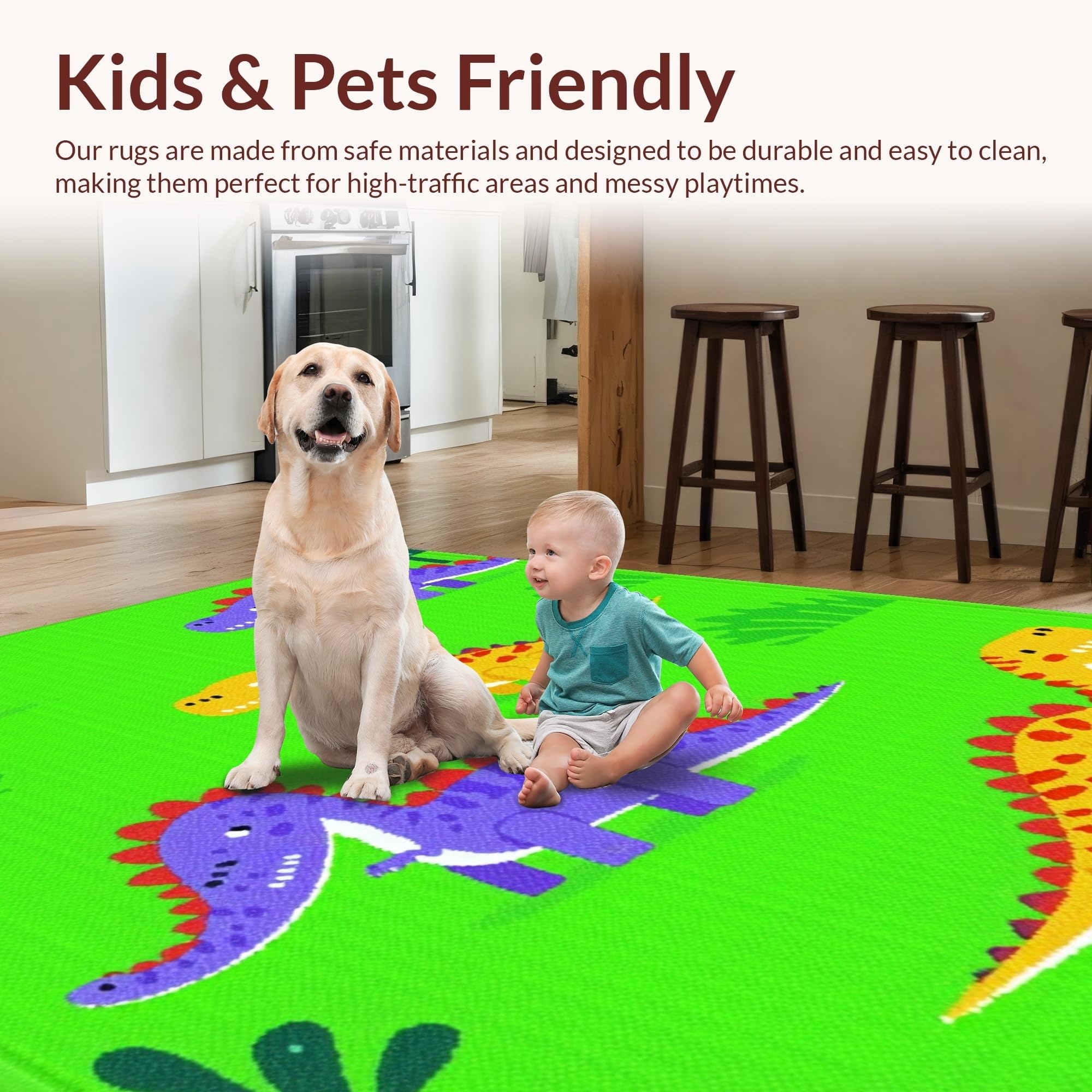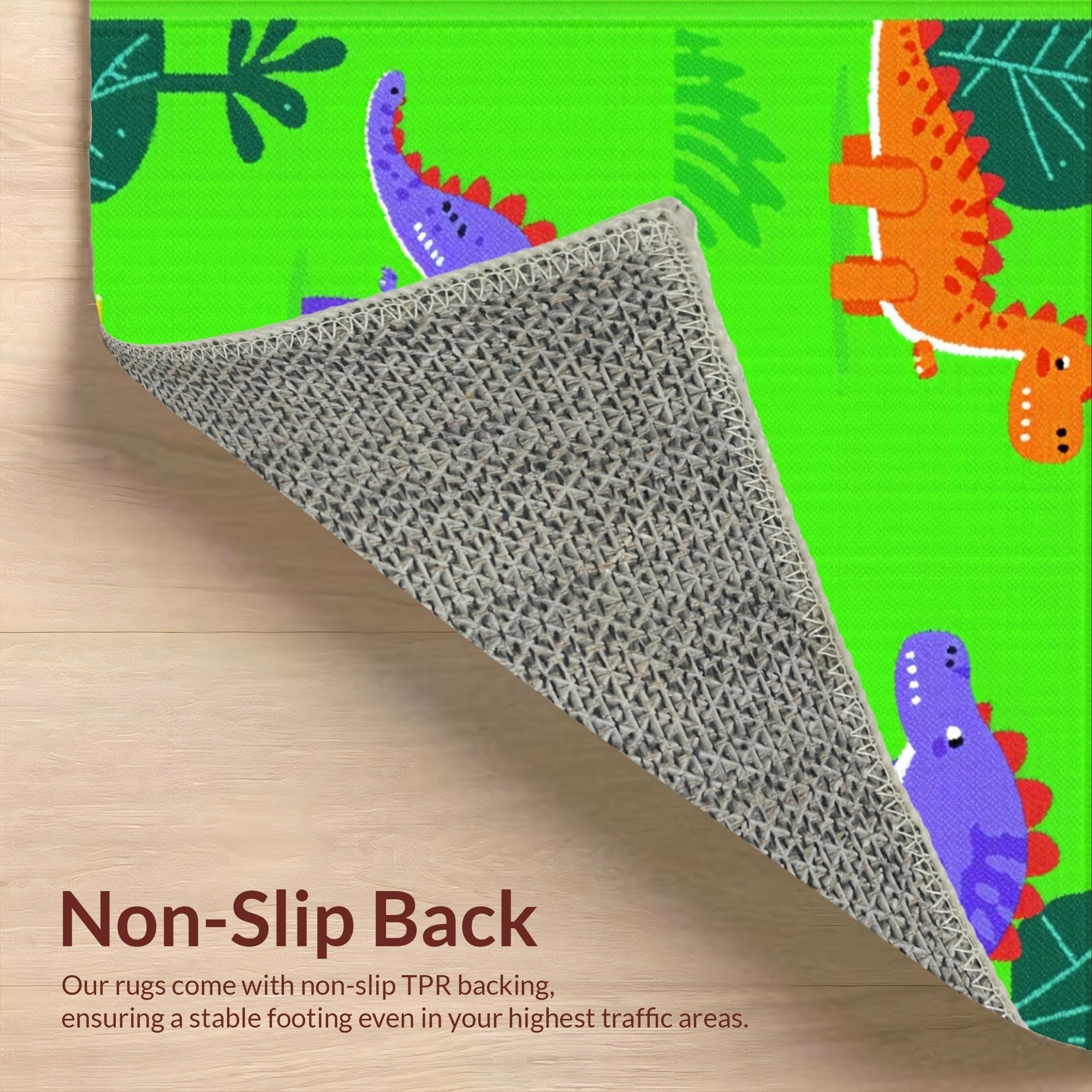 Ultra Soft Area Rug, Non Slip, Stain Resistant, Washable Area Rugs for Living Room, Bedroom, Bright Multi-Color Dino Adventure Style(Green) Overview: