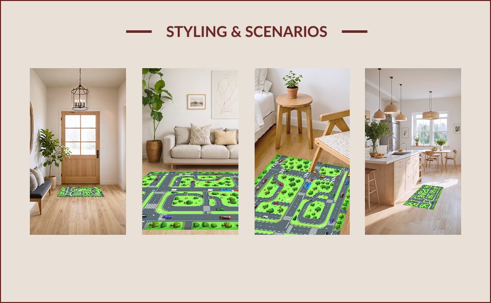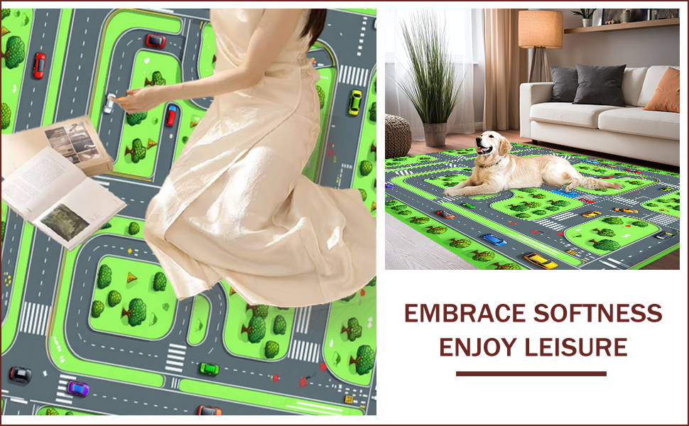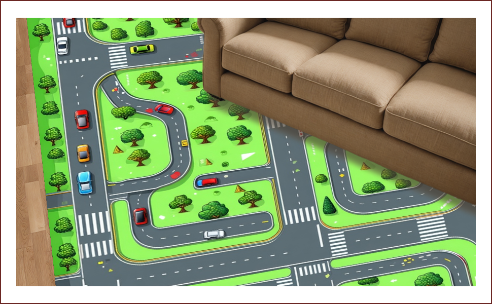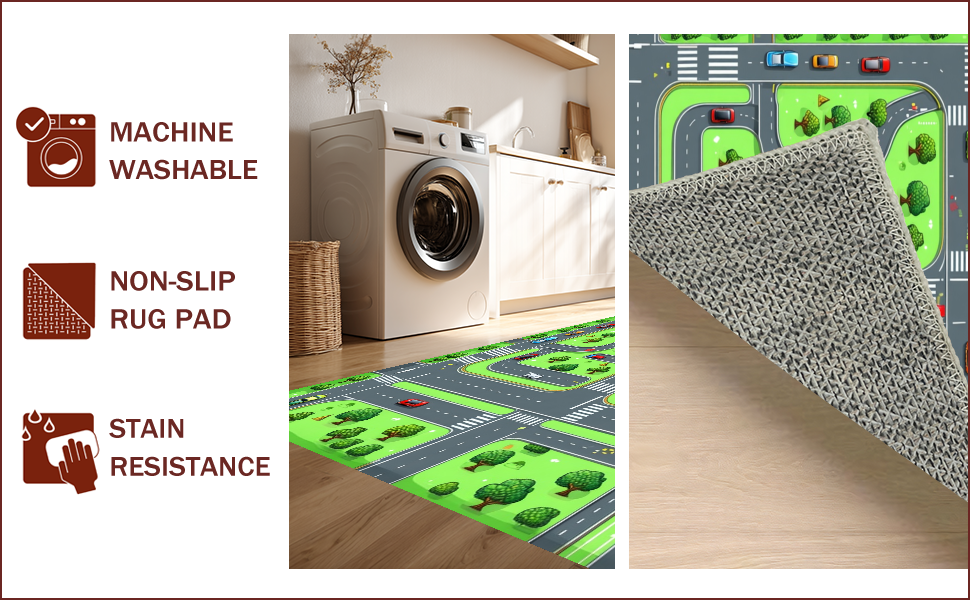 Ultra Soft Area Rug, Non Slip, Stain Resistant, Washable Area Rugs for Living Room, Bedroom, Bright Multicolored City Adventure(Green) Overview: