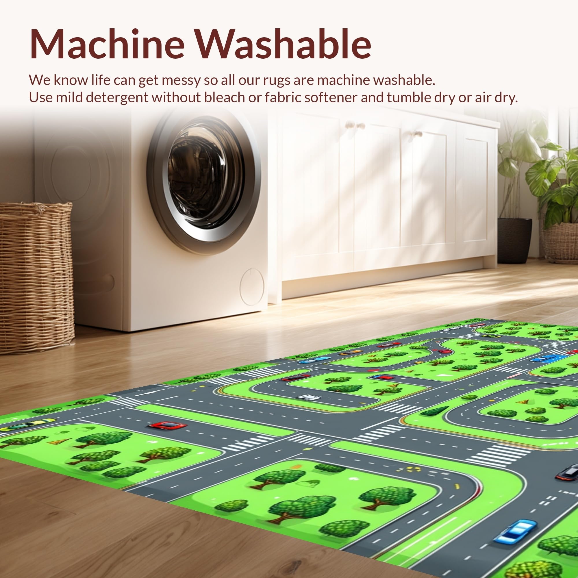 - Machine Washable: Our rugs can be easily thrown in the wash machine.