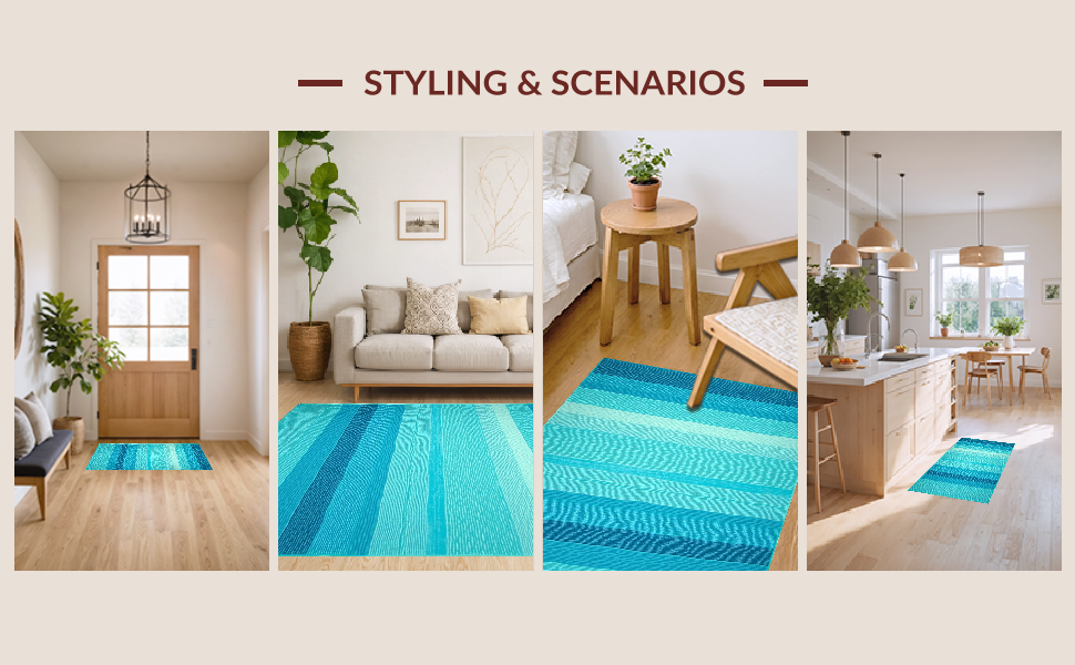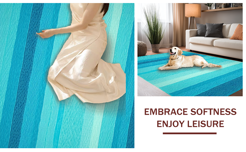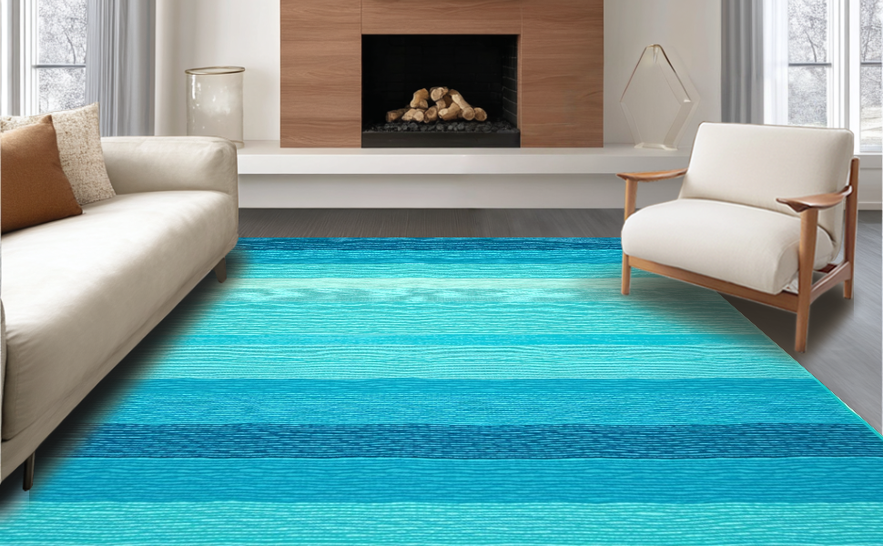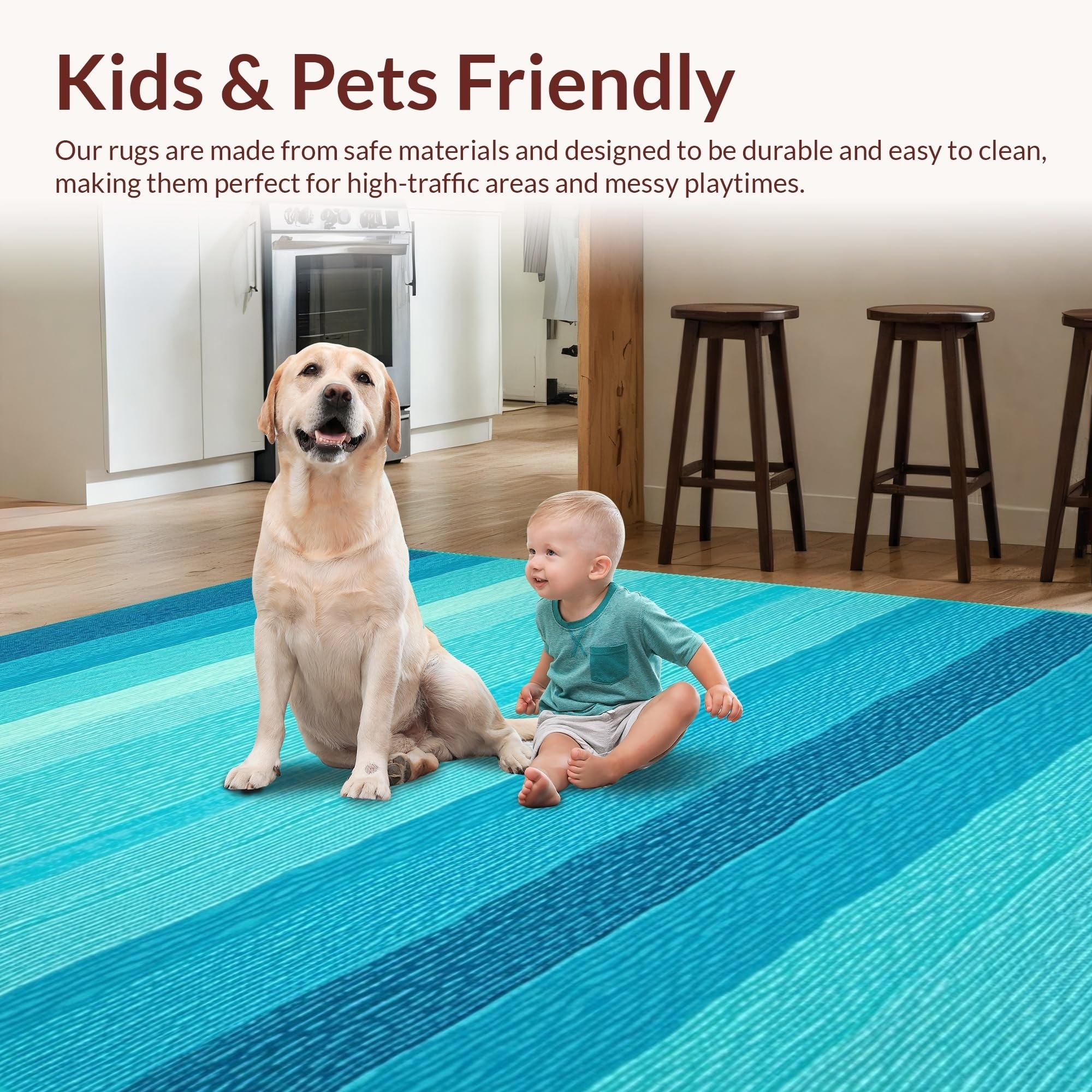 Ultra Soft Area Rug, Non Slip, Stain Resistant, Washable Area Rugs for Living Room, Bedroom, Bright Ocean Wave Design(Blue) Overview: