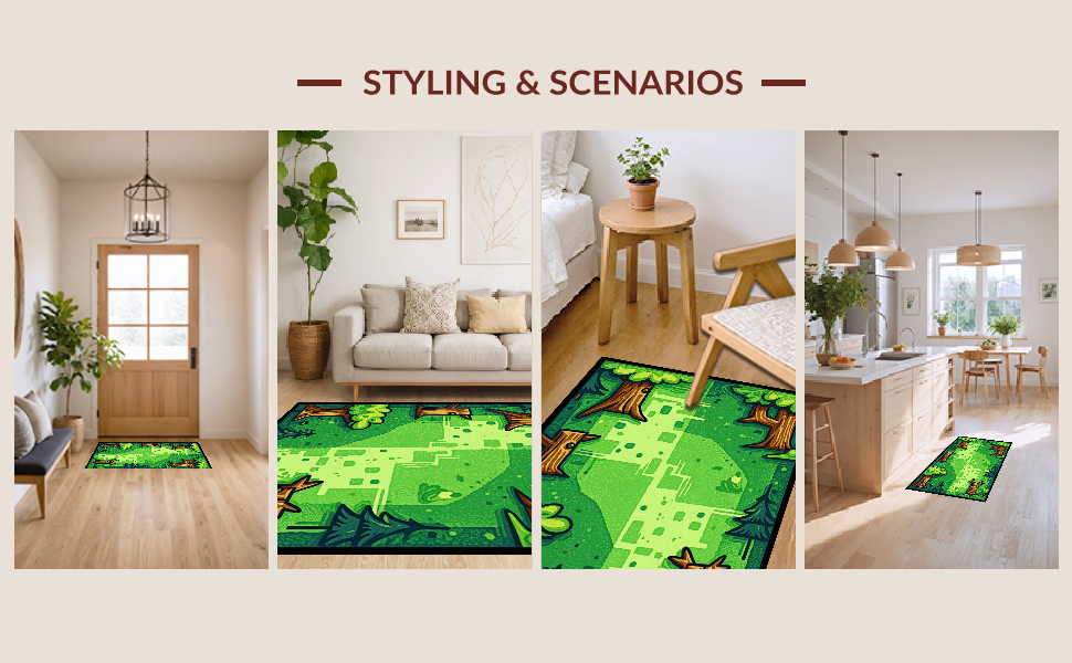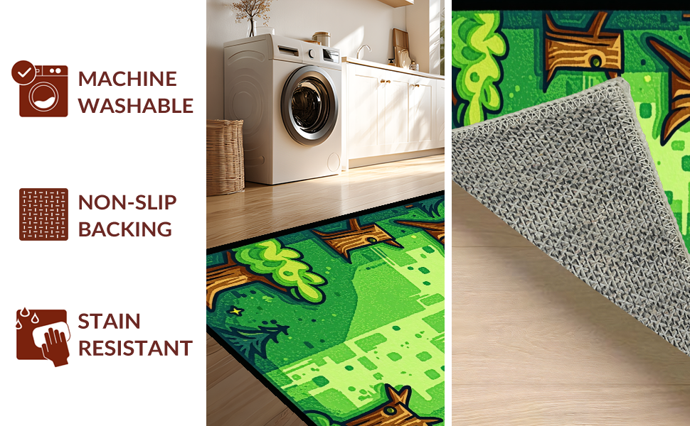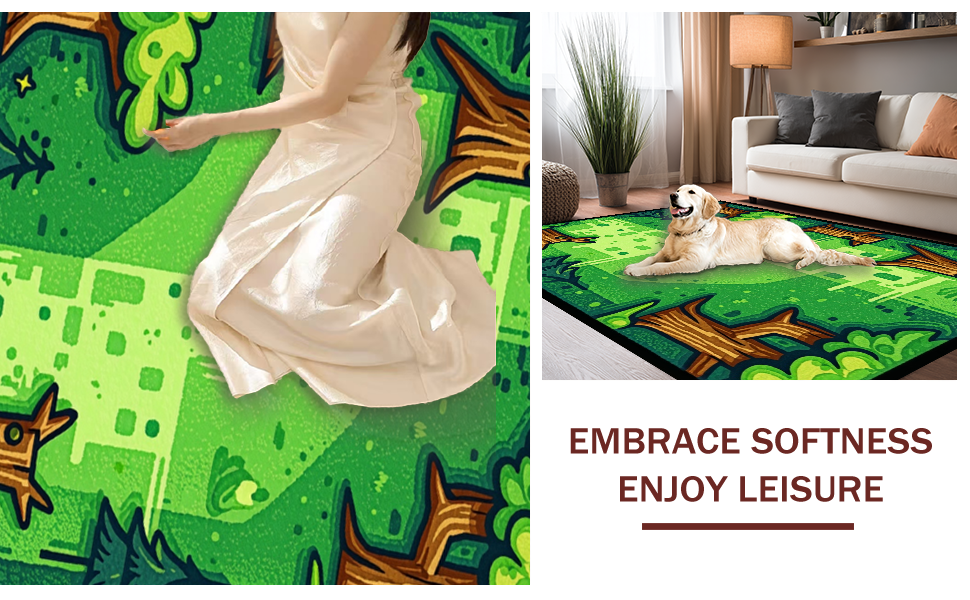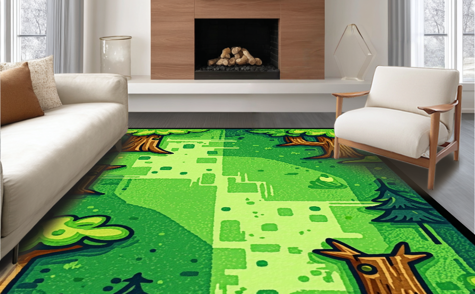Ultra Soft Area Rug, Non Slip, Stain Resistant, Washable Area Rugs for Living Room, Bedroom, Bright Organic Patterned Landscape(Green) Overview: