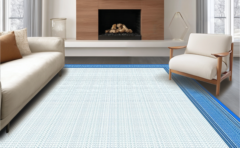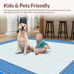 Ultra Soft Area Rug, Non Slip, Stain Resistant, Washable Area Rugs for Living Room, Bedroom, Bright Playful Scalloped Touch(Blue) Overview: