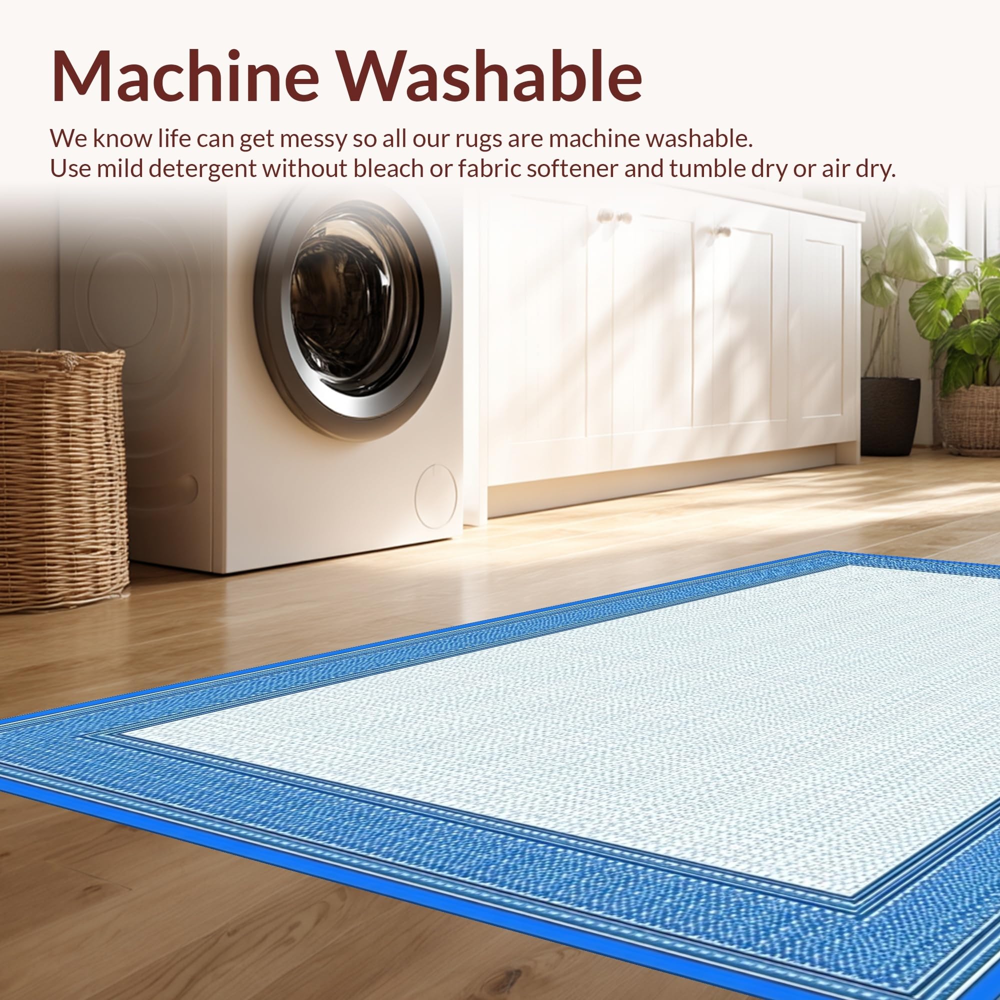 - Machine Washable: Our rugs can be easily thrown in the wash machine.