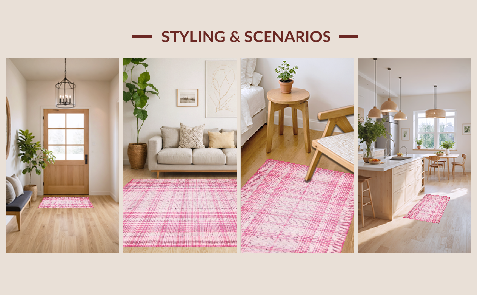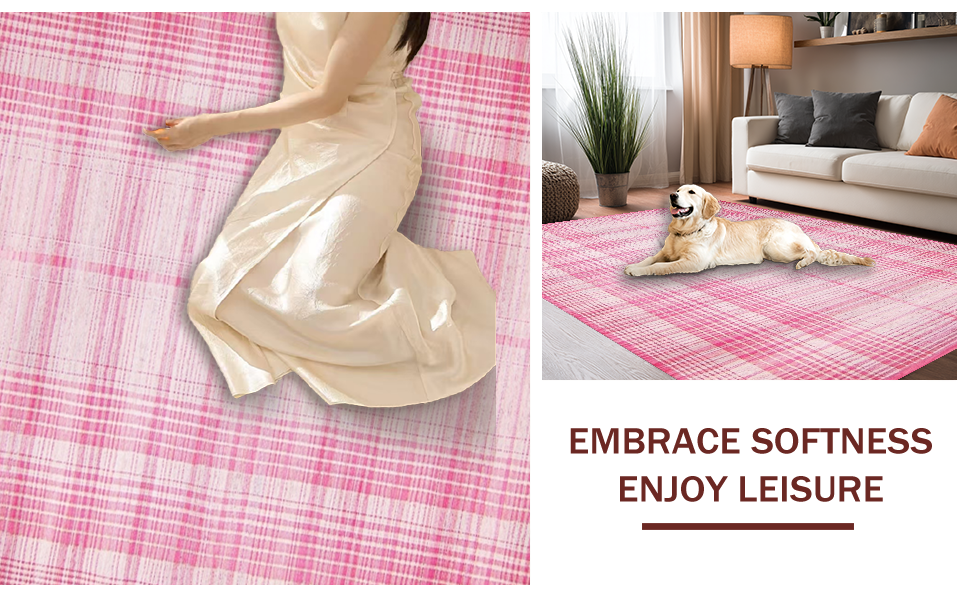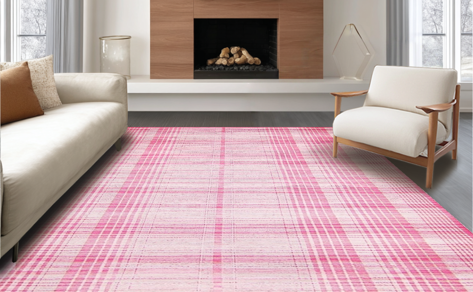 Ultra Soft Area Rug, Non Slip, Stain Resistant, Washable Area Rugs for Living Room, Bedroom, Bright Retro Tiled Visuals(Pink) Overview: