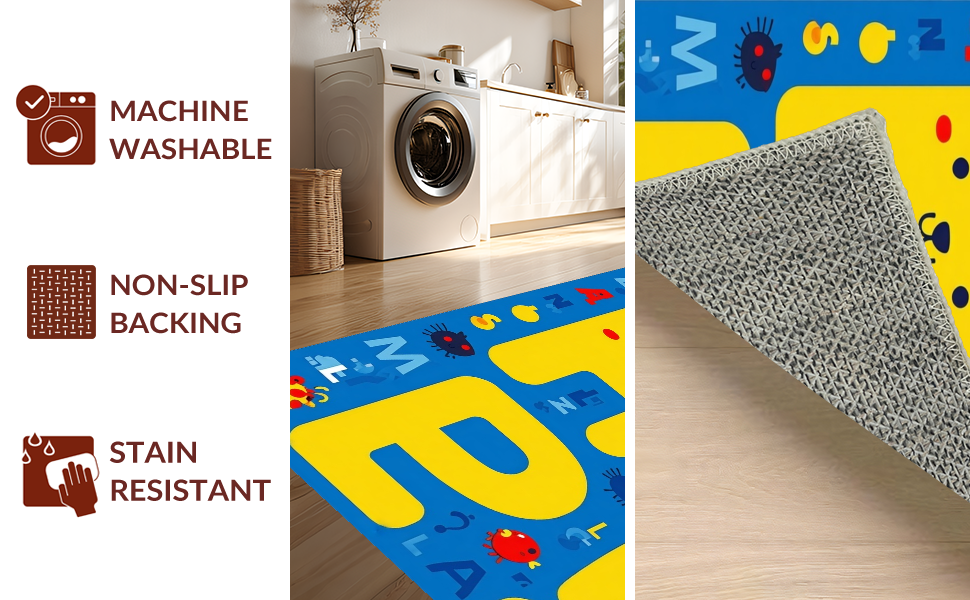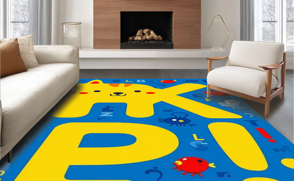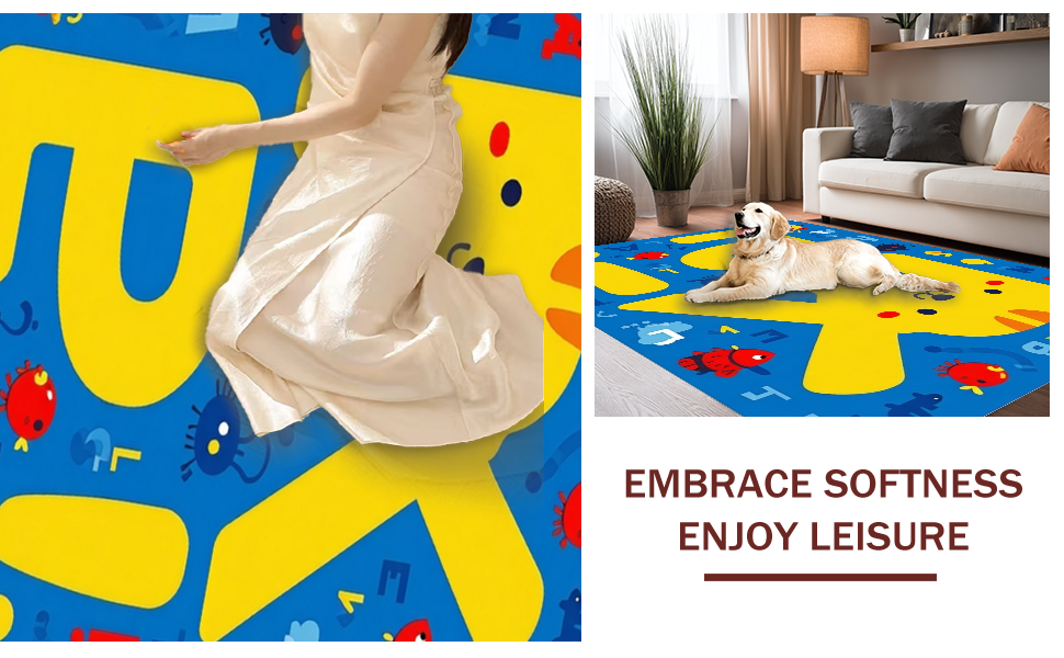 Ultra Soft Area Rug, Non Slip, Stain Resistant, Washable Area Rugs for Living Room, Bedroom, Bright Sensory Learning Palette(Blue) Overview: