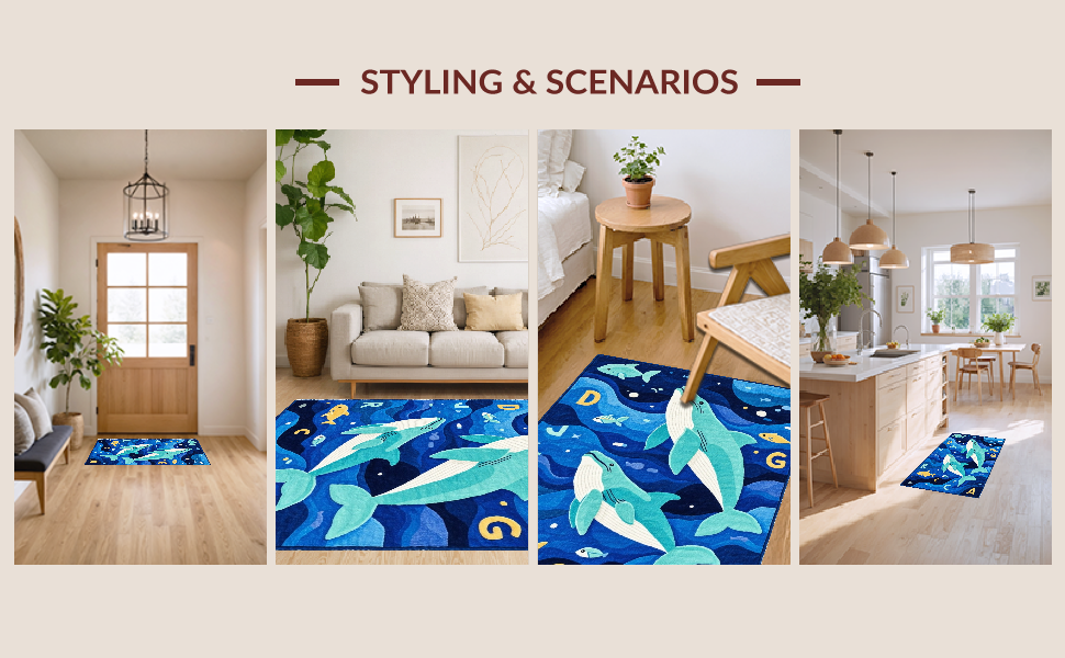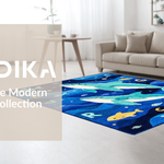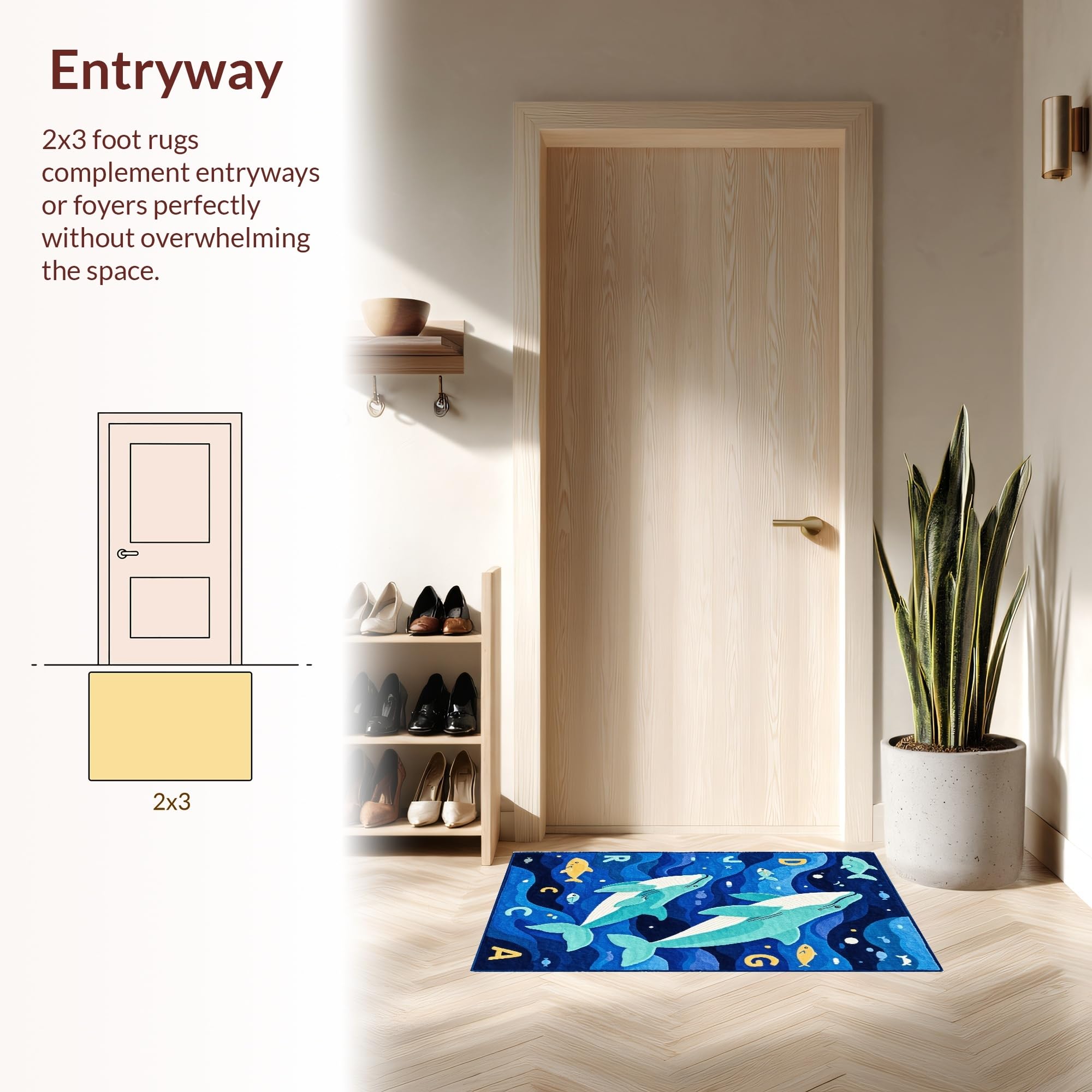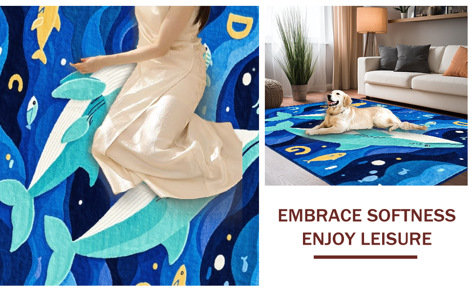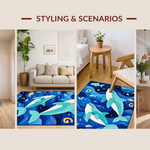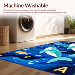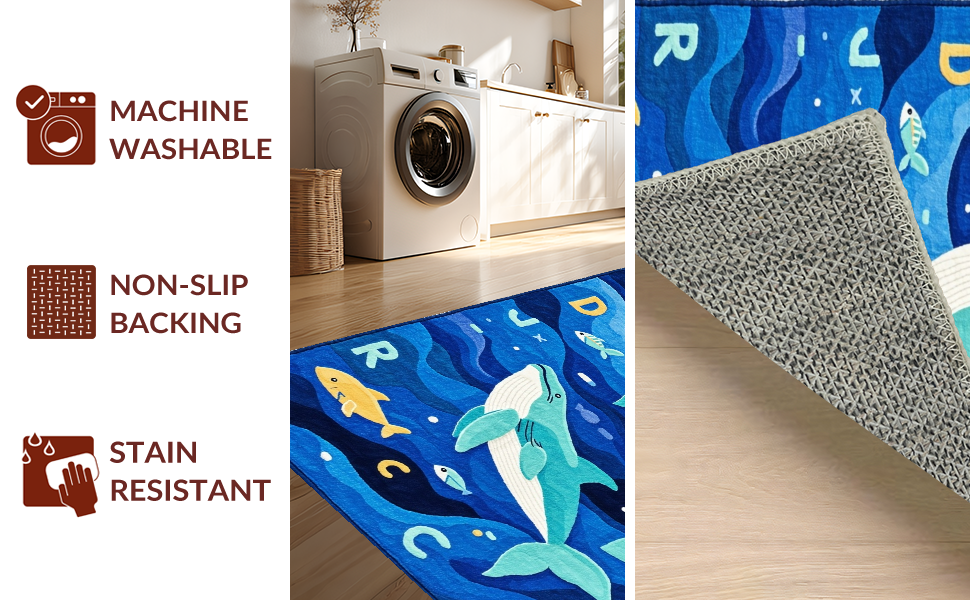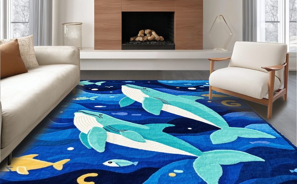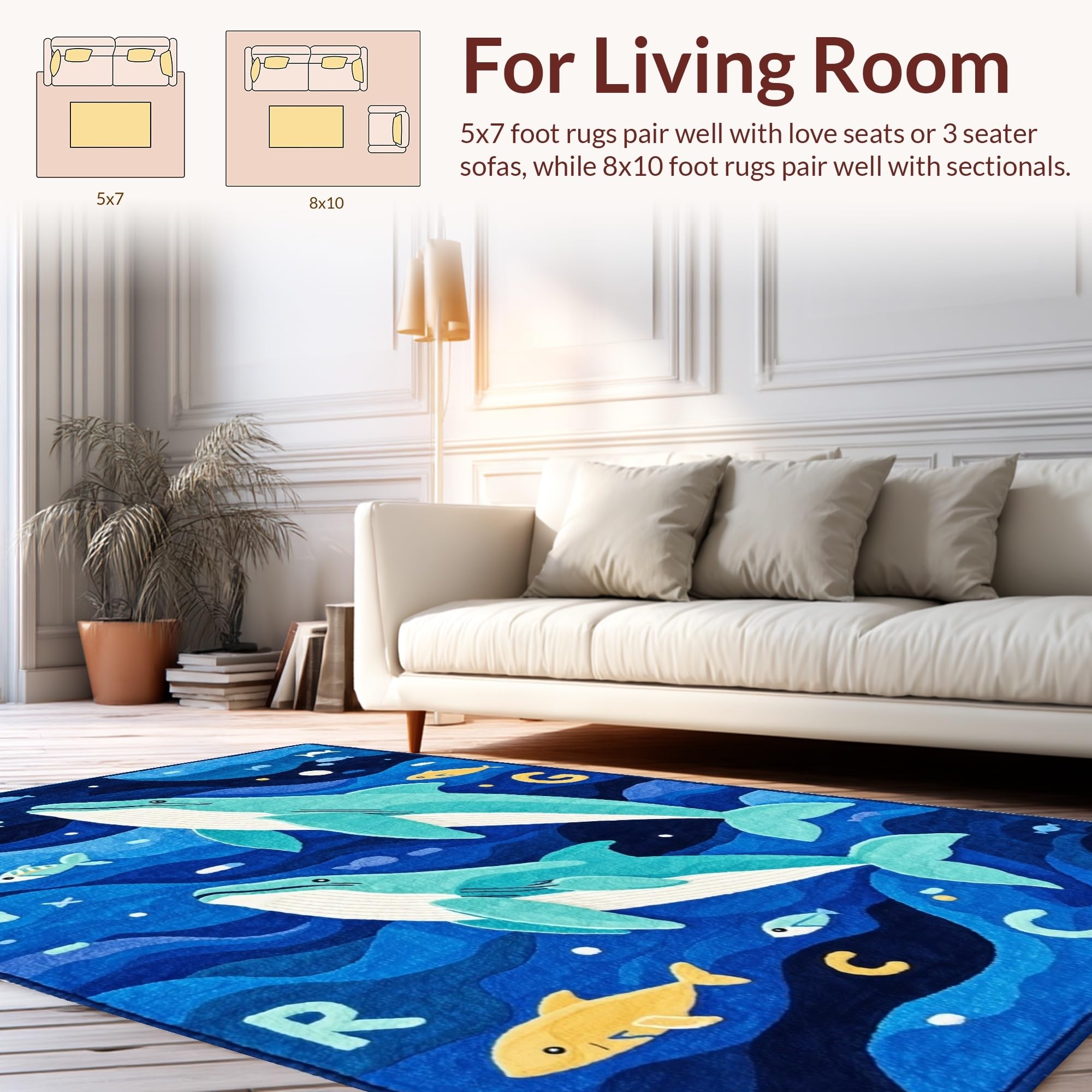 Ultra Soft Area Rug, Non Slip, Stain Resistant, Washable Area Rugs for Living Room, Bedroom, Bright Teal Coastal Inspired Print(Blue) Overview: