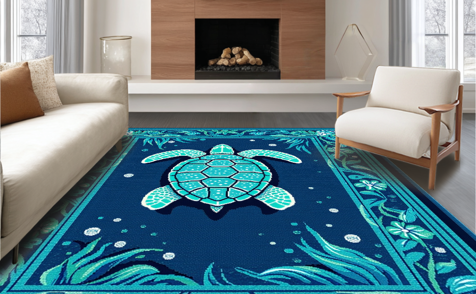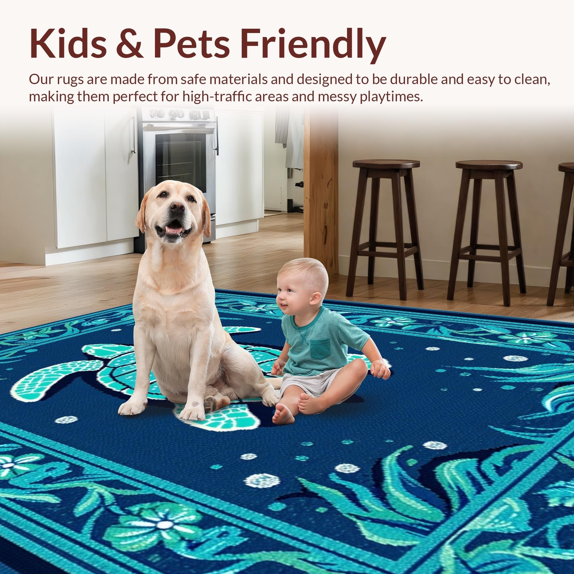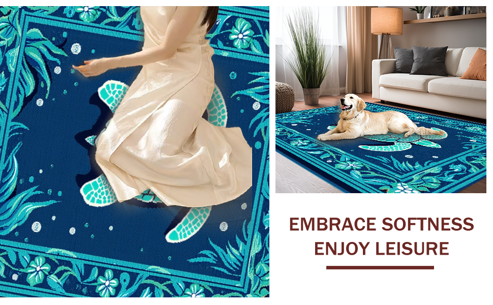 Ultra Soft Area Rug, Non Slip, Stain Resistant, Washable Area Rugs for Living Room, Bedroom, Bright Tropical Sea Element Style(Blue) Overview: