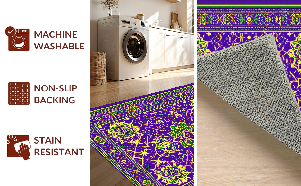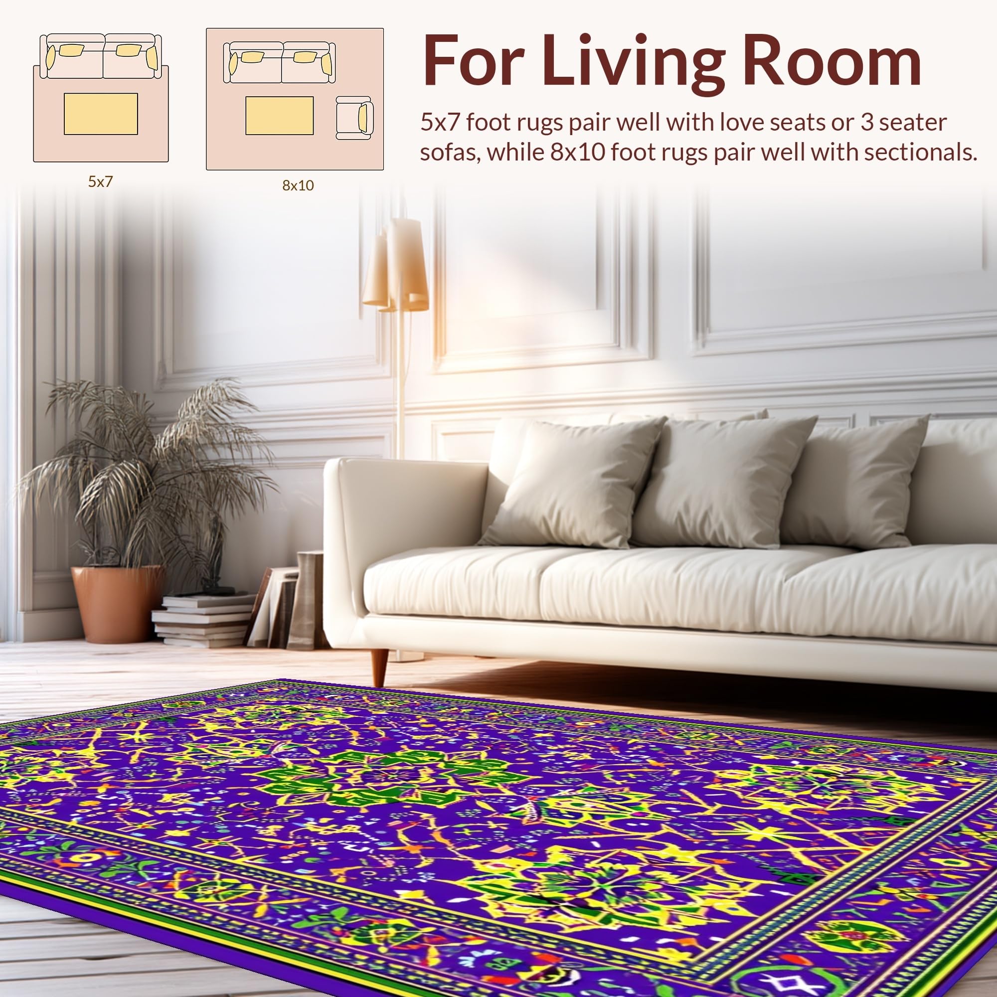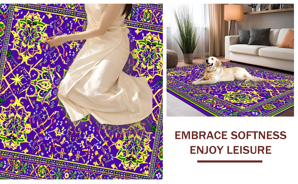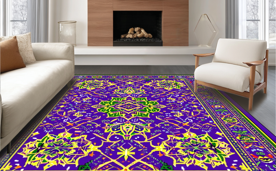 Ultra Soft Area Rug, Non Slip, Stain Resistant, Washable Area Rugs for Living Room, Bedroom, Bright Tropical Tiled Style(Purple) Overview: