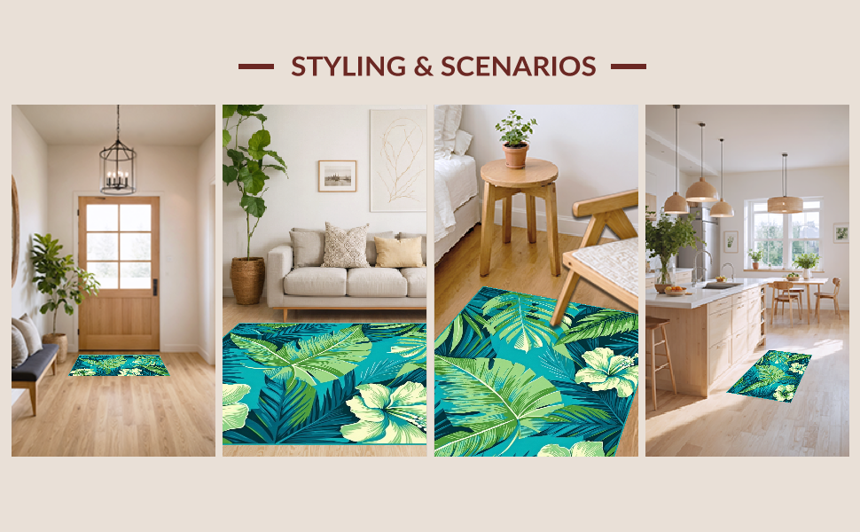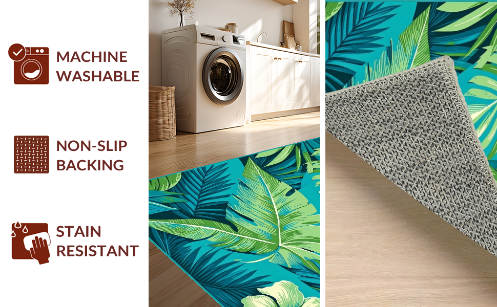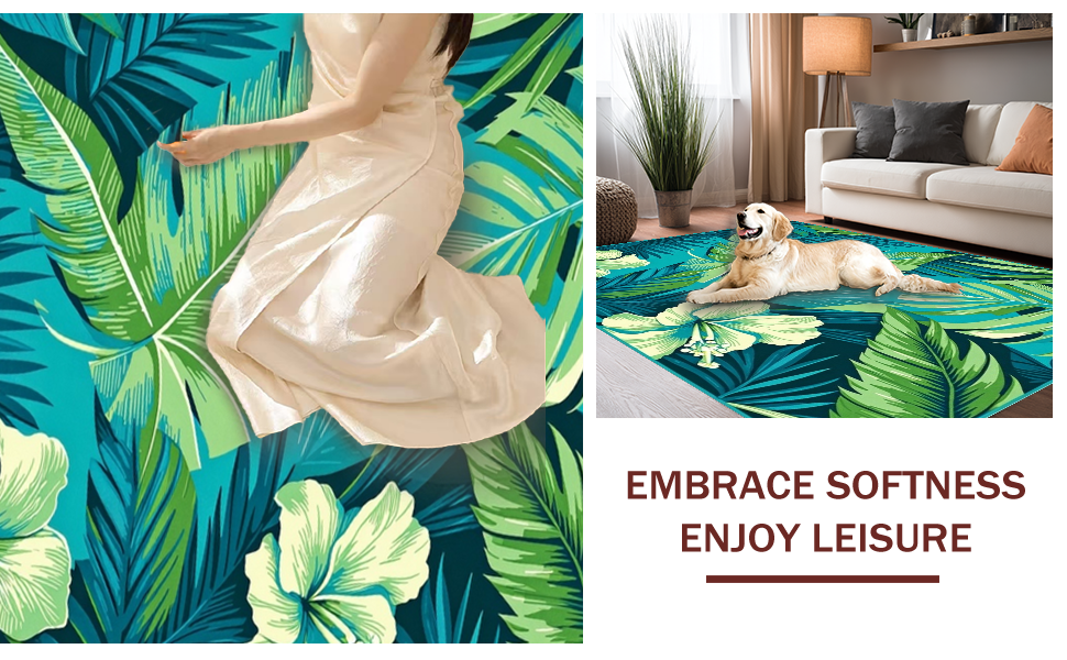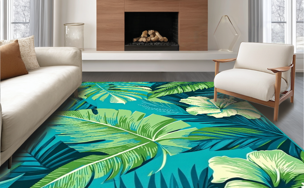 Ultra Soft Area Rug, Non Slip, Stain Resistant, Washable Area Rugs for Living Room, Bedroom, Bright Tropical Waves Pattern(Blue) Overview: