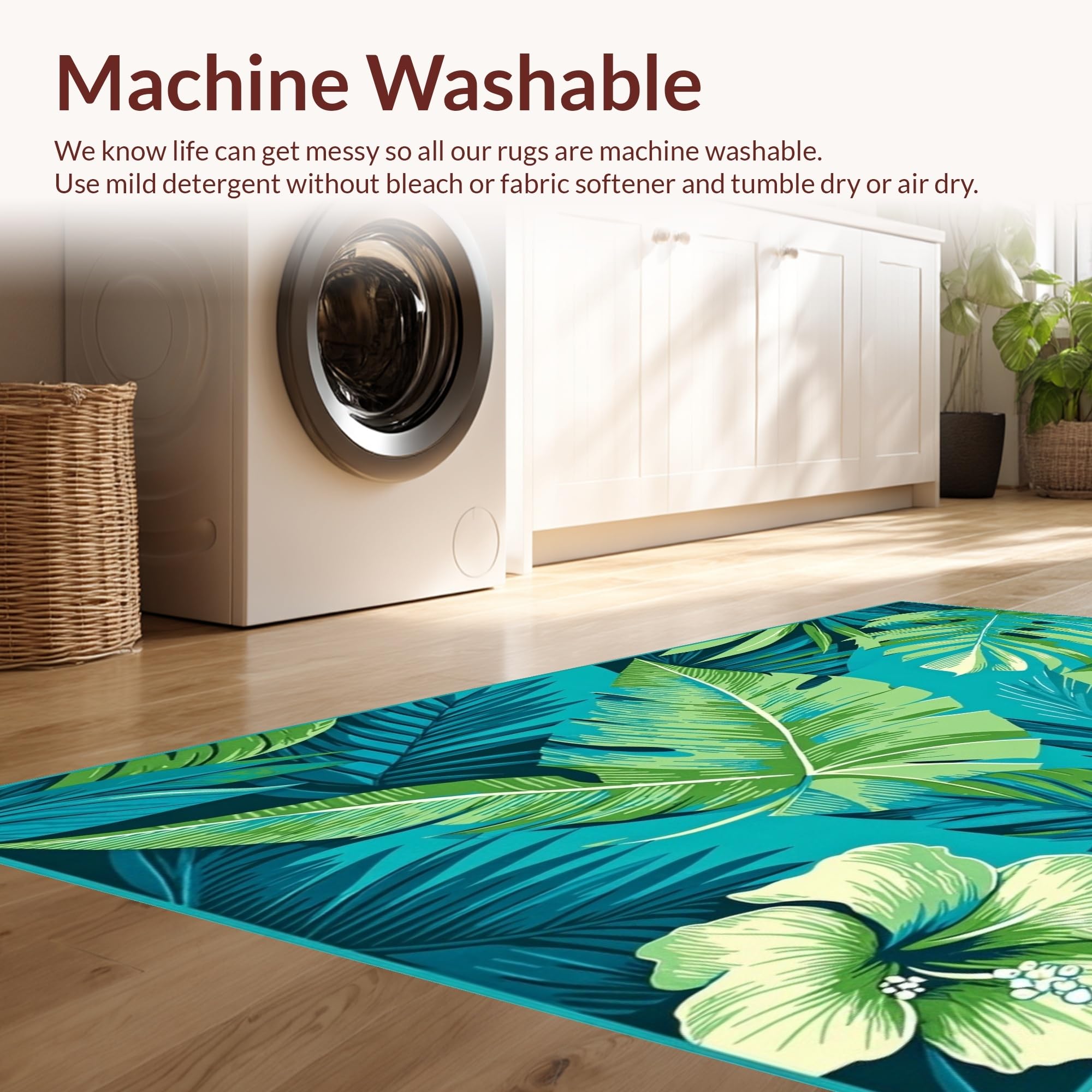 - Machine Washable: Our rugs can be easily thrown in the wash machine.