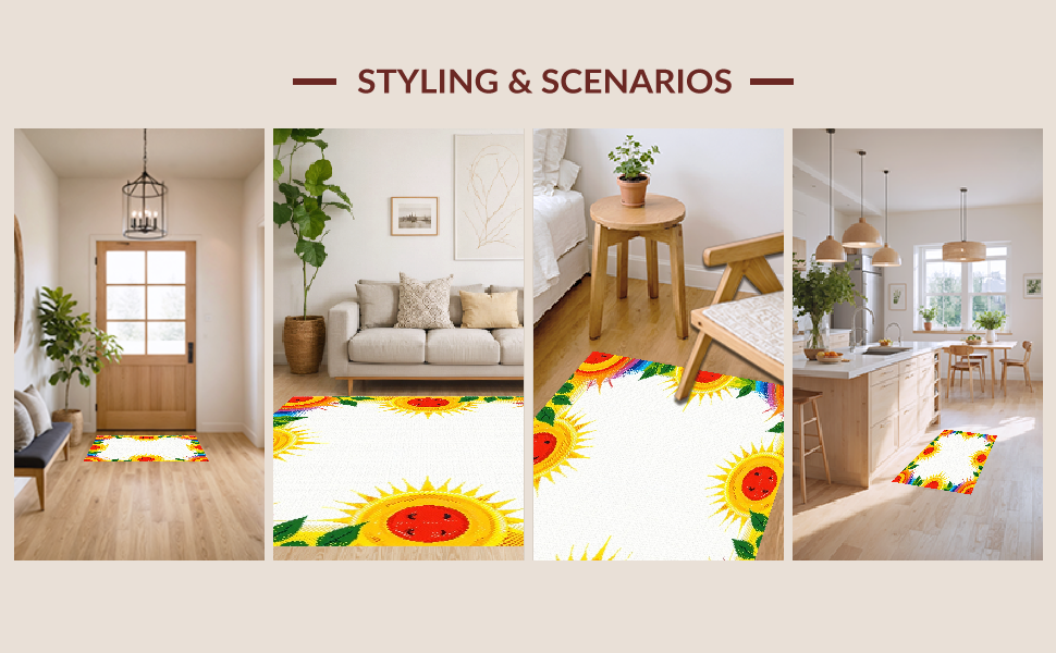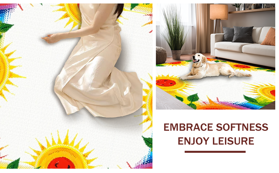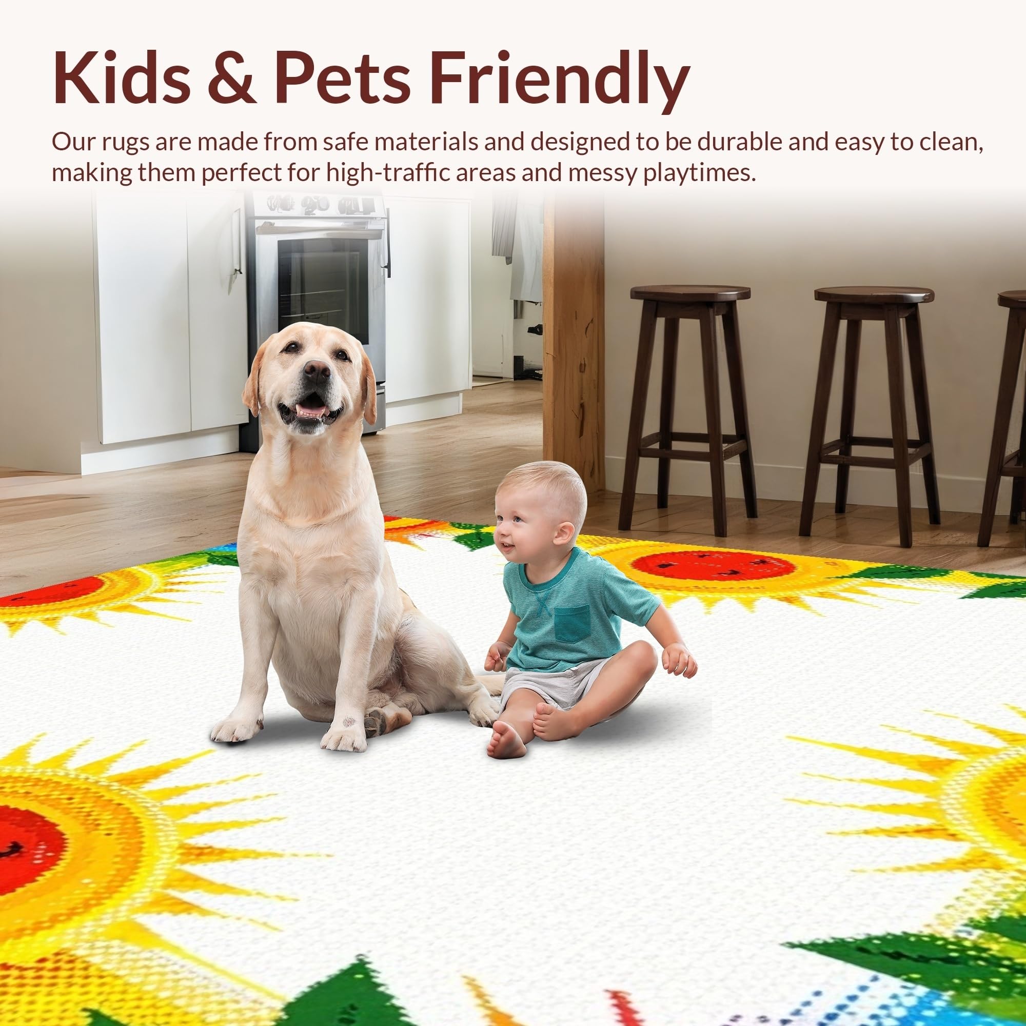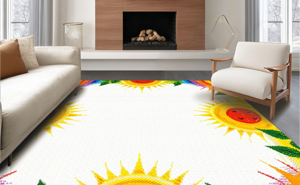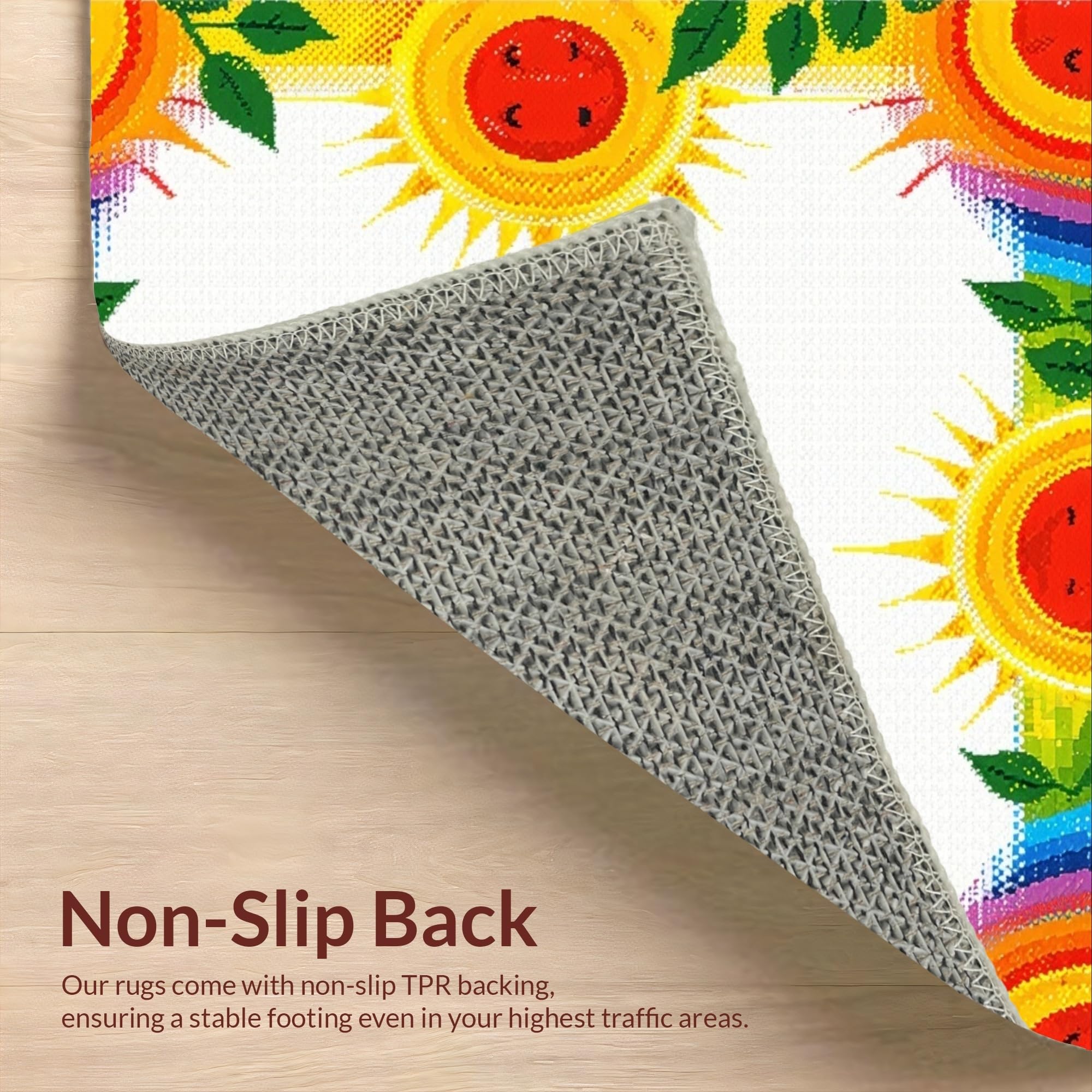 Ultra Soft Area Rug, Non Slip, Stain Resistant, Washable Area Rugs for Living Room, Bedroom, Bright Whimsical Half Circle Decor(Yellow) Overview: