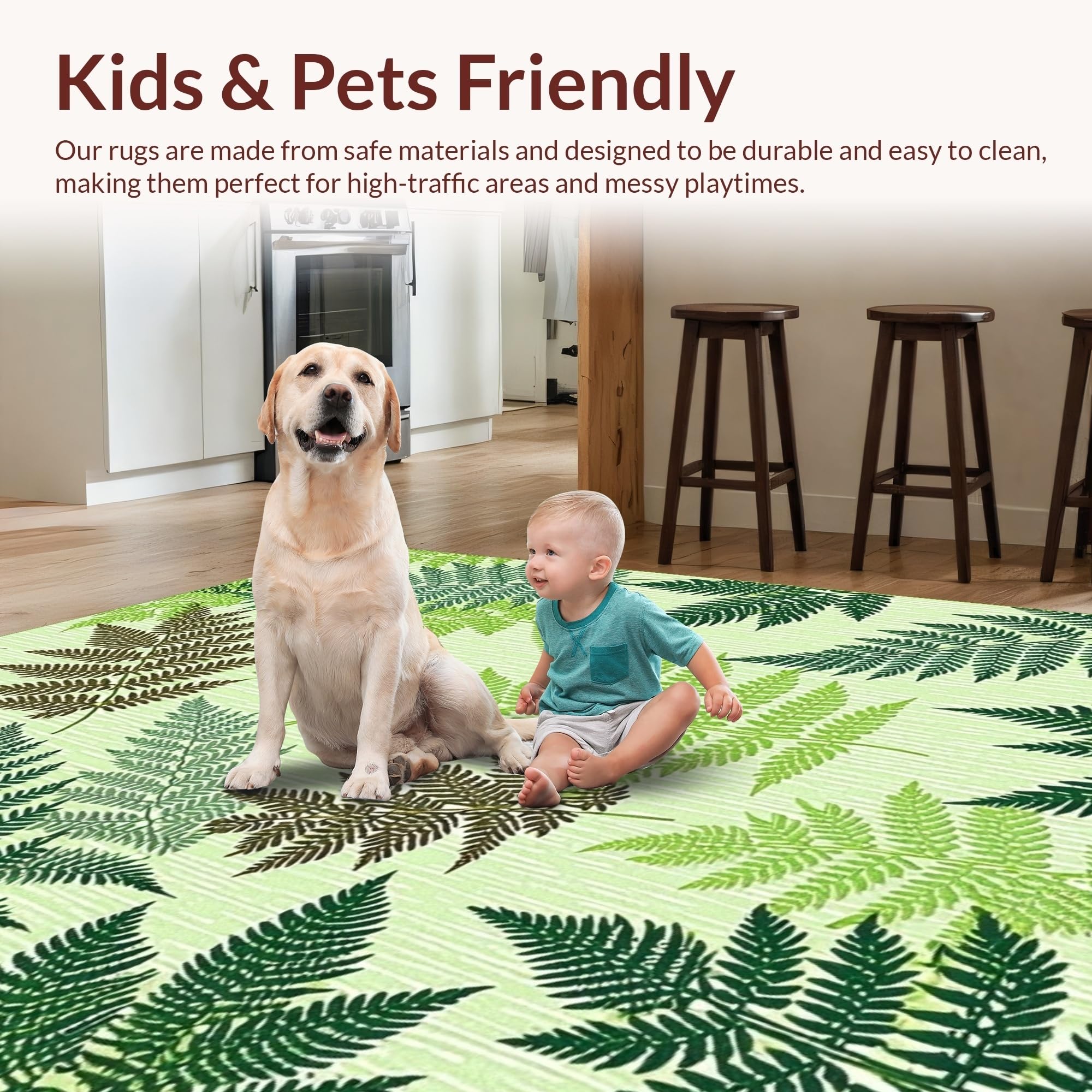 Ultra Soft Area Rug, Non Slip, Stain Resistant, Washable Area Rugs for Living Room, Bedroom, Bright Whimsical Tiled Arrangement(Green) Overview: