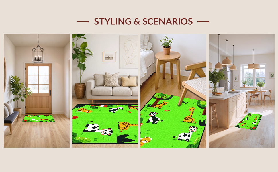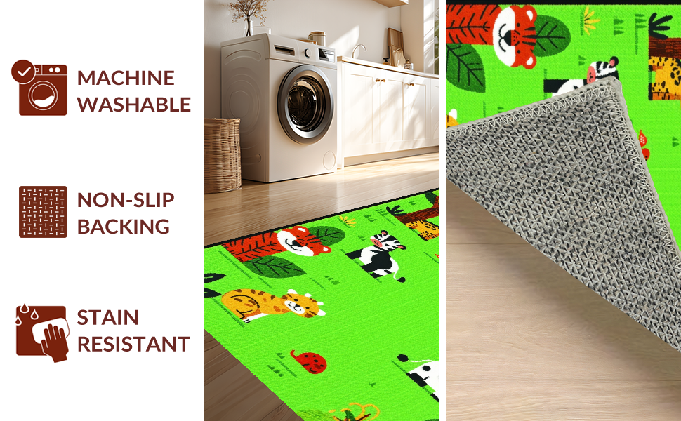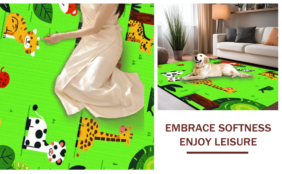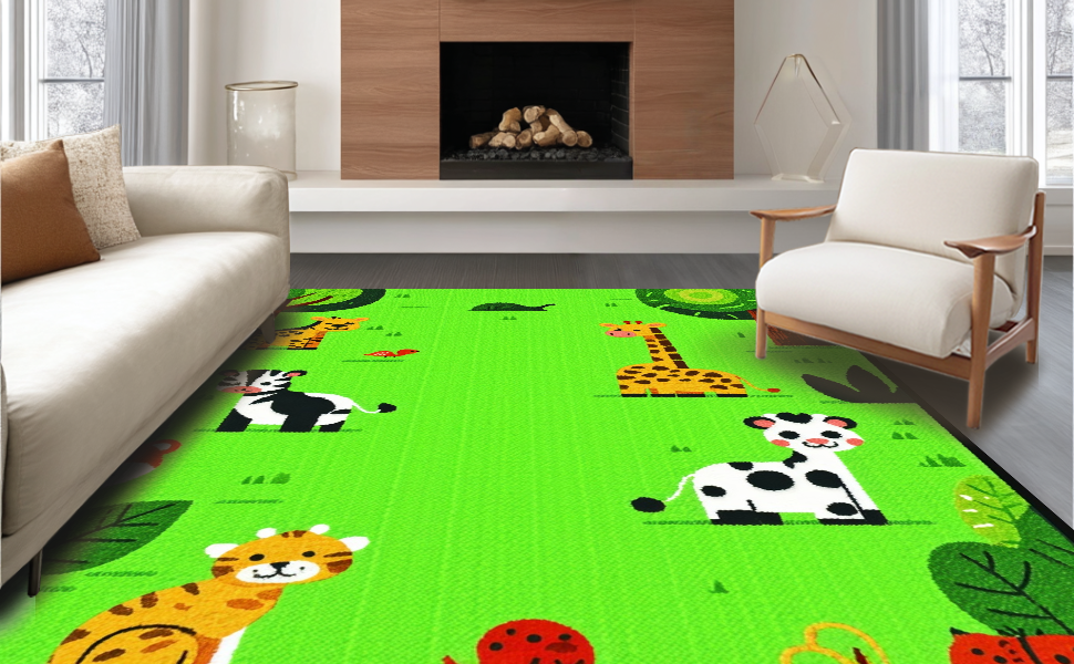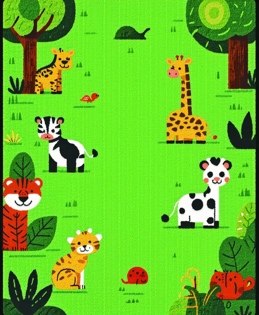 Ultra Soft Area Rug, Non Slip, Stain Resistant, Washable Area Rugs for Living Room, Bedroom, Bright Whimsical Wildlife Theme(Green) Overview: