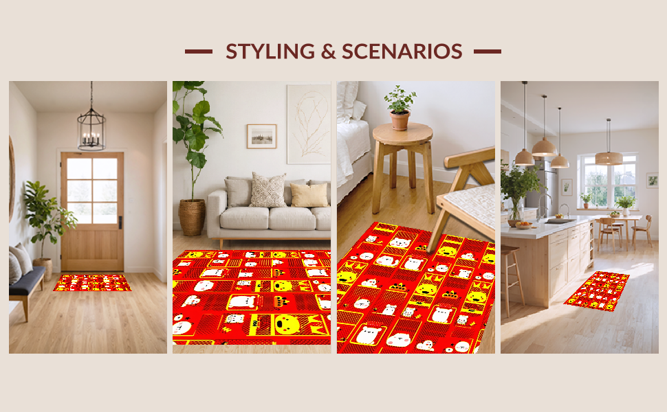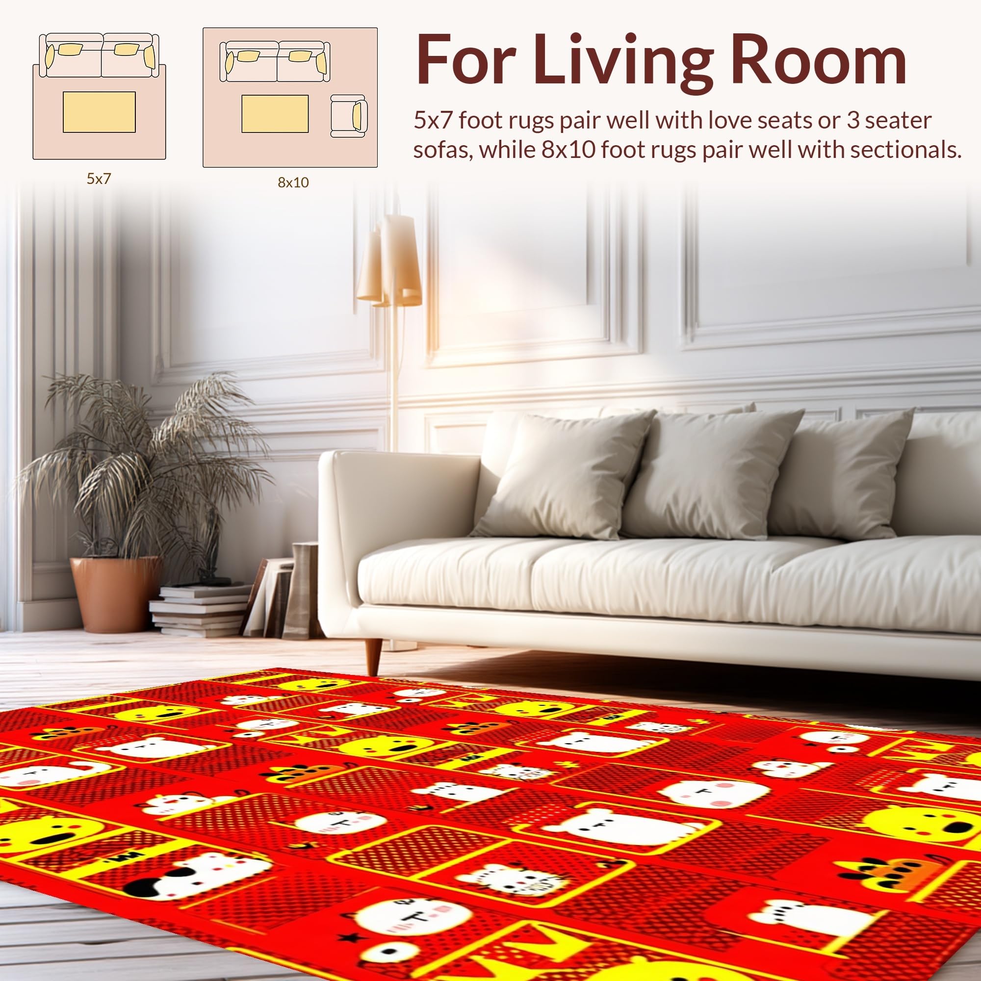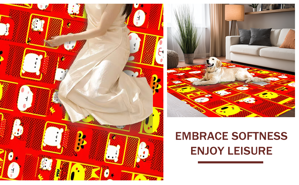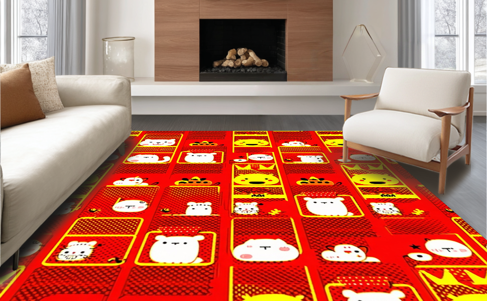 Ultra Soft Area Rug, Non Slip, Stain Resistant, Washable Area Rugs for Living Room, Bedroom, Brightly Colored Fun Shape Collage(Red) Overview: