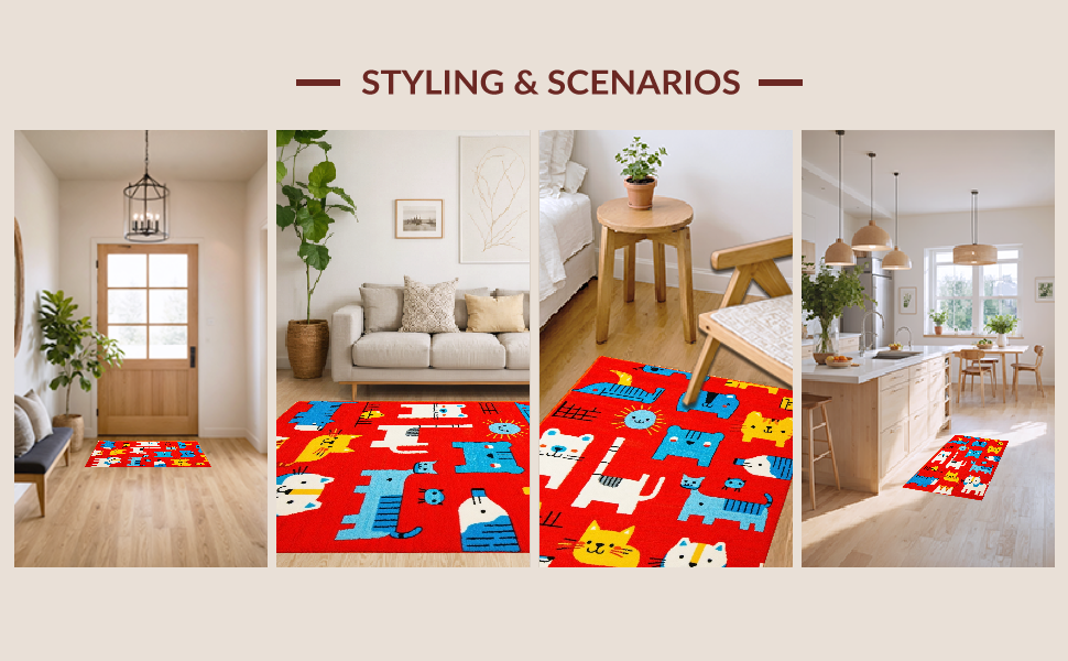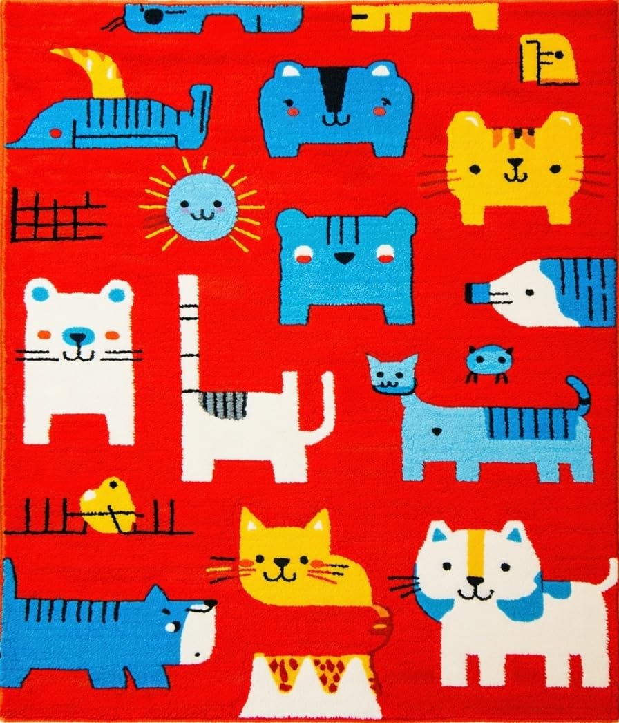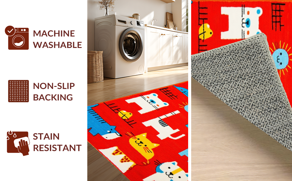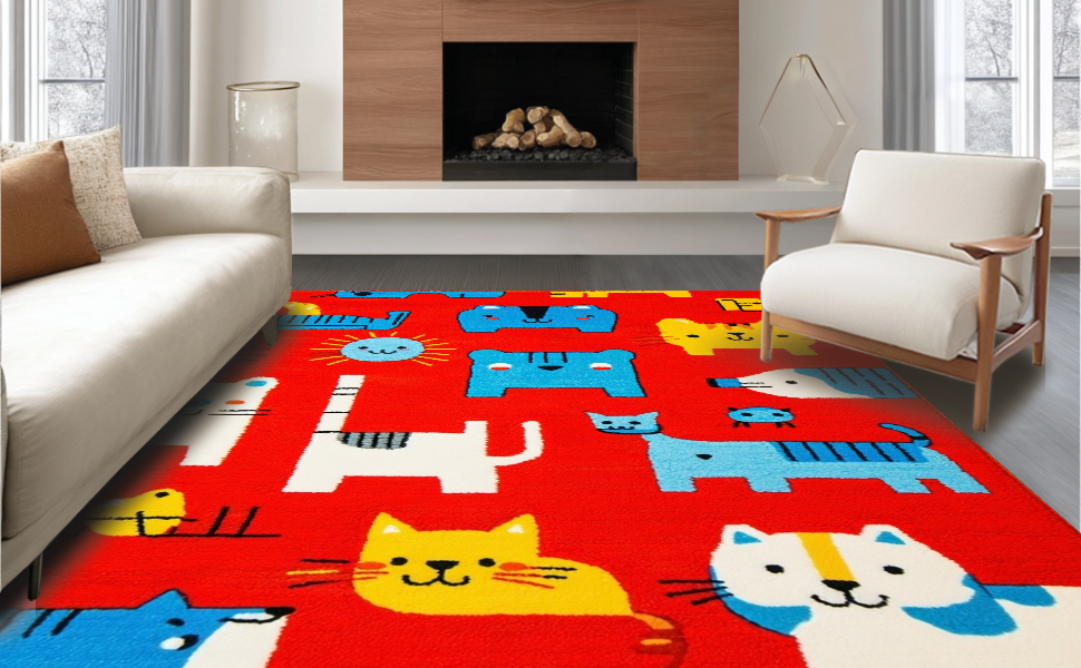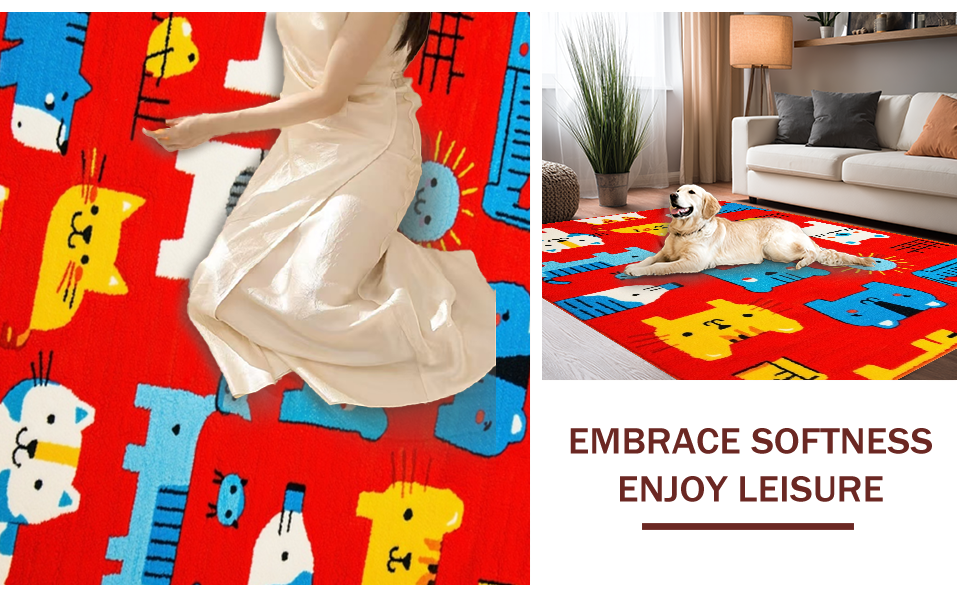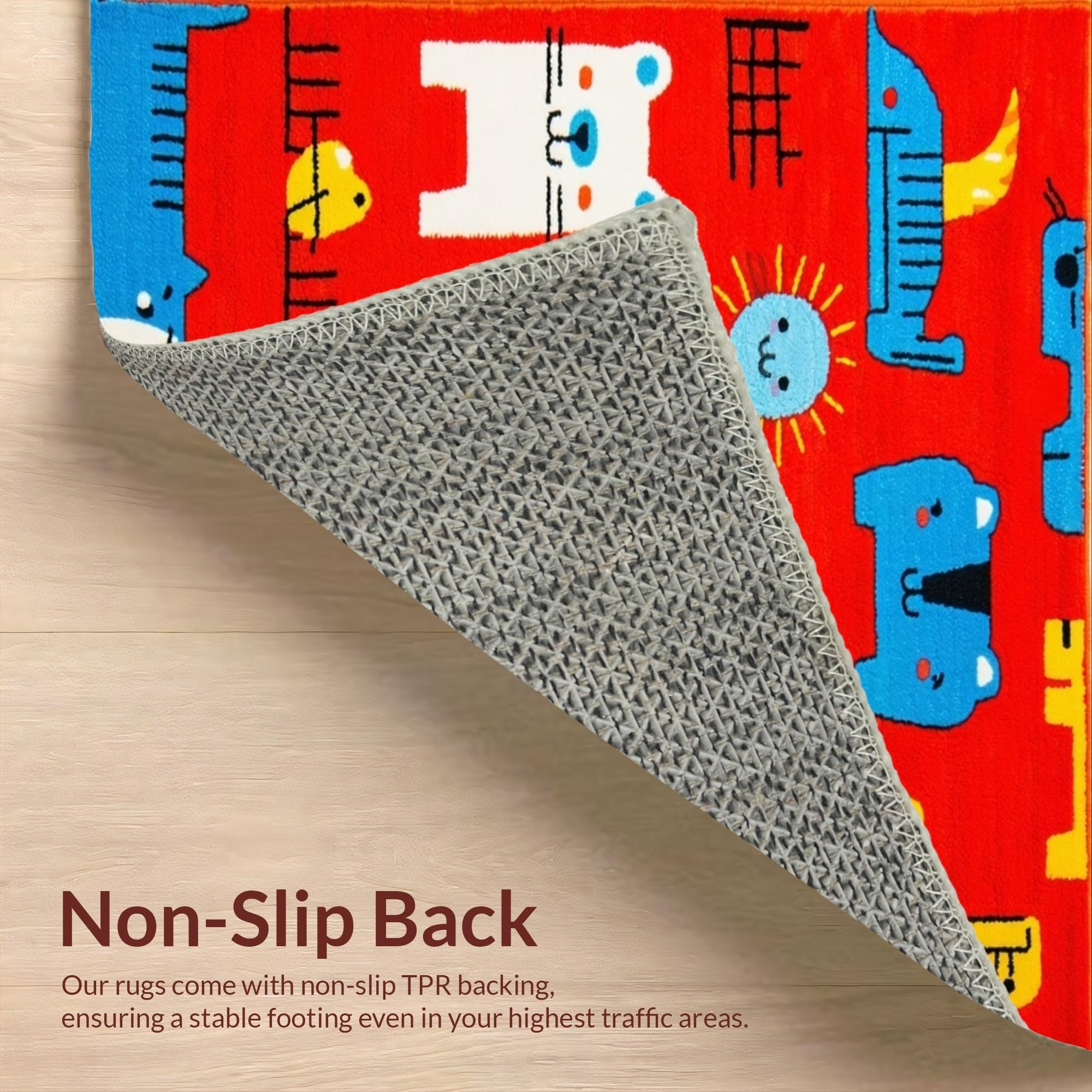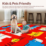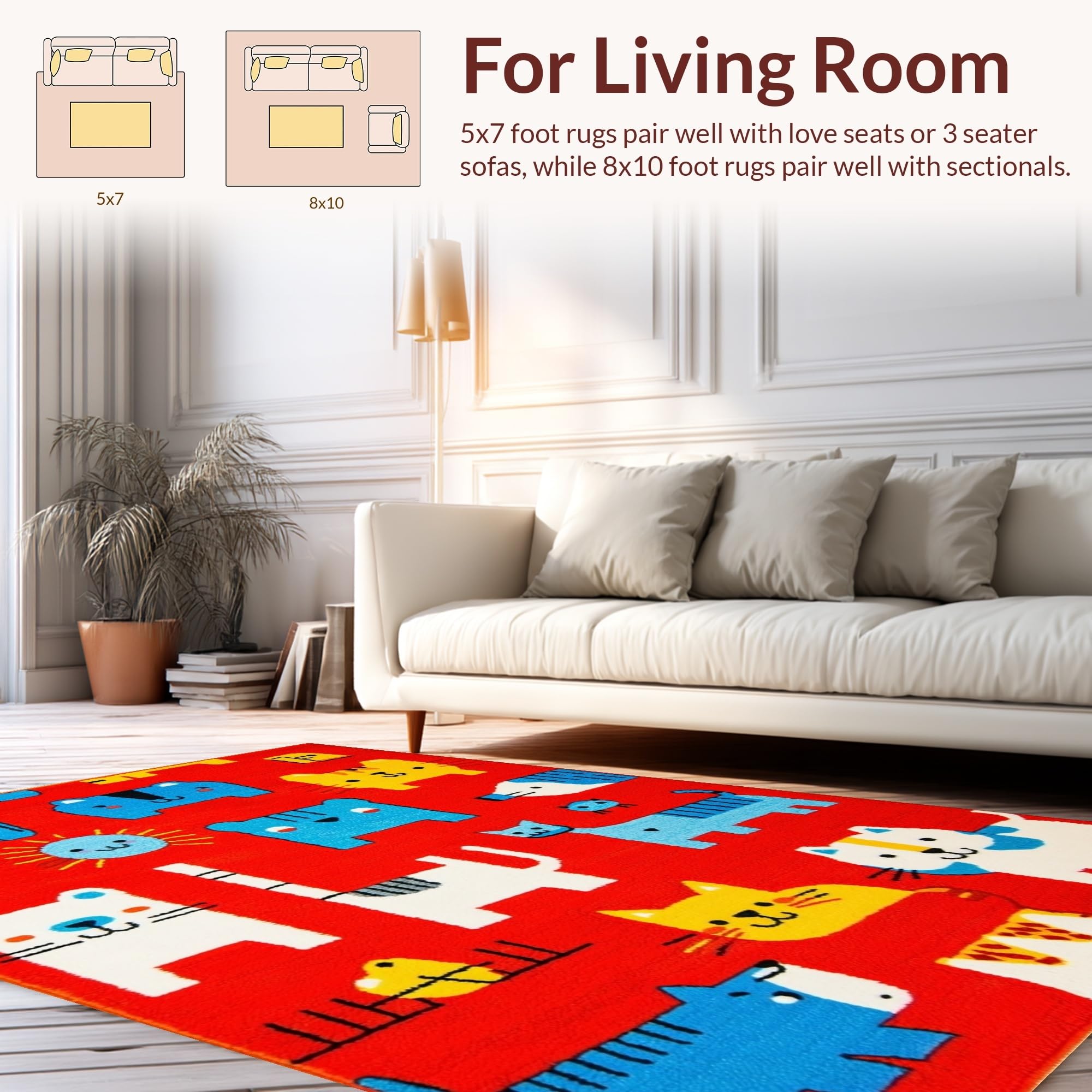 Ultra Soft Area Rug, Non Slip, Stain Resistant, Washable Area Rugs for Living Room, Bedroom, Brightly Colored Learning-Focused Art(Red) Overview: