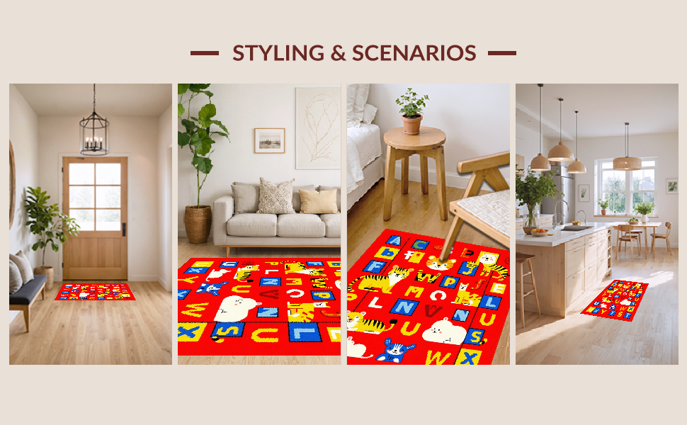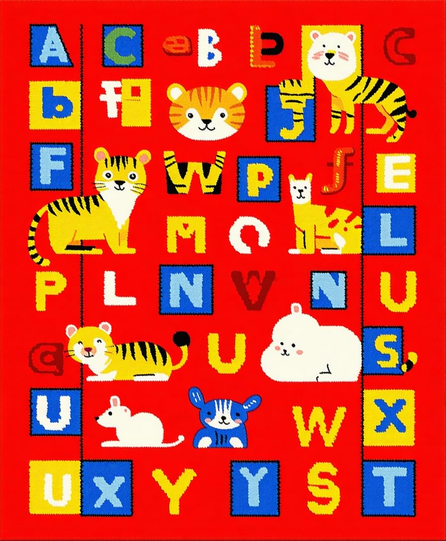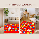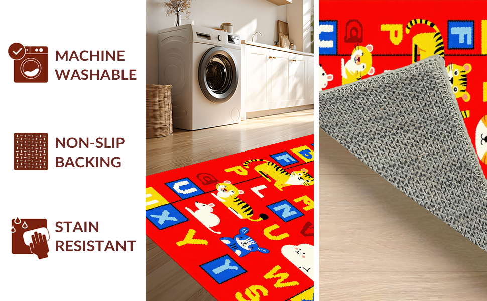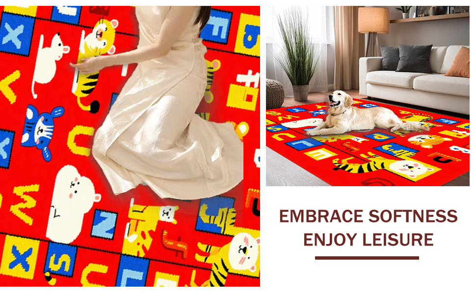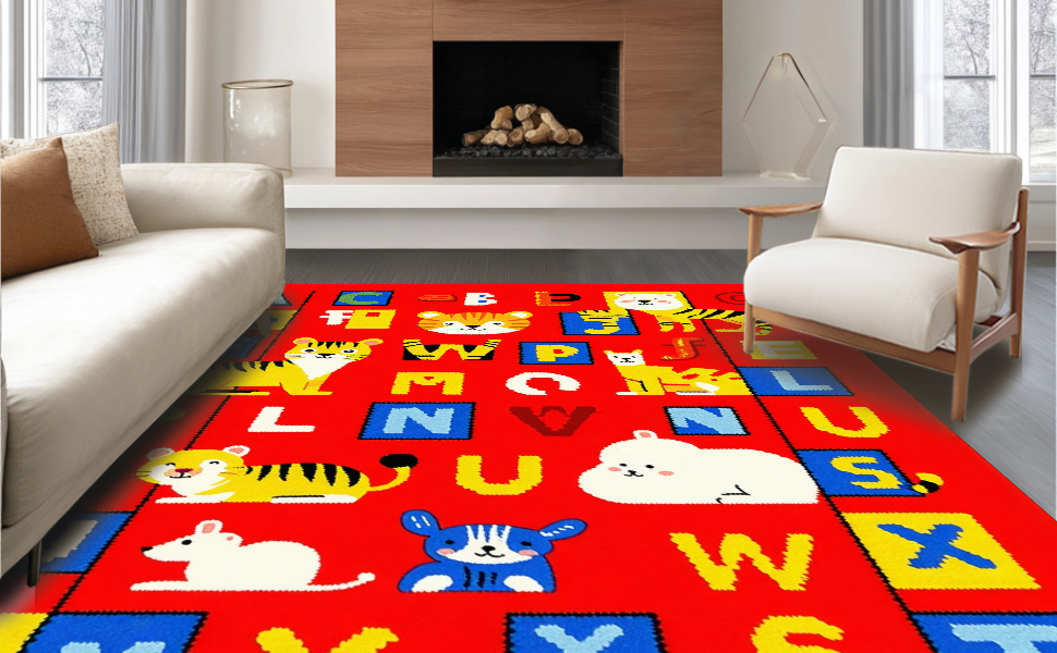 Ultra Soft Area Rug, Non Slip, Stain Resistant, Washable Area Rugs for Living Room, Bedroom, Brightly Illustrated Learning Landscape(Red) Overview: