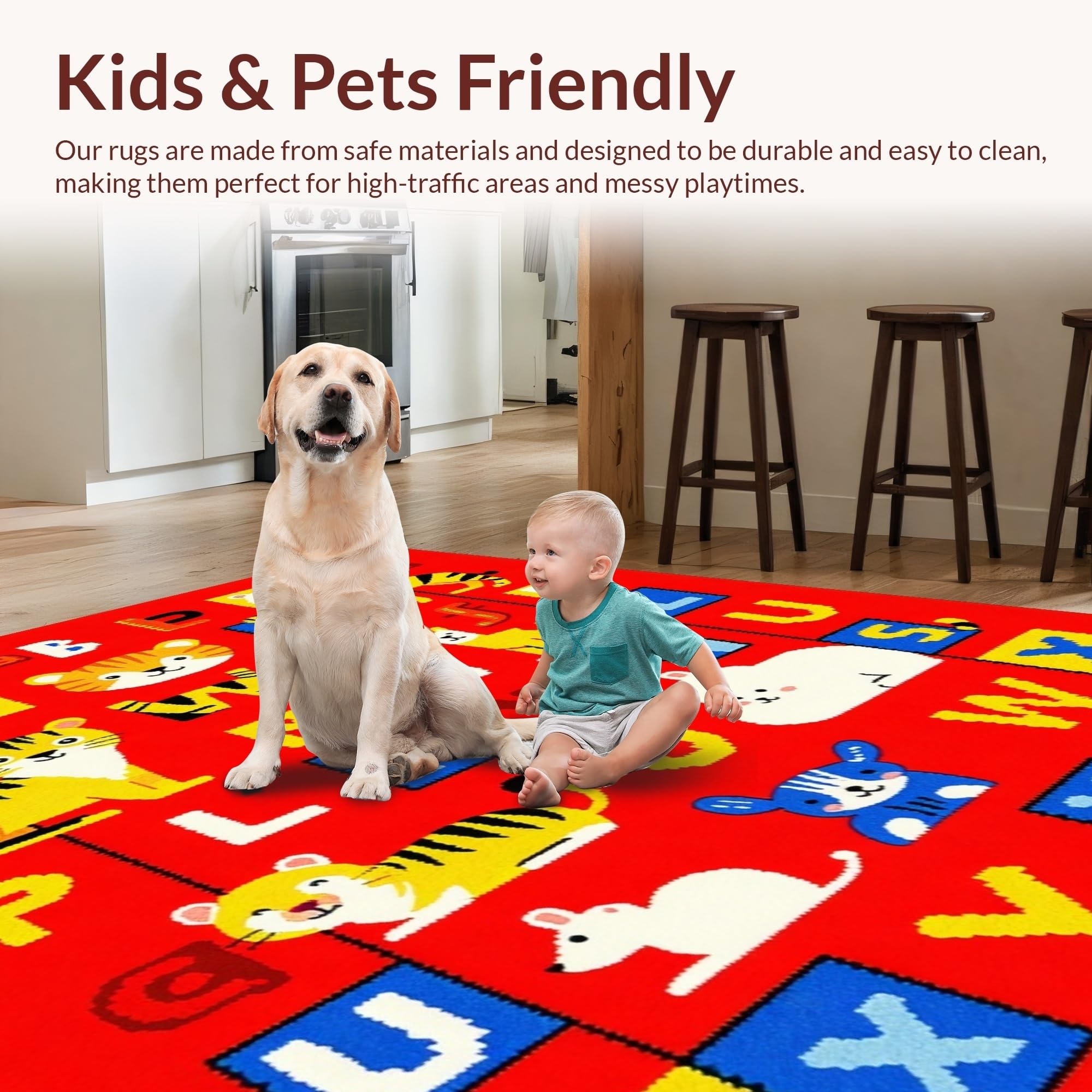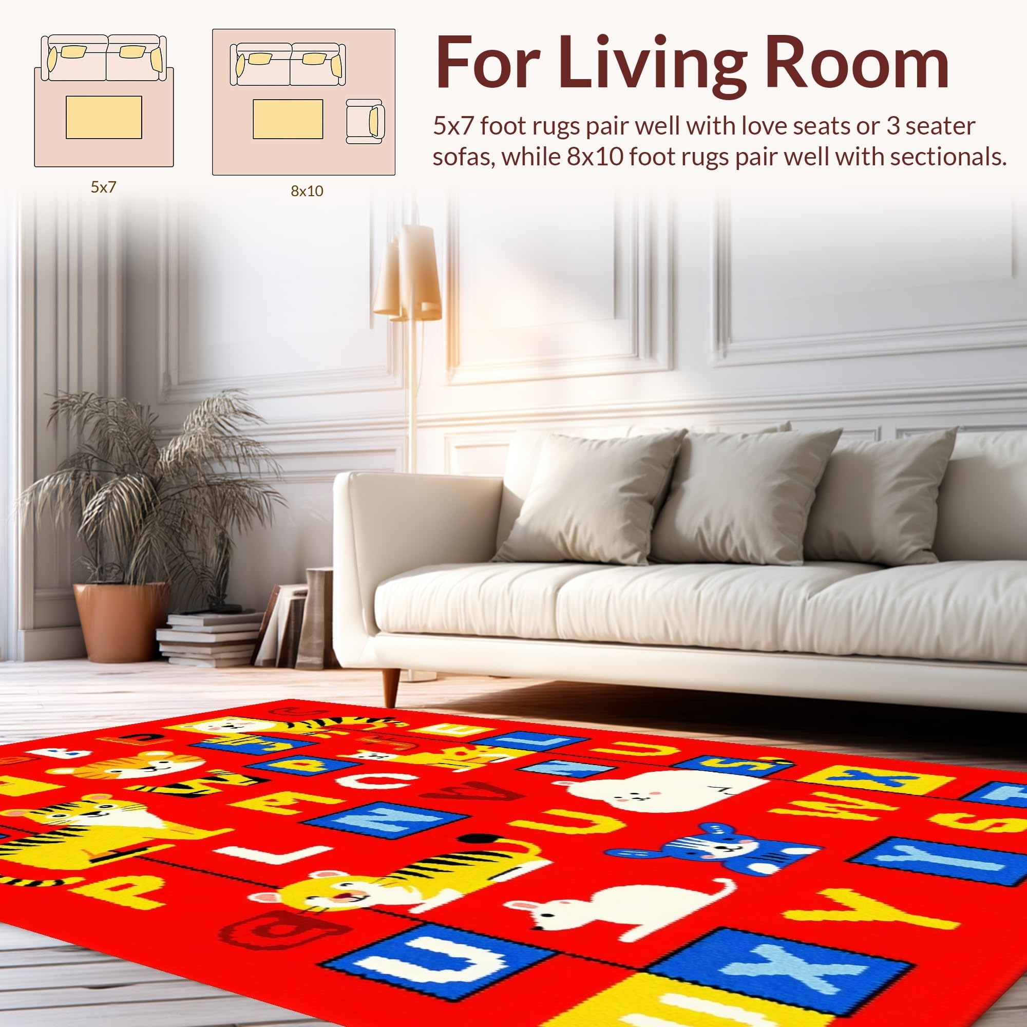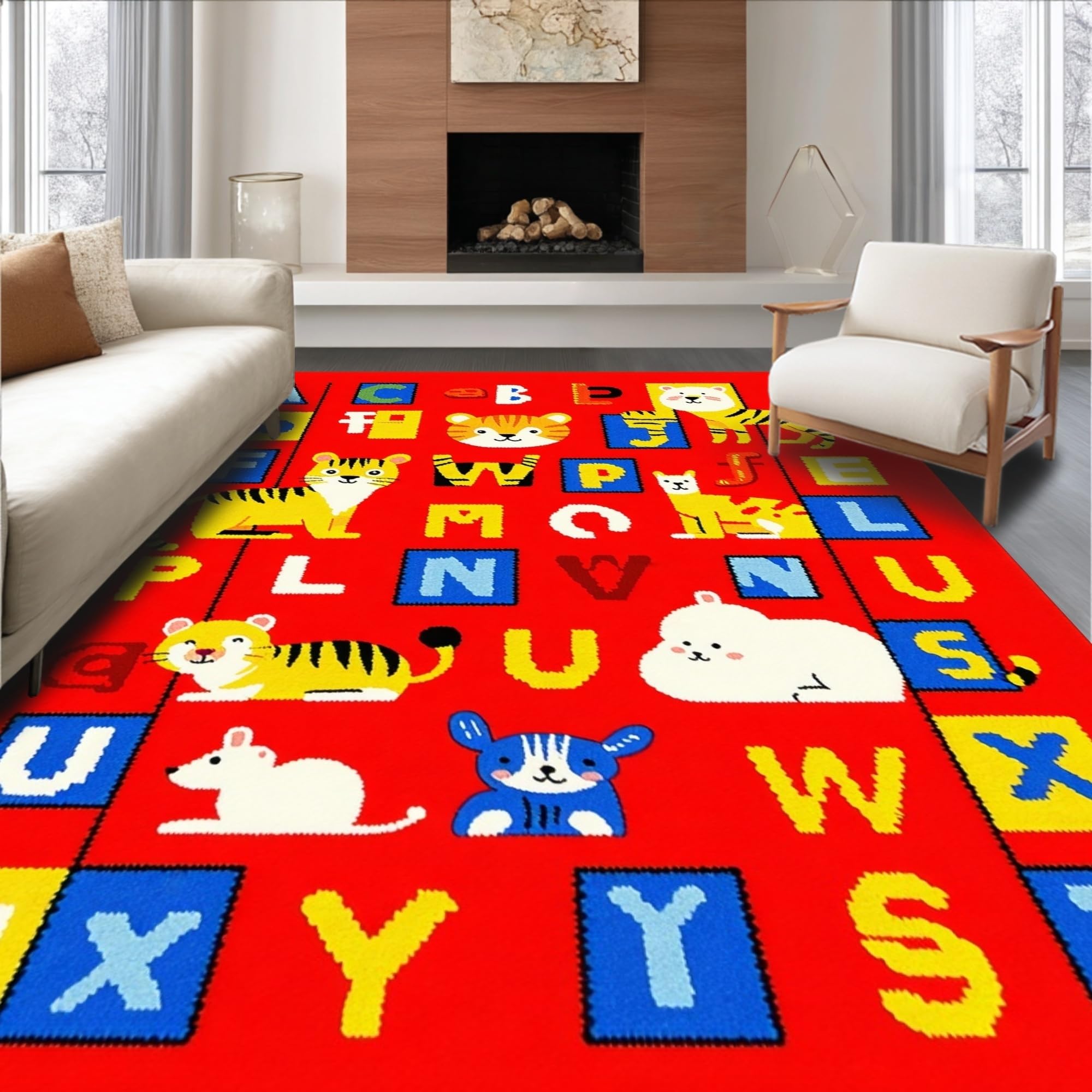 Ultra Soft Area Rug, Non Slip, Stain Resistant, Washable Area Rugs for Living Room, Bedroom, Brightly Illustrated Learning Landscape(Red) Overview: