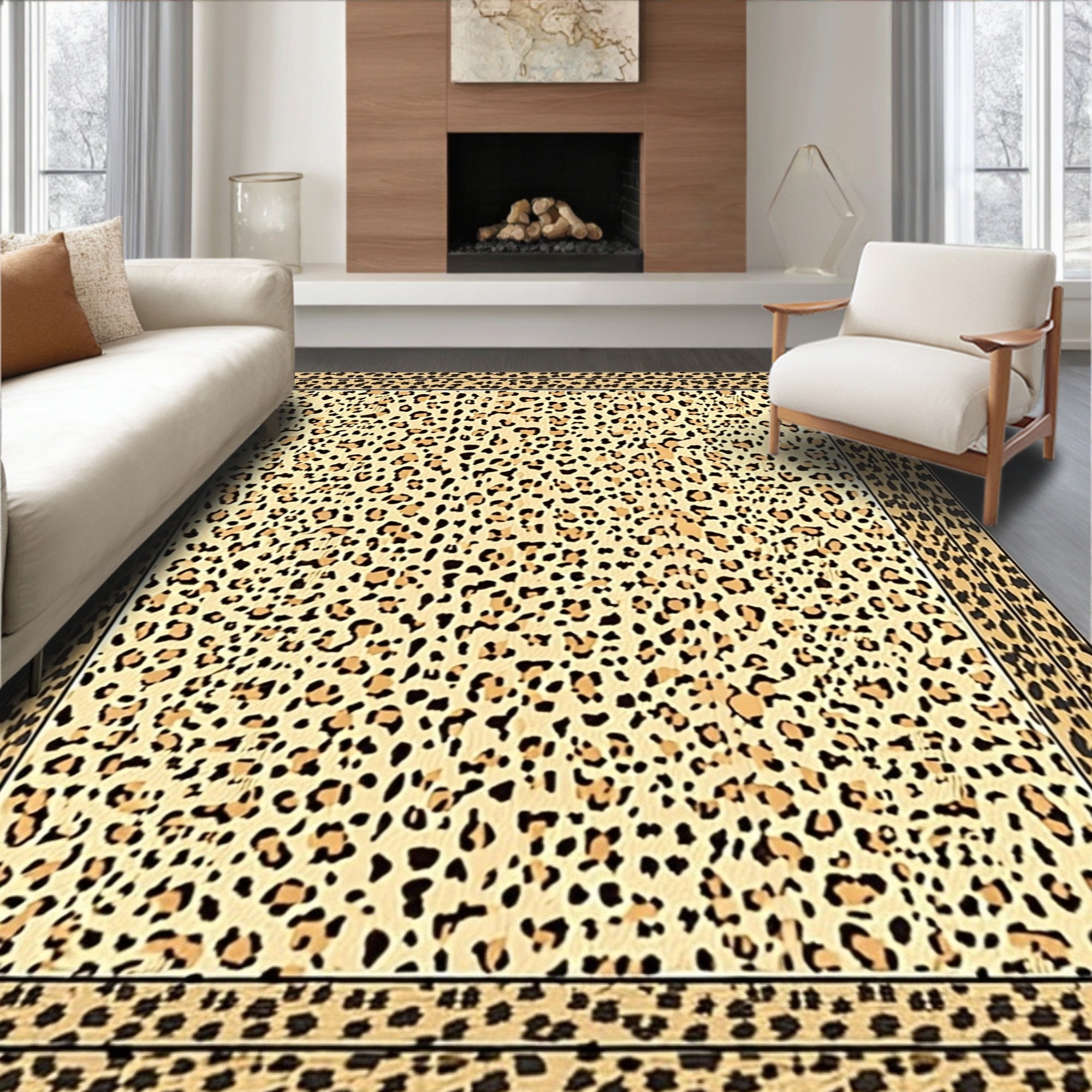 Ultra Soft Area Rug, Non Slip, Stain Resistant, Washable Area Rugs for Living Room, Bedroom, Brooks Beige Cheetah Spot(Beige) Overview: