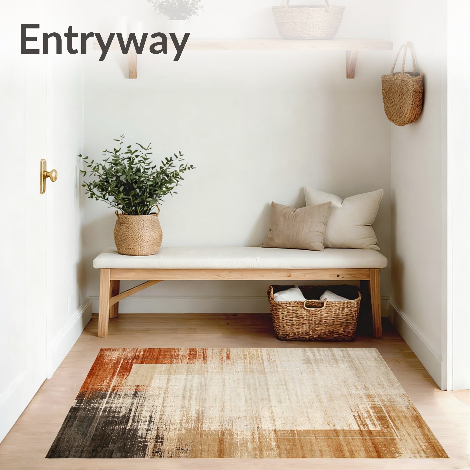 Ultra Soft Area Rug, Non Slip, Stain Resistant, Washable Area Rugs for Living Room, Bedroom, Brown Beige Distressed Kitchen Non Skid Runner(Beige) Overview: