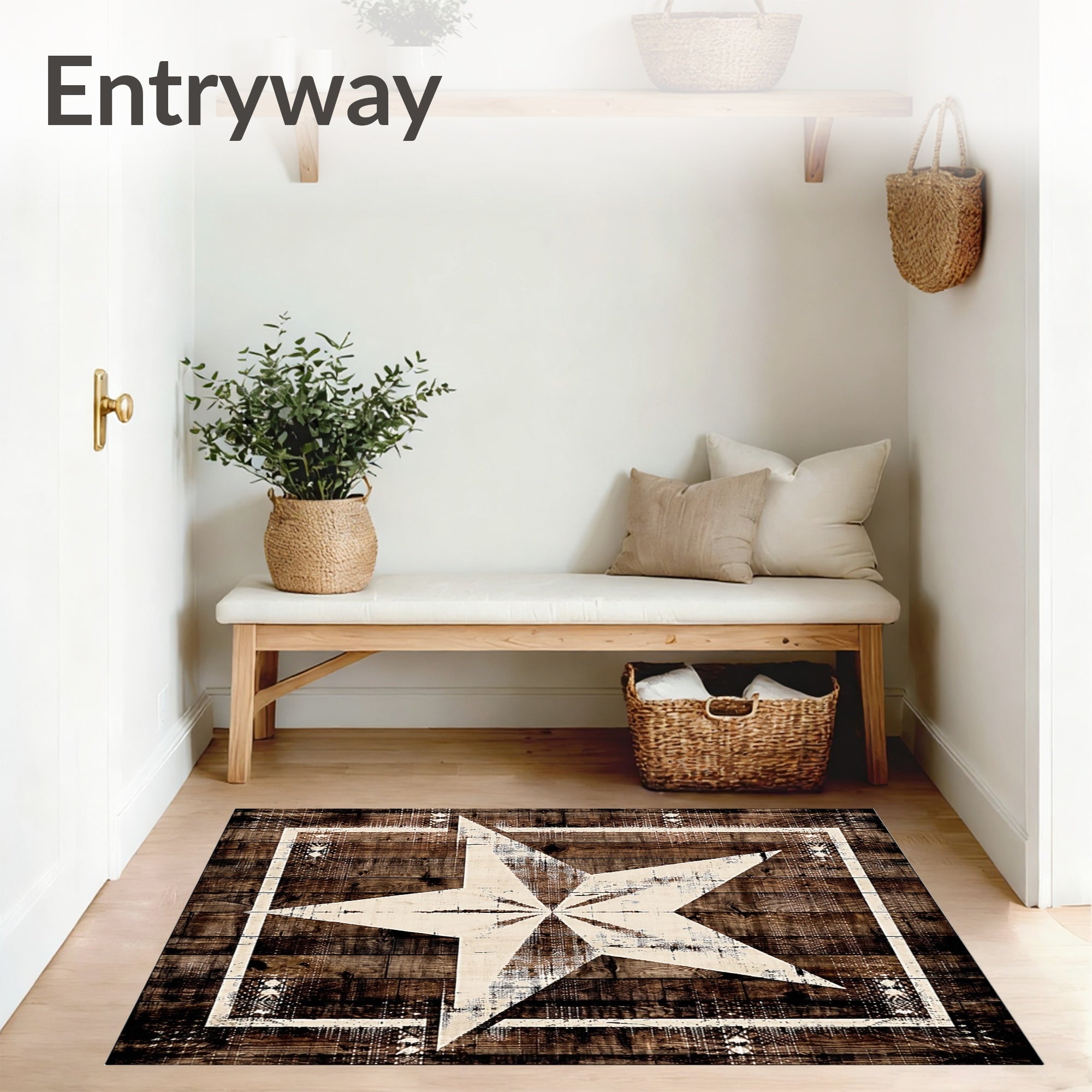 Flatwoven High Traffic Area Rug, Texas Entry Classic Rustic Welcome Floor, Non Slip, Stain Resistant, Washable Area Rugs for Living Room, Bedroom (Brown) Overview: