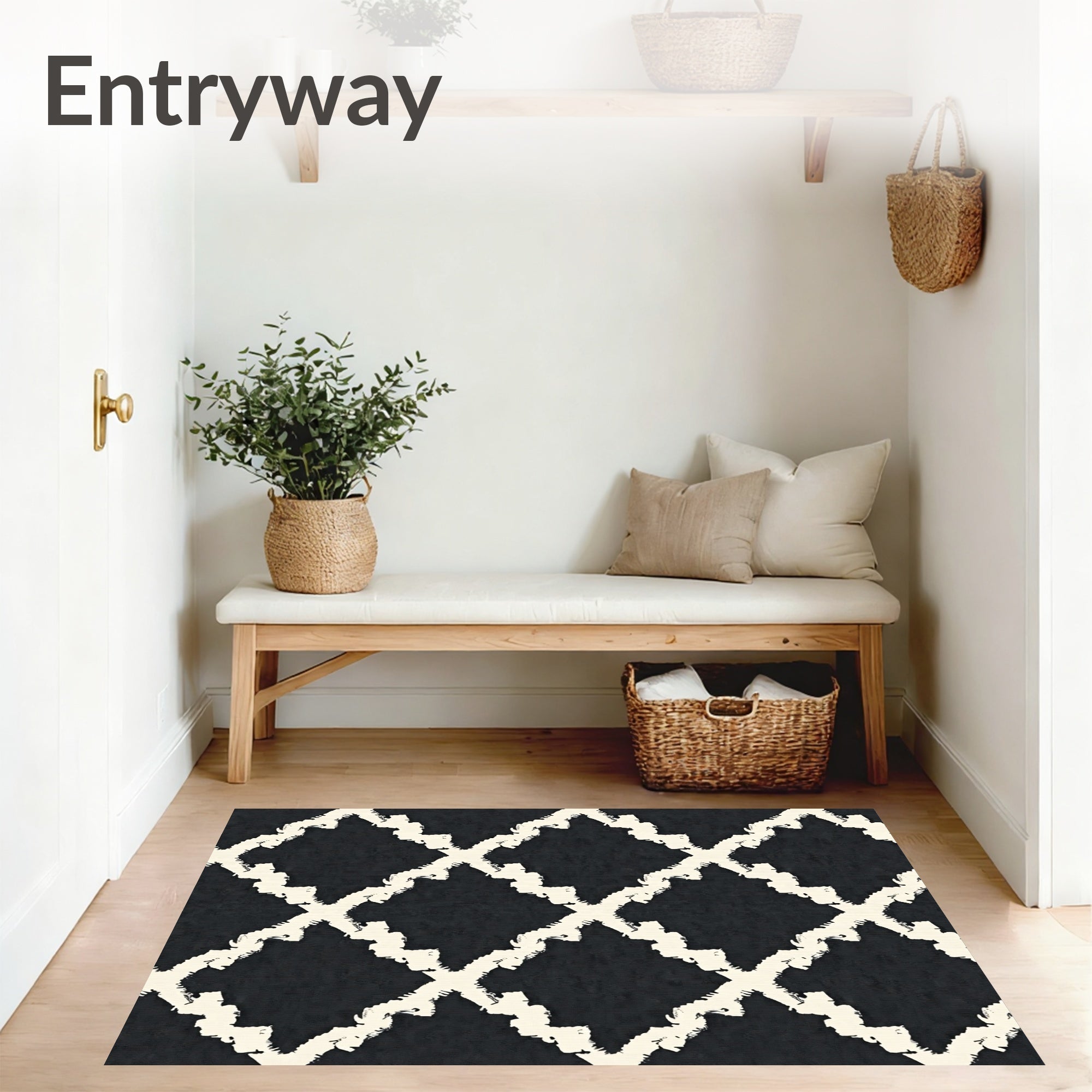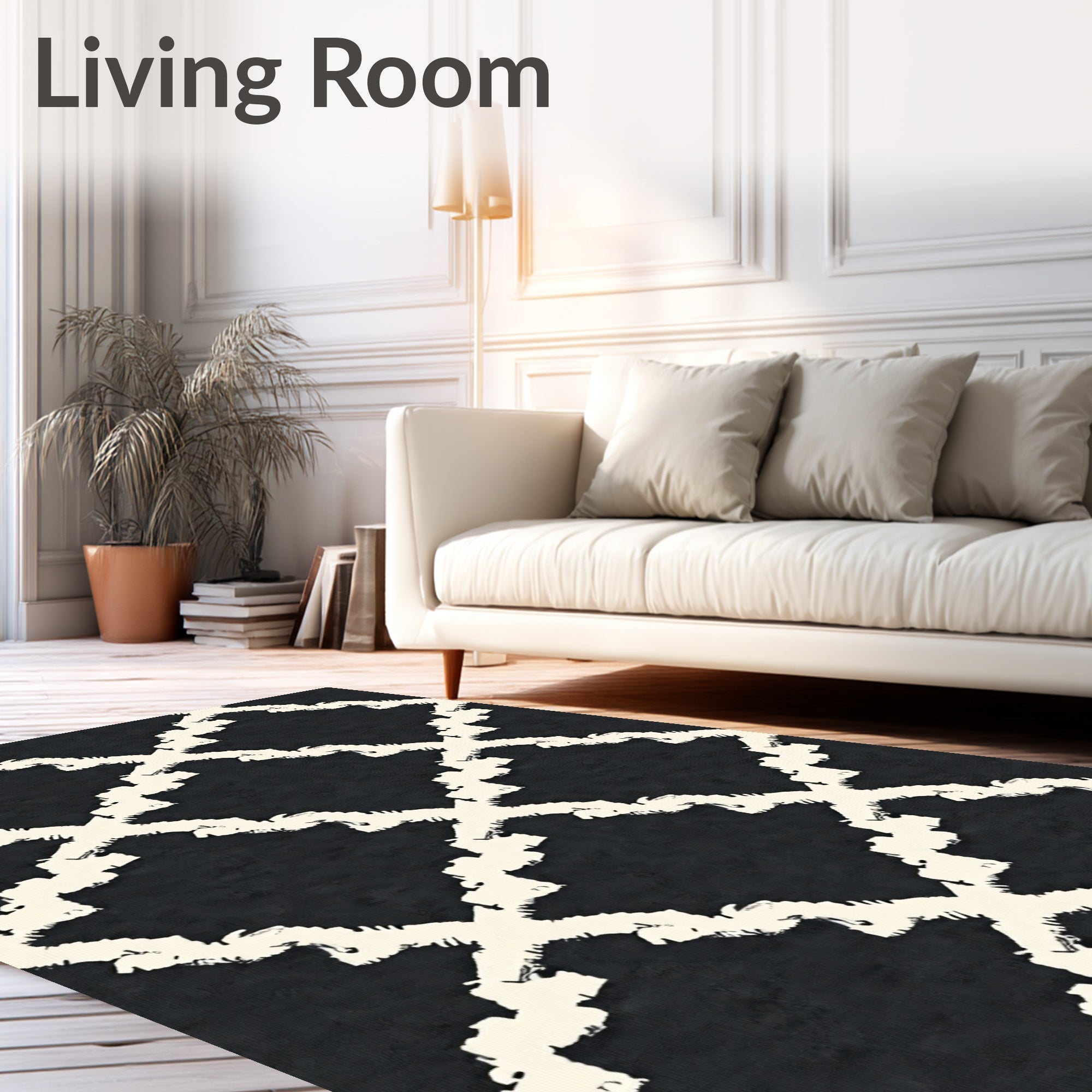 Ultra Soft Area Rug, Non Slip, Stain Resistant, Washable Area Rugs for Living Room, Bedroom, Brushstroke Artisan Trellis Luxurious Modern Transitional(Black) Overview: