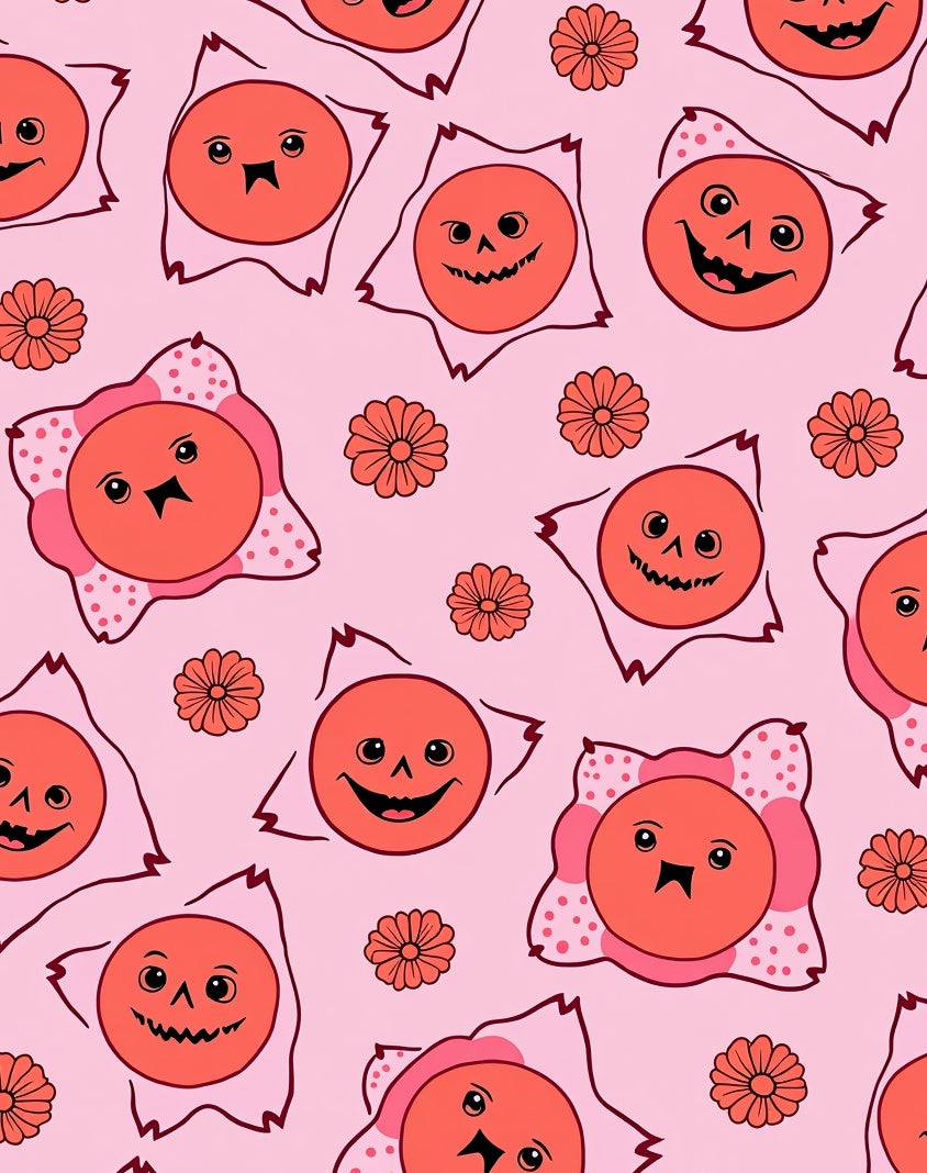 Buddies Pumpkin Patch Featuring Friendly Apparition Illustrations(Pink)