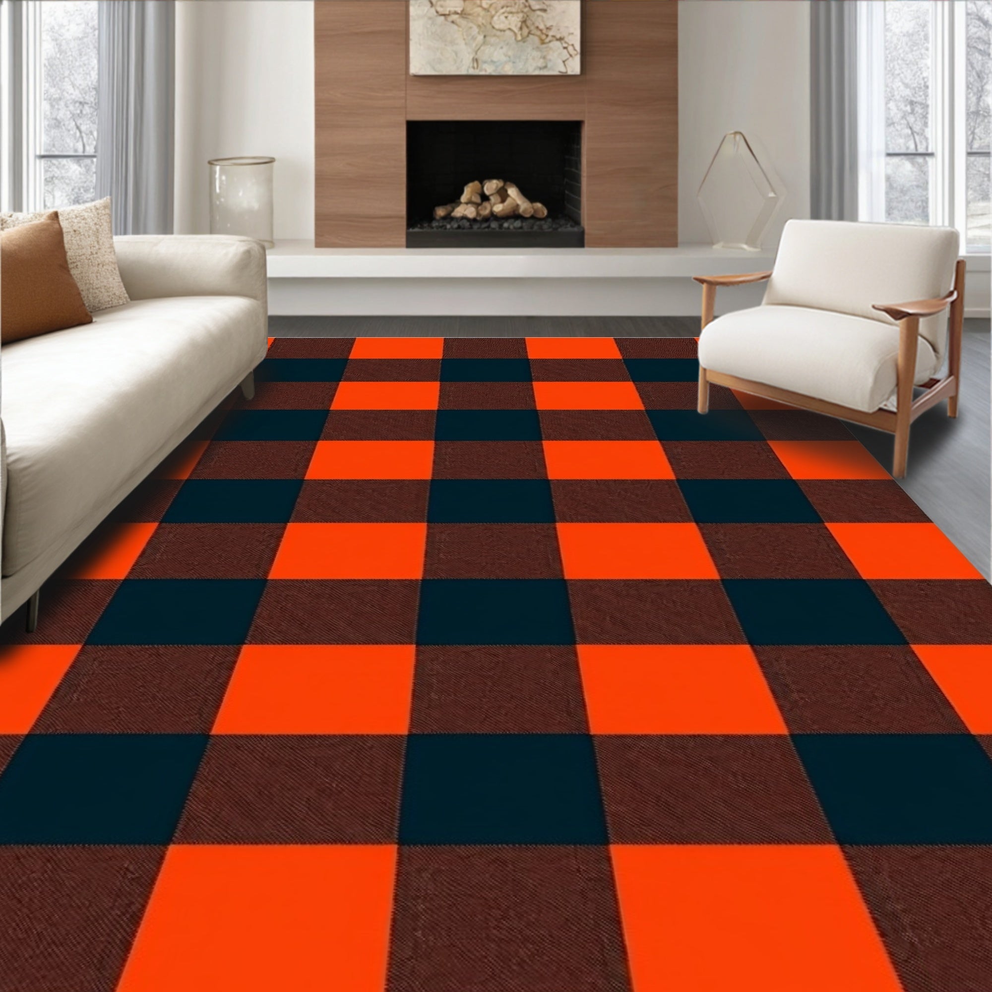 Ultra Soft Area Rug, Non Slip, Stain Resistant, Washable Area Rugs for Living Room, Bedroom, Buffalo Check Entryway with Classic Gingham Style(Orange) Overview: