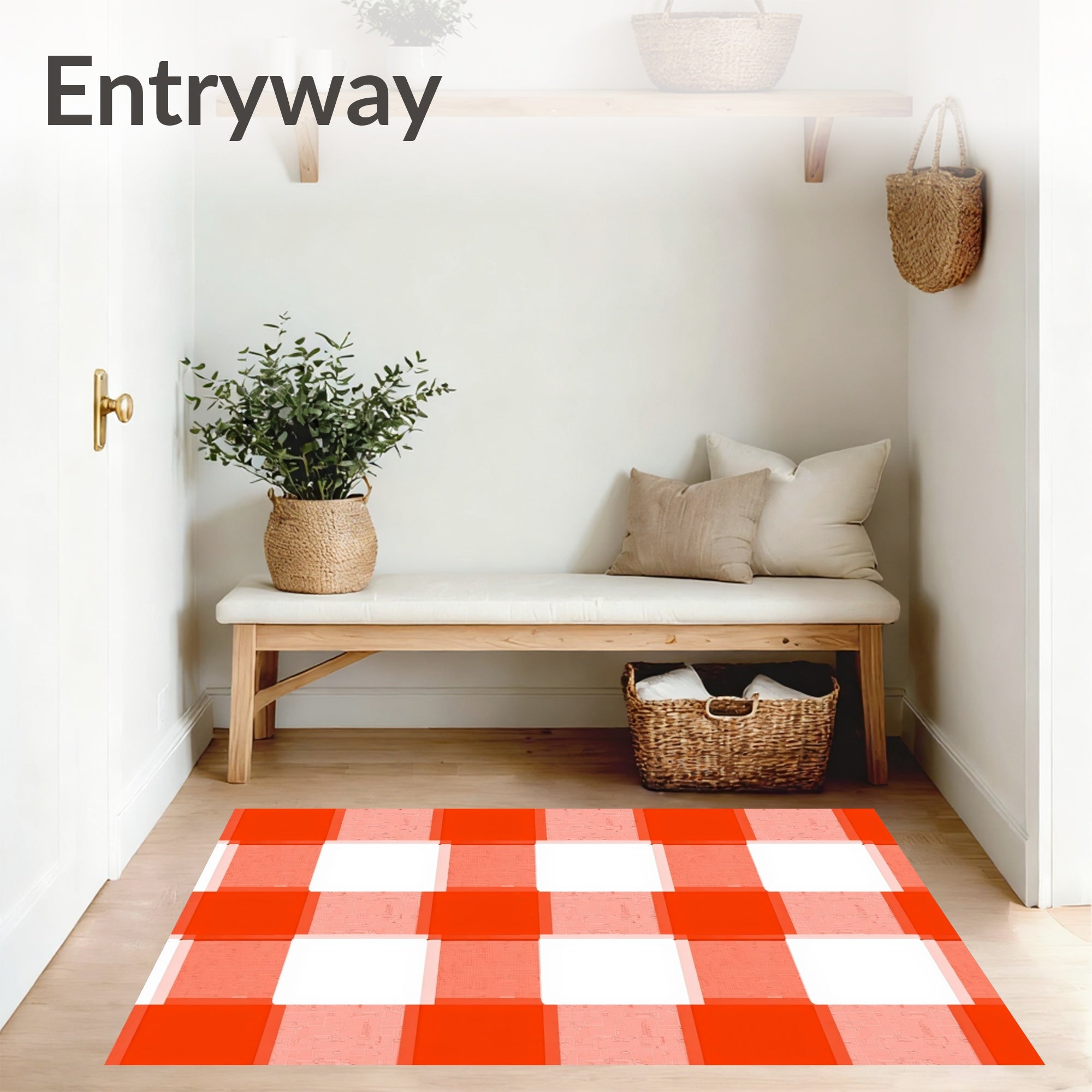 Buffalo Check Gingham Plaid Doormat Checkered Front Door Welcome(Red)
