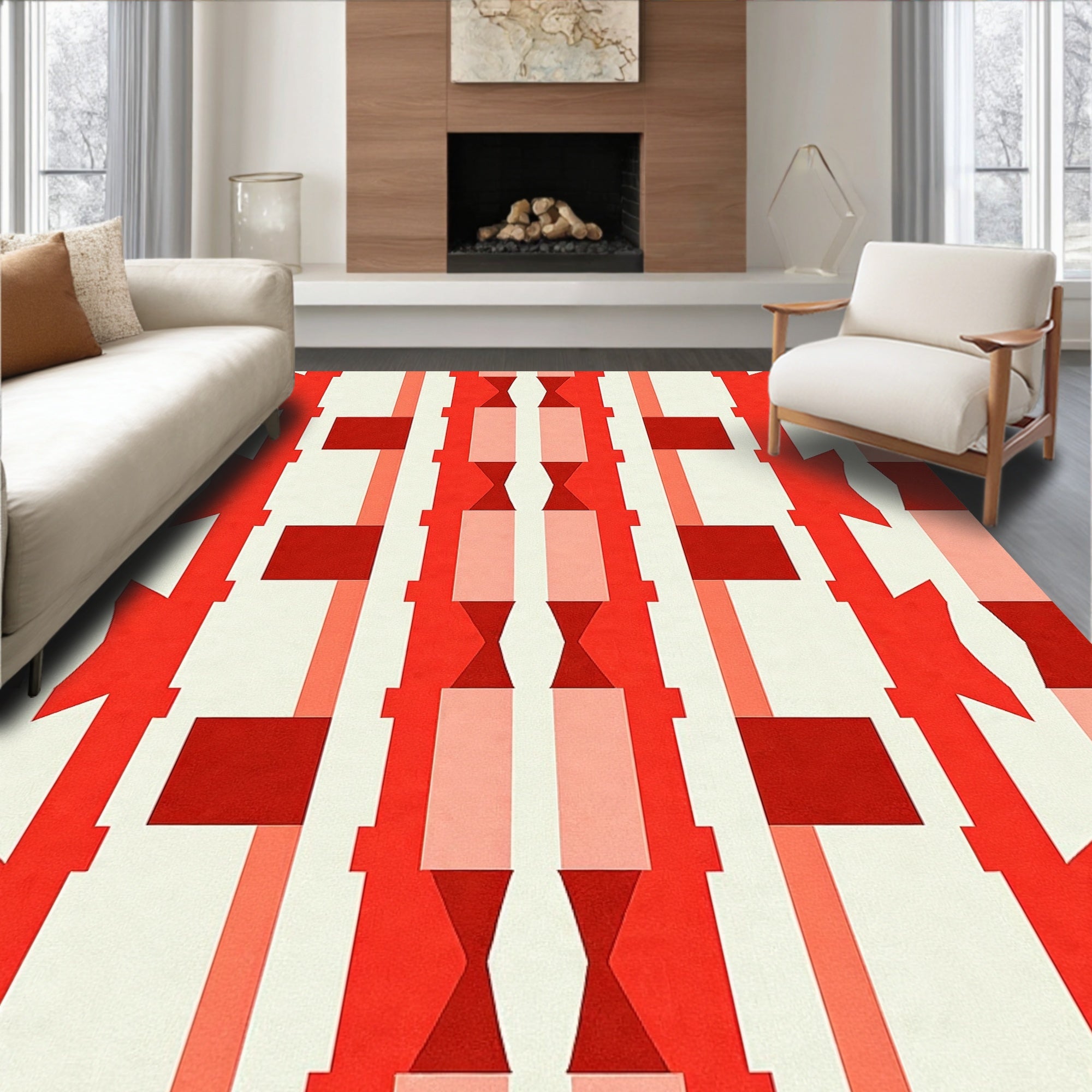 Ultra Soft Area Rug, Non Slip, Stain Resistant, Washable Area Rugs for Living Room, Bedroom, Buffalo Check Inspired Grid Contemporary Floor Accent(Red) Overview: