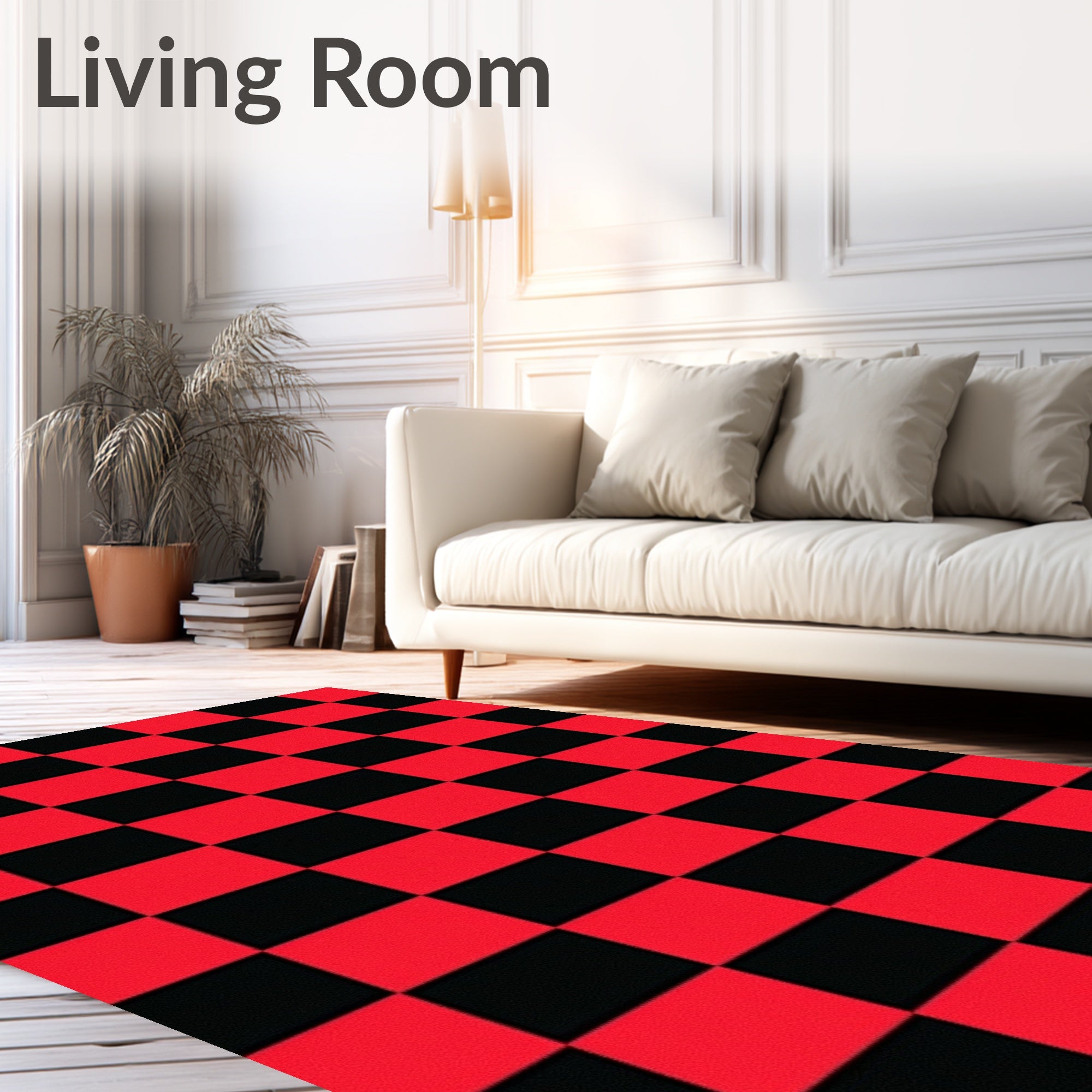 Ultra Soft Area Rug, Non Slip, Stain Resistant, Washable Area Rugs for Living Room, Bedroom, Buffalo Checkered Farmhouse Lattice Accent Decorative(Red) Overview: