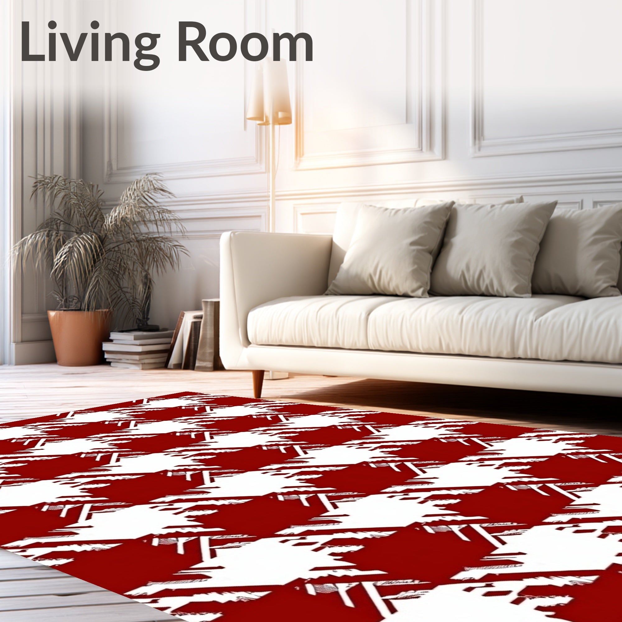 Ultra Soft Area Rug, Non Slip, Stain Resistant, Washable Area Rugs for Living Room, Bedroom, Buffalo Checkered Holiday Entrance Decoration(Red) Overview: