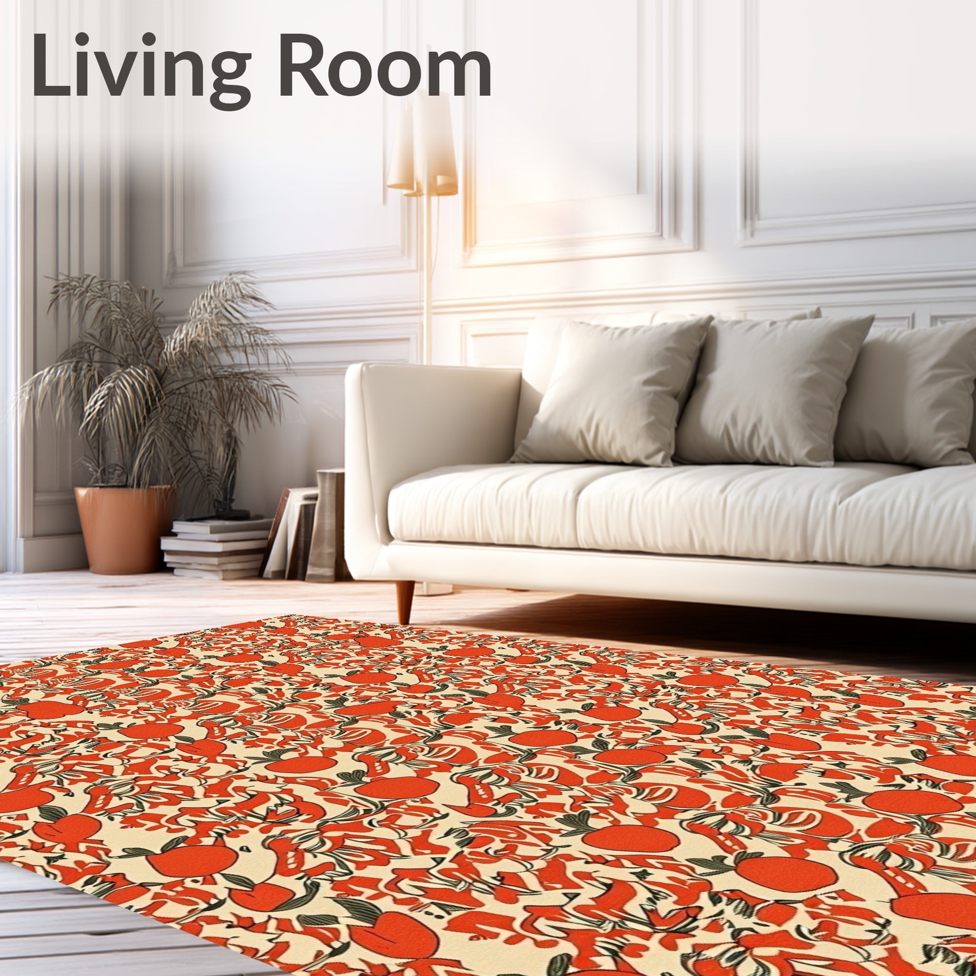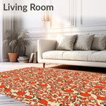 Ultra Soft Area Rug, Non Slip, Stain Resistant, Washable Area Rugs for Living Room, Bedroom, Buffalo Checkered Pumpkin Patch Plaid with Autumn Leaf Accents(Red) Overview: